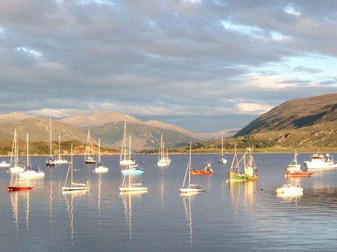 Bei strahlendem Sonnenschein starten wir am Morgen in Ullapool. An den „Falls of Menach“ verlassen wir die Hauptstraße und biegen zur Küste ab. Die nun folgenden Klometer werden wohl die beeindruckendsten der Reise sein. Kurven- und kehrenreiche Abschnitte wechseln sich am mit Straßen, die fantastische Ausblicke aufs Meer bieten. Vegetation und die umliegenden Berge erwecken den Eindruck, mehrere tausend Meter hoch zu sein, dabei ist die Wasseroberfläche oft keine hundert Meter weit entfernt.