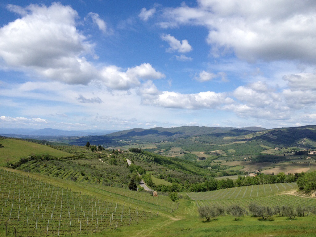 Zurück gehts durchs Chianti. Erstes Highlight: die 19 Kilometer von Pogibonsi nach Castellina, auf denen sich eine Kurve an die nächste reiht. Ein Fotostopp nahe Panzano verleitet uns zu einer „Kurskorrektur“: ein unbefestigtes Sträßchen führt über Lámole nach Greve in Chianti – das will unbedingt erkundet werden.