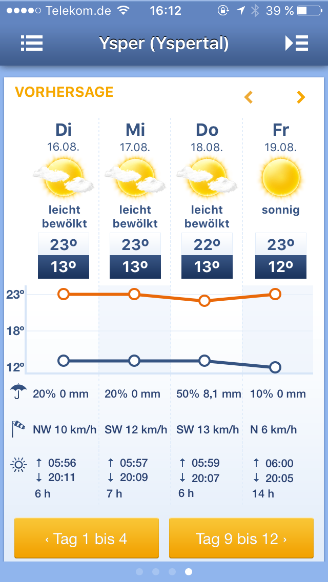 Die Wettervorhersage sieht gut aus, wenngleich ich darauf nicht (mehr) viel gebe. Eine Woche lang wollen wir im Waldviertel Motorrad fahren. Und da schaust es derzeit nicht nach Regen aus.