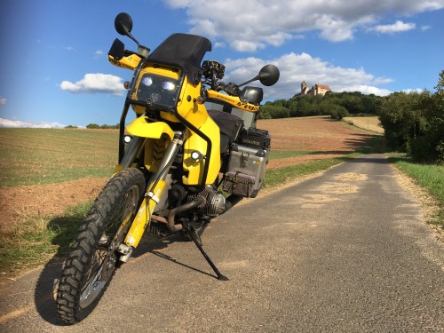 Jetzt sind es noch 40 Minuten und ich habe mein Ziel erreicht. Kurz vor sieben steht die gelbe G/S auf dem Hotelparkplatz.