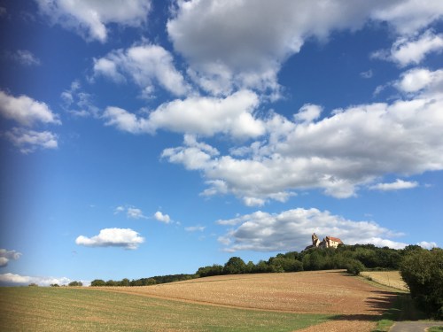 Auf kleinen kurvenreichen Straßen geht’s zunächst Richtung Ronneburg. Die liegt so herrlich in der Sonne, dass ein kurzer Fotostopp Pflicht ist.