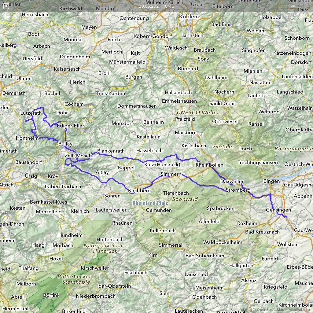 Rheinland-Pfalz bietet sich an. Die Hotels öffnen auch im Hunsrück so langsam wieder für Touristen, Außengastronomie ist mit Test und Maske möglich. Klingt verlockend, auch wenn die Auflagen ein völlig unbeschwertes Reisen noch nicht zulassen. Aber nach der Devise „Hauptsache Moppeds fahren“ werden wir das schon irgendwie hinkriegen.