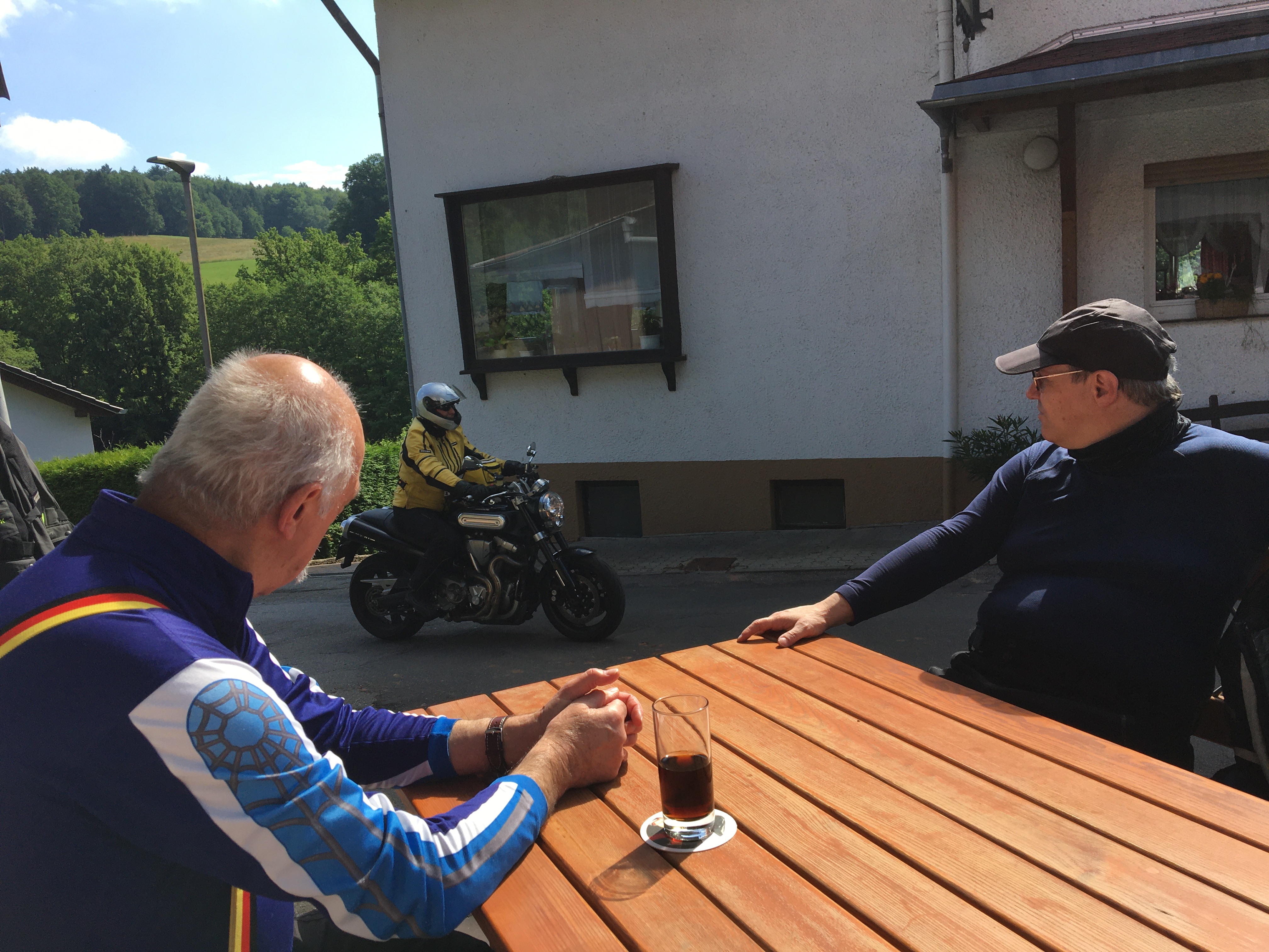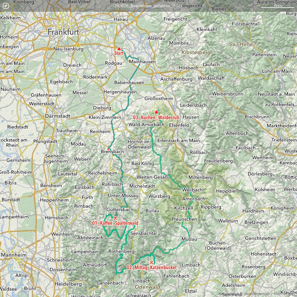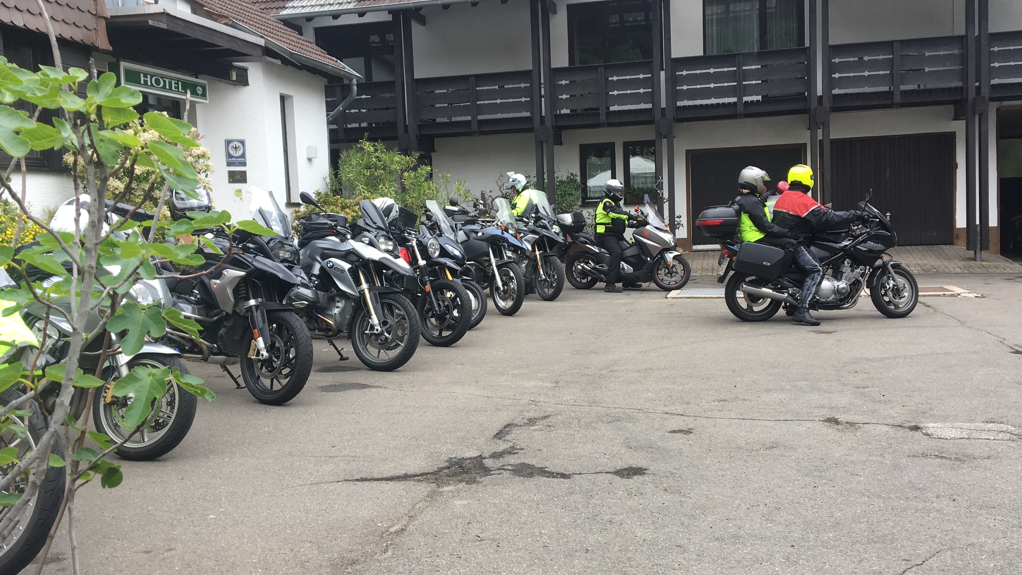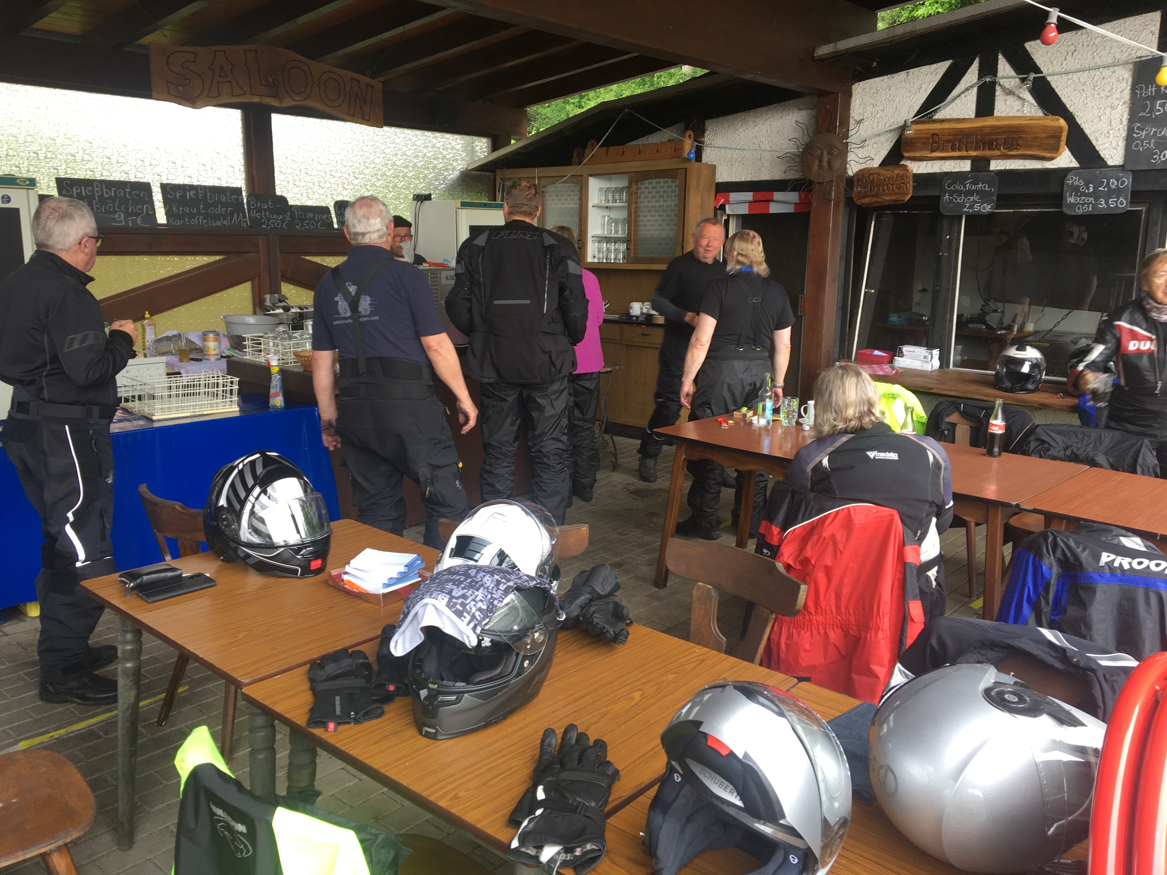 Neun Motorradfahrerinnen und Motorradfahrer hatten sich angemeldet; Treffpunkt war die Autobahnraststätte Weiskirchen an der A3 in Richtung Aschaffenburg. Pünktlich um 9 Uhr ging es los. Erstes Ziel war das Gasthaus „Zum Spälterwald“ in dem kleinen Örtchen Olften nahe Beerfelden.