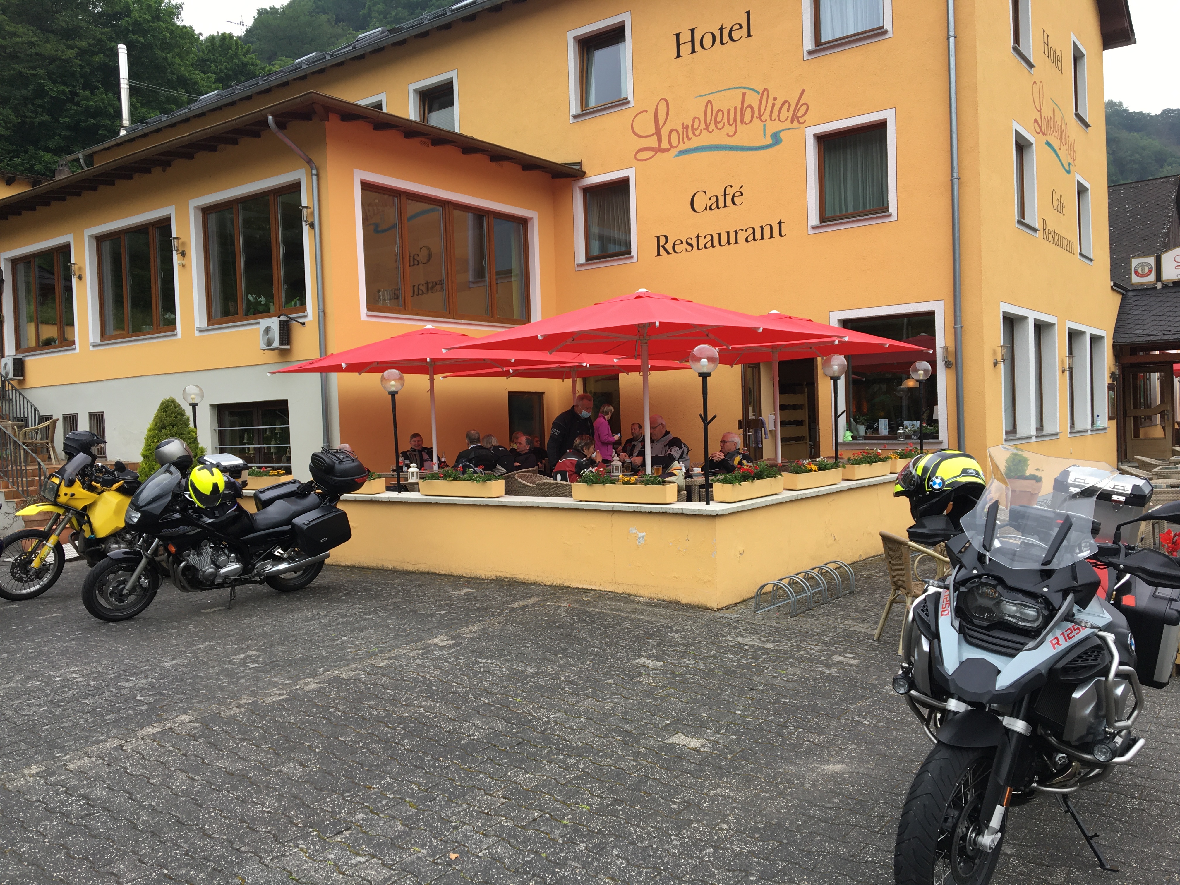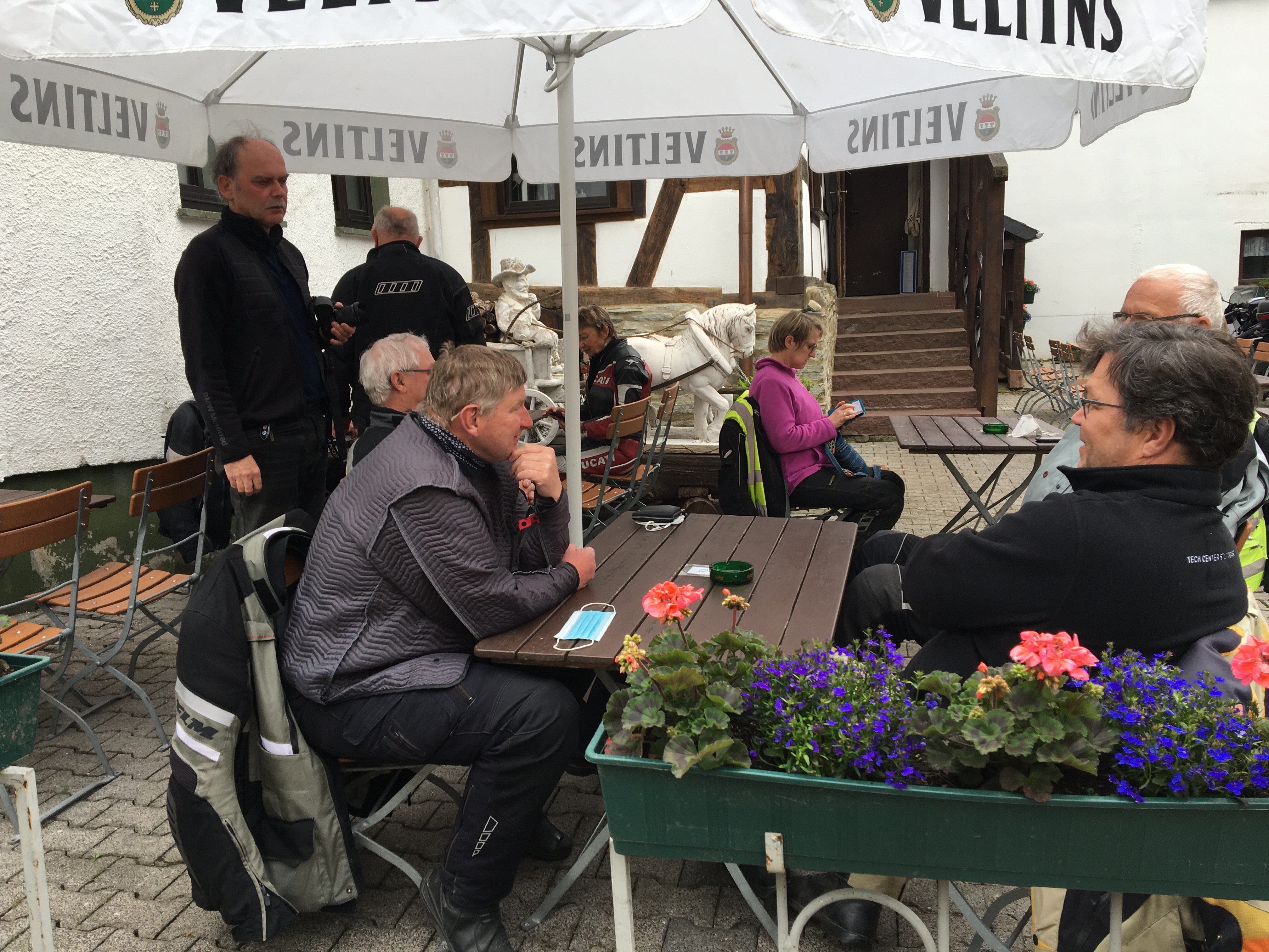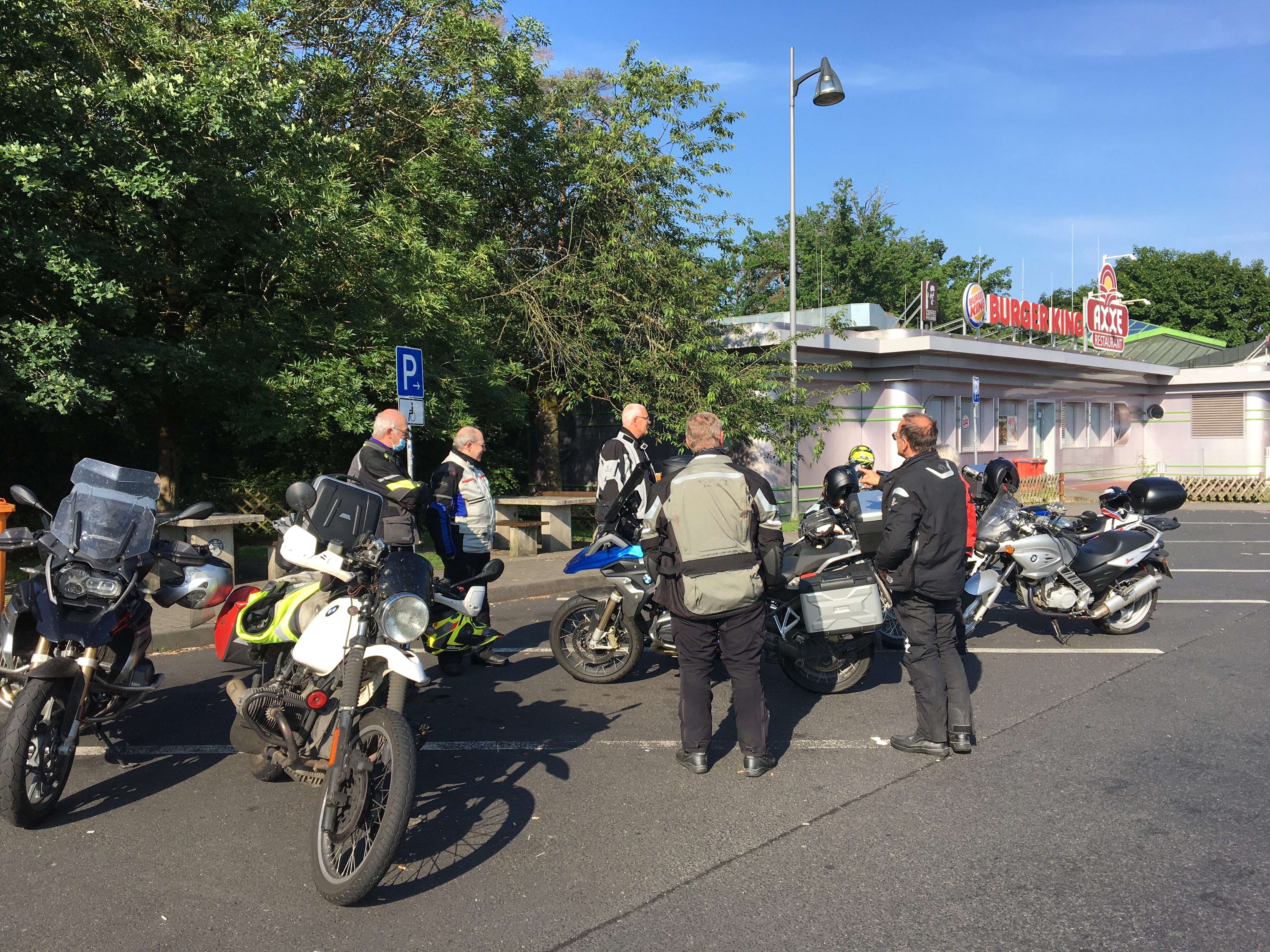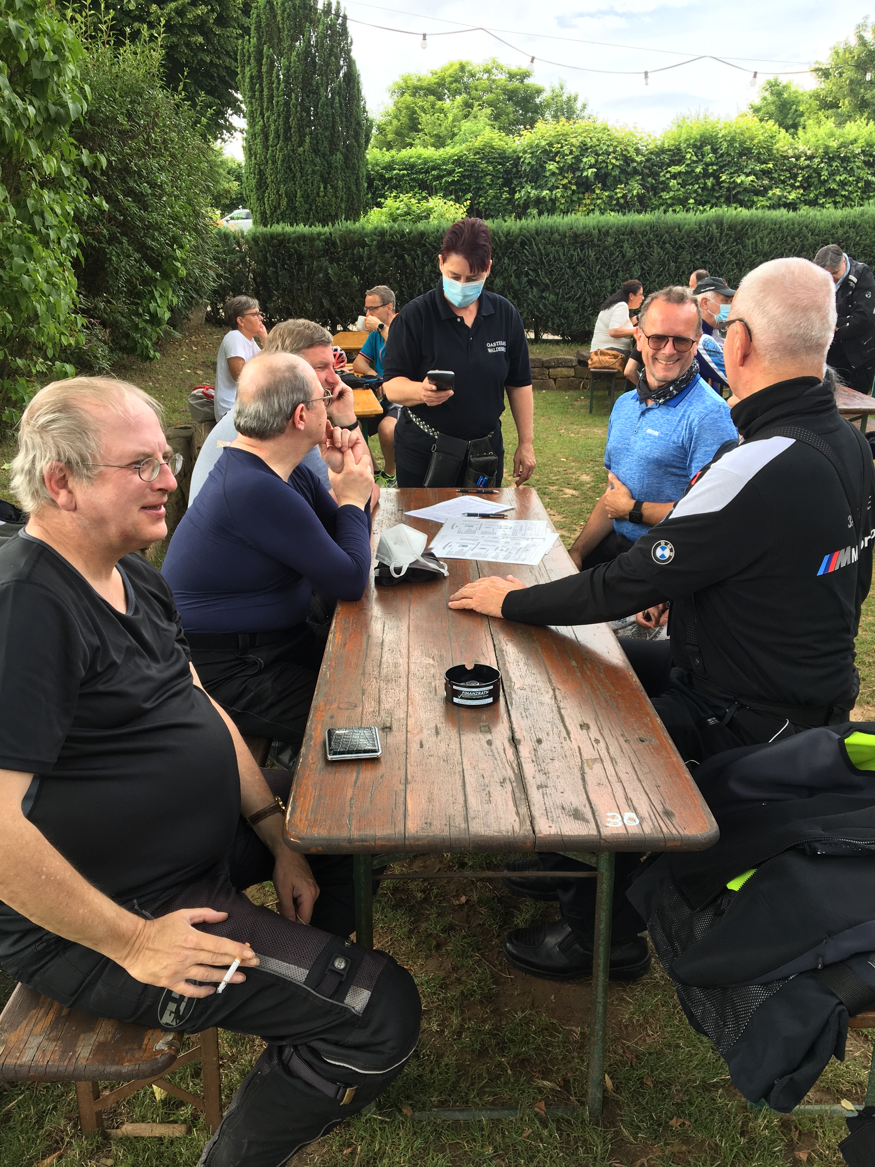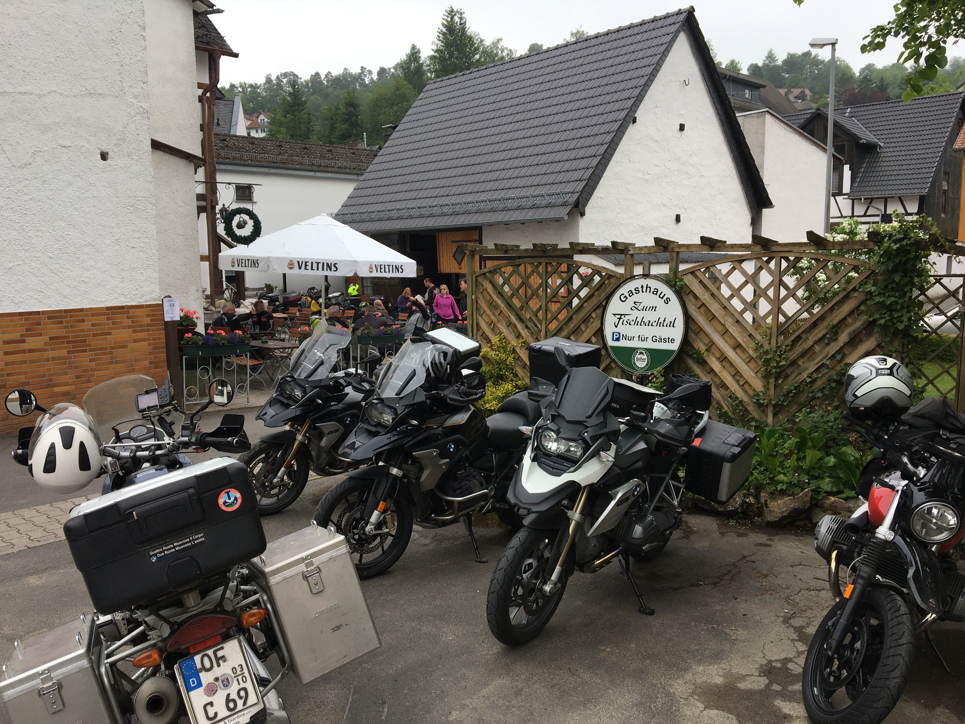 Neun Motorradfahrerinnen und Motorradfahrer hatten sich angemeldet; Treffpunkt war die Autobahnraststätte Weiskirchen an der A3 in Richtung Aschaffenburg. Pünktlich um 9 Uhr ging es los. Erstes Ziel war das Gasthaus „Zum Spälterwald“ in dem kleinen Örtchen Olften nahe Beerfelden.