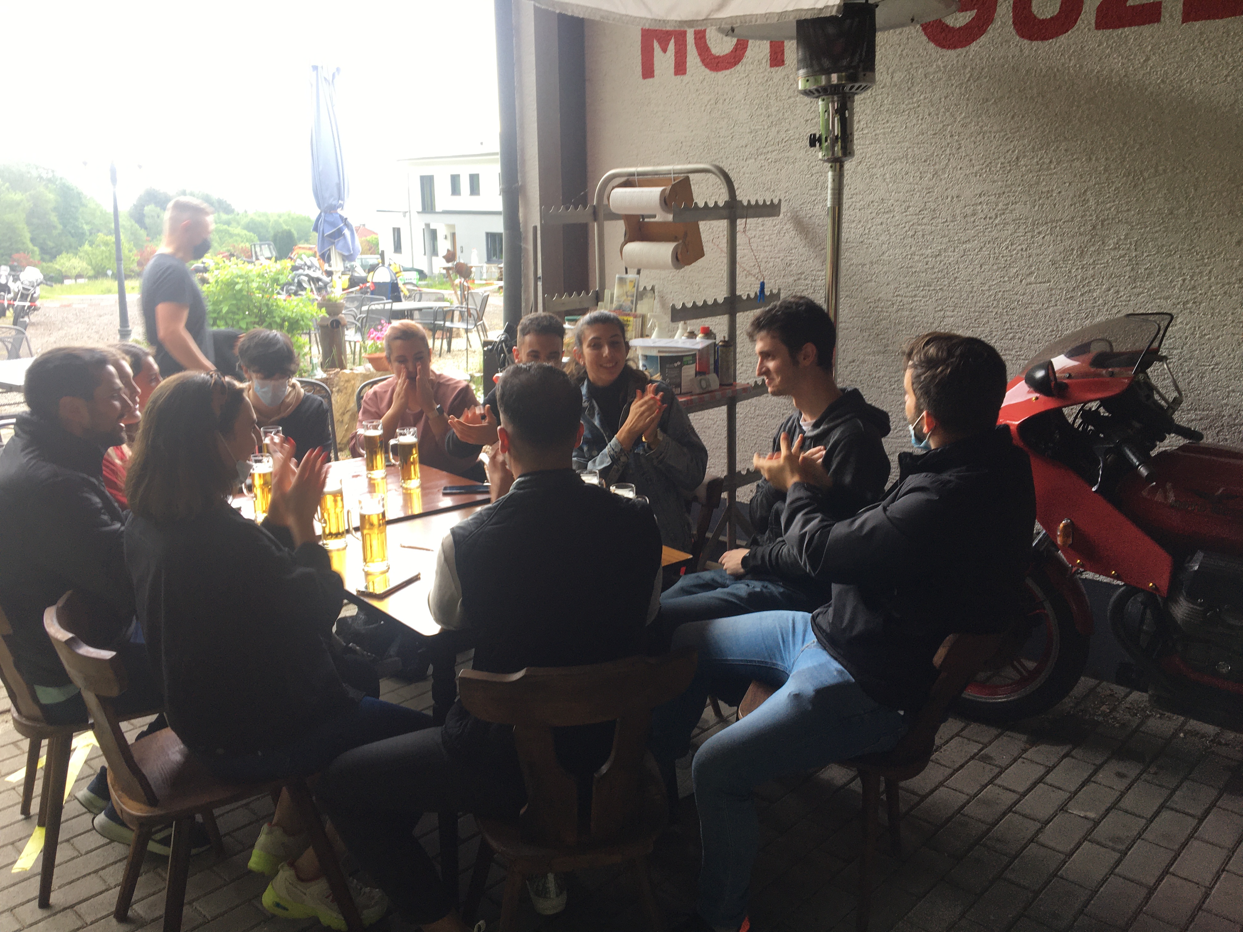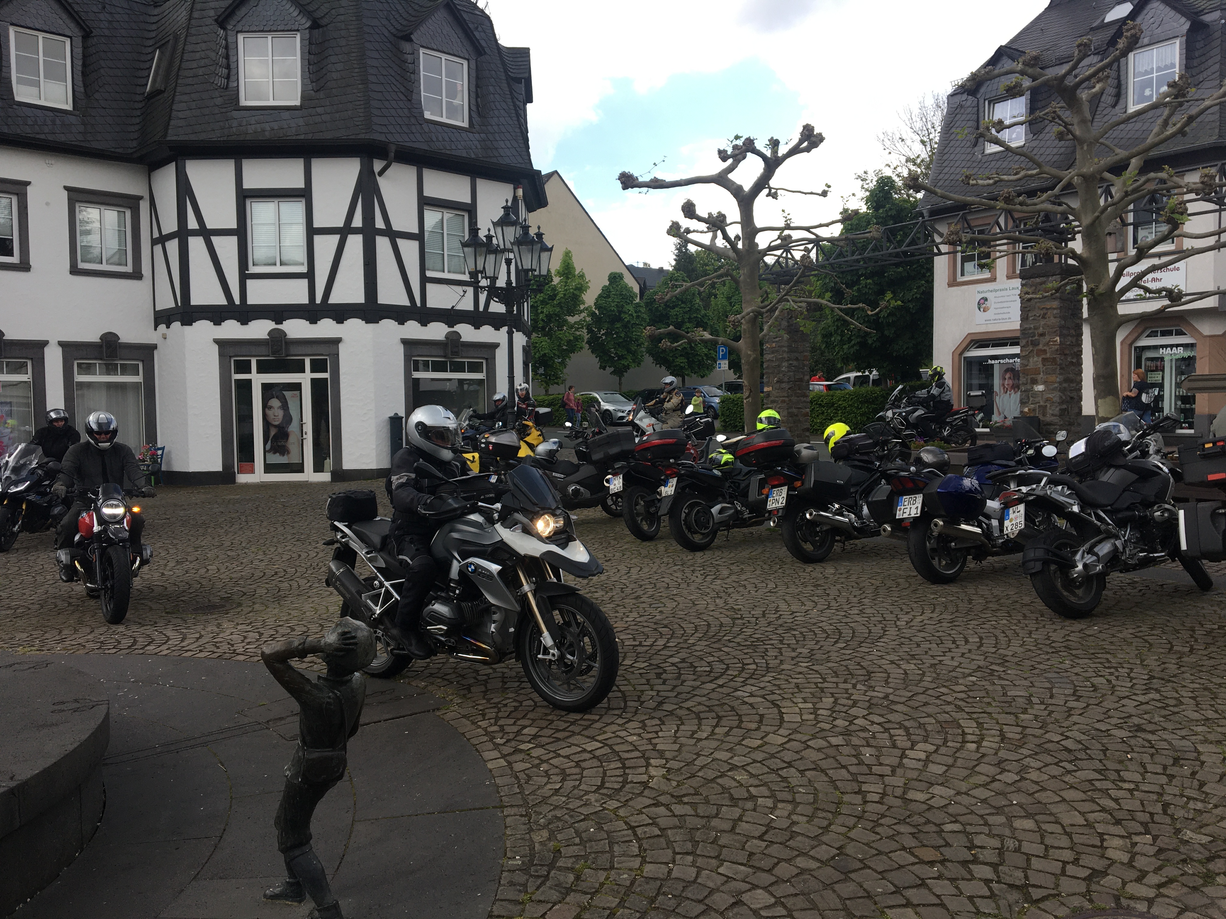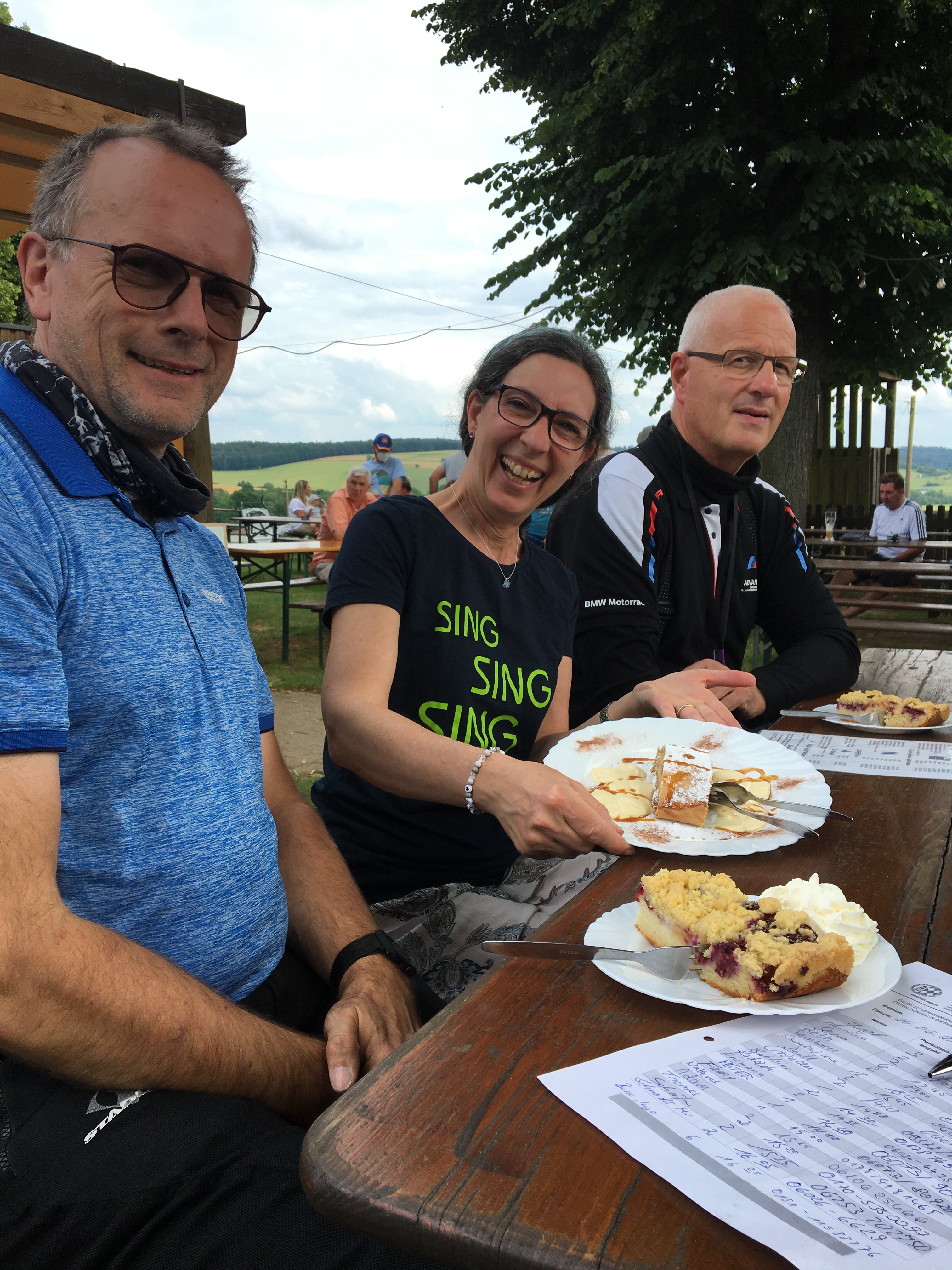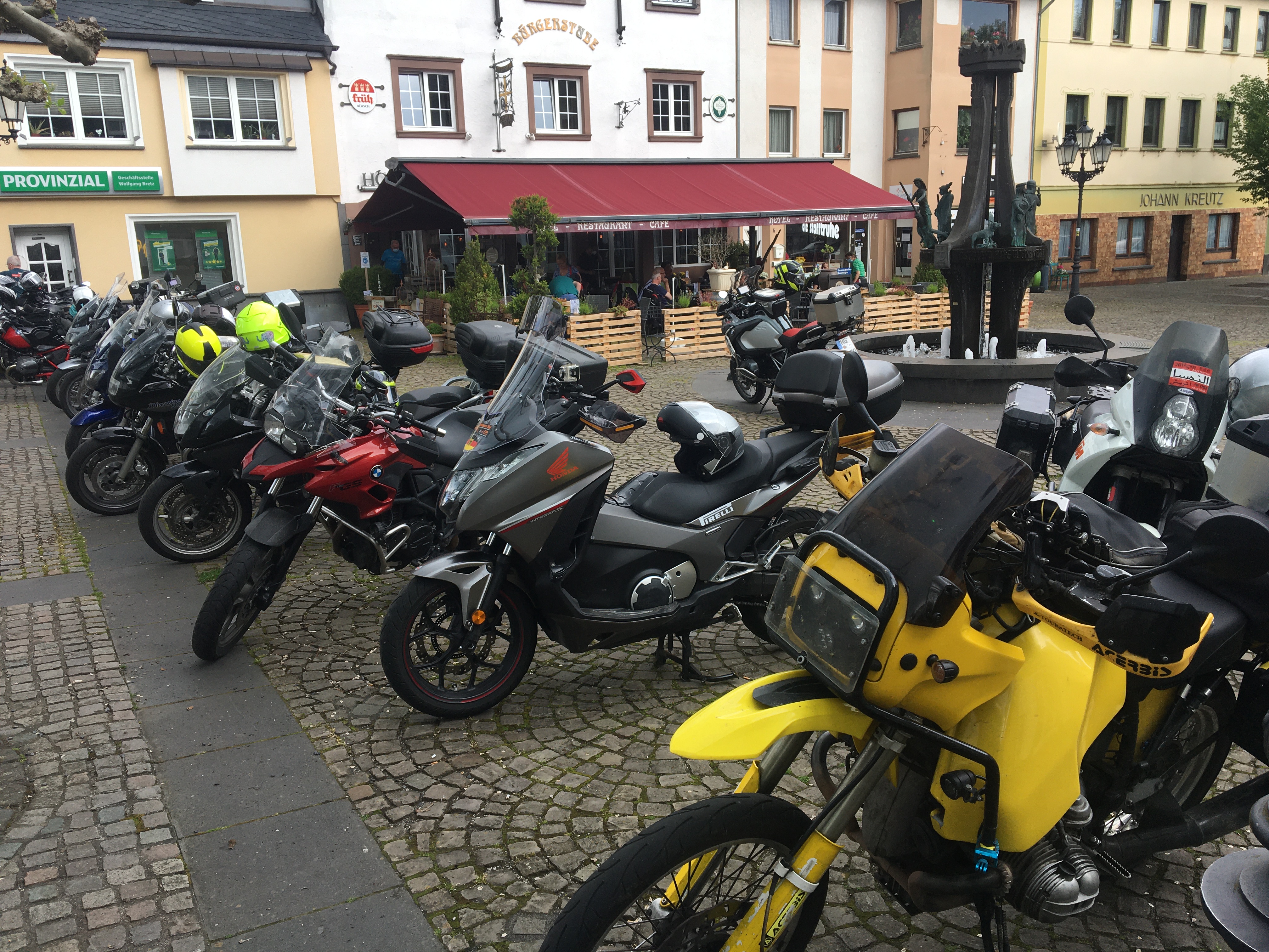 Neun Motorradfahrerinnen und Motorradfahrer hatten sich angemeldet; Treffpunkt war die Autobahnraststätte Weiskirchen an der A3 in Richtung Aschaffenburg. Pünktlich um 9 Uhr ging es los. Erstes Ziel war das Gasthaus „Zum Spälterwald“ in dem kleinen Örtchen Olften nahe Beerfelden.