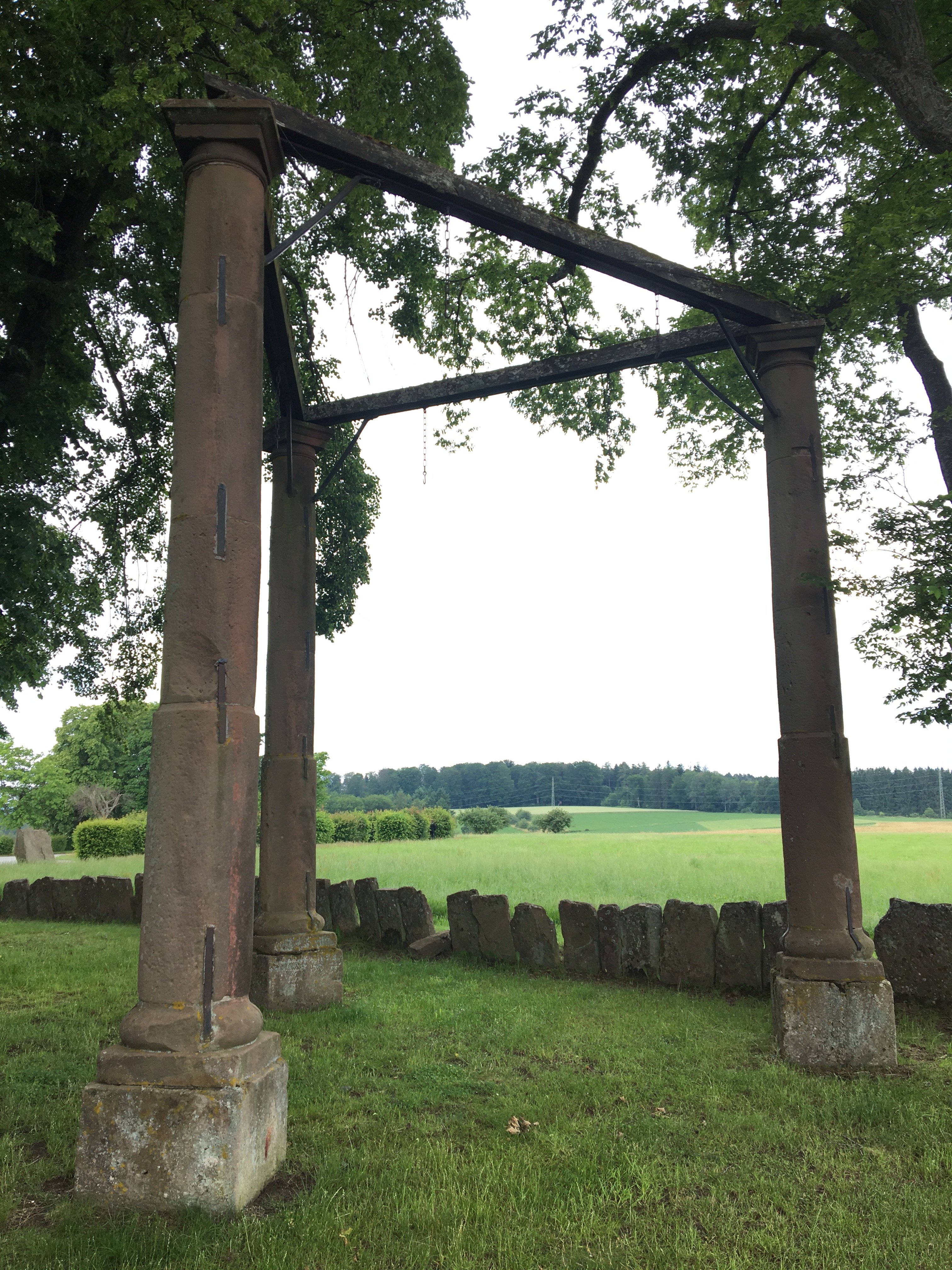 Gut eine halbe Stunde später haben wir den Beerfelder Galgen erreicht. Irgendwie ist es ja makaber, eine Stelle, an der Menschen einst ihr Leben verloren, zur Sehenswürdigkeit zu machen. Allerdings liegt die Vollstreckung des letzten Todesurteils aus dem Jahr 1746 mittlerweile 275 Jahre zurück.
