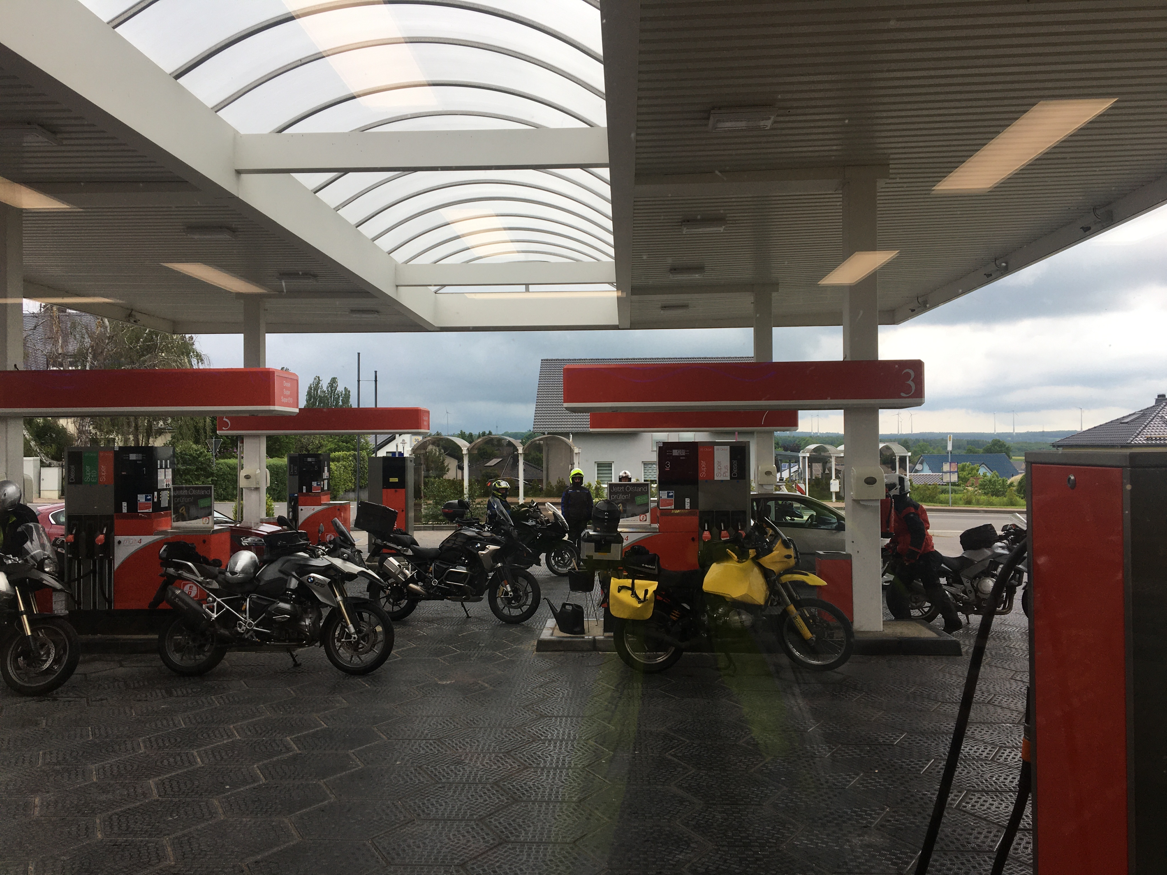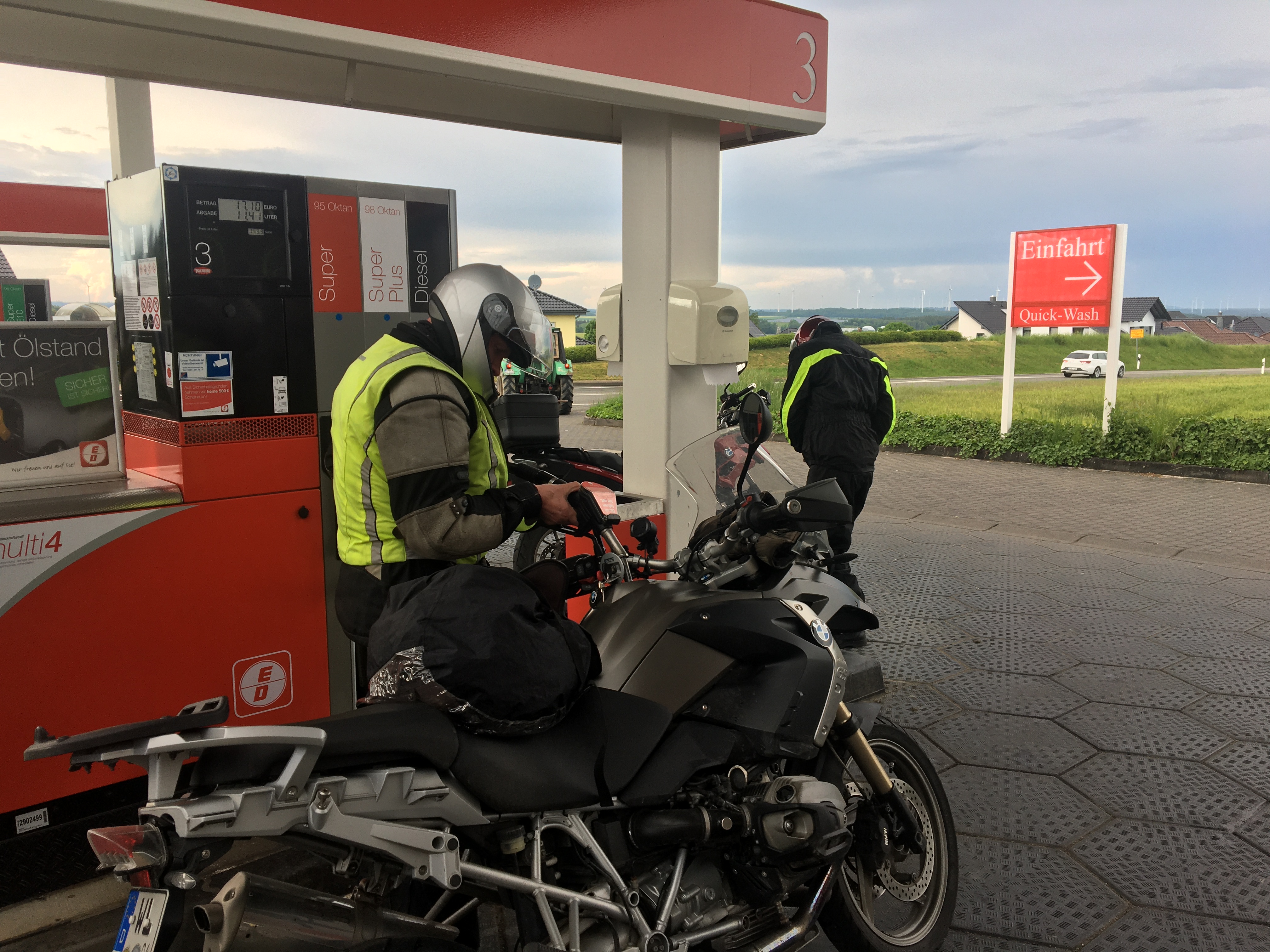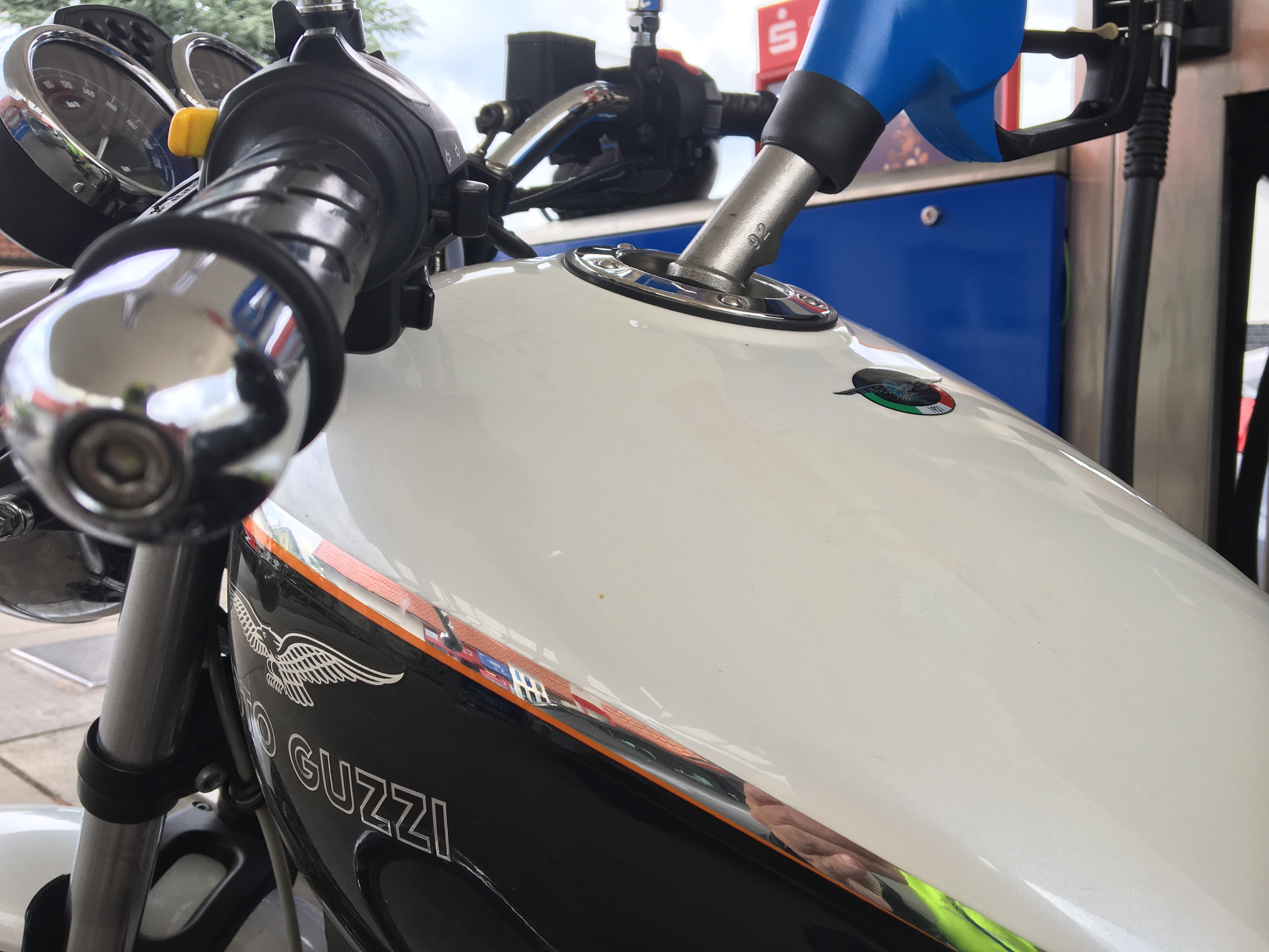 So langsam treten wir den Rückweg an, müssen unterwegs allerdings noch einen Tankstopp einlegen. Bis nach Hause reicht es für die Guzzi nicht mehr und so füllen wir in Mudau die Benzinvorräte noch einmal auf. Der eine oder andere nutzt die Zeit für eine kalte Erfrischung …