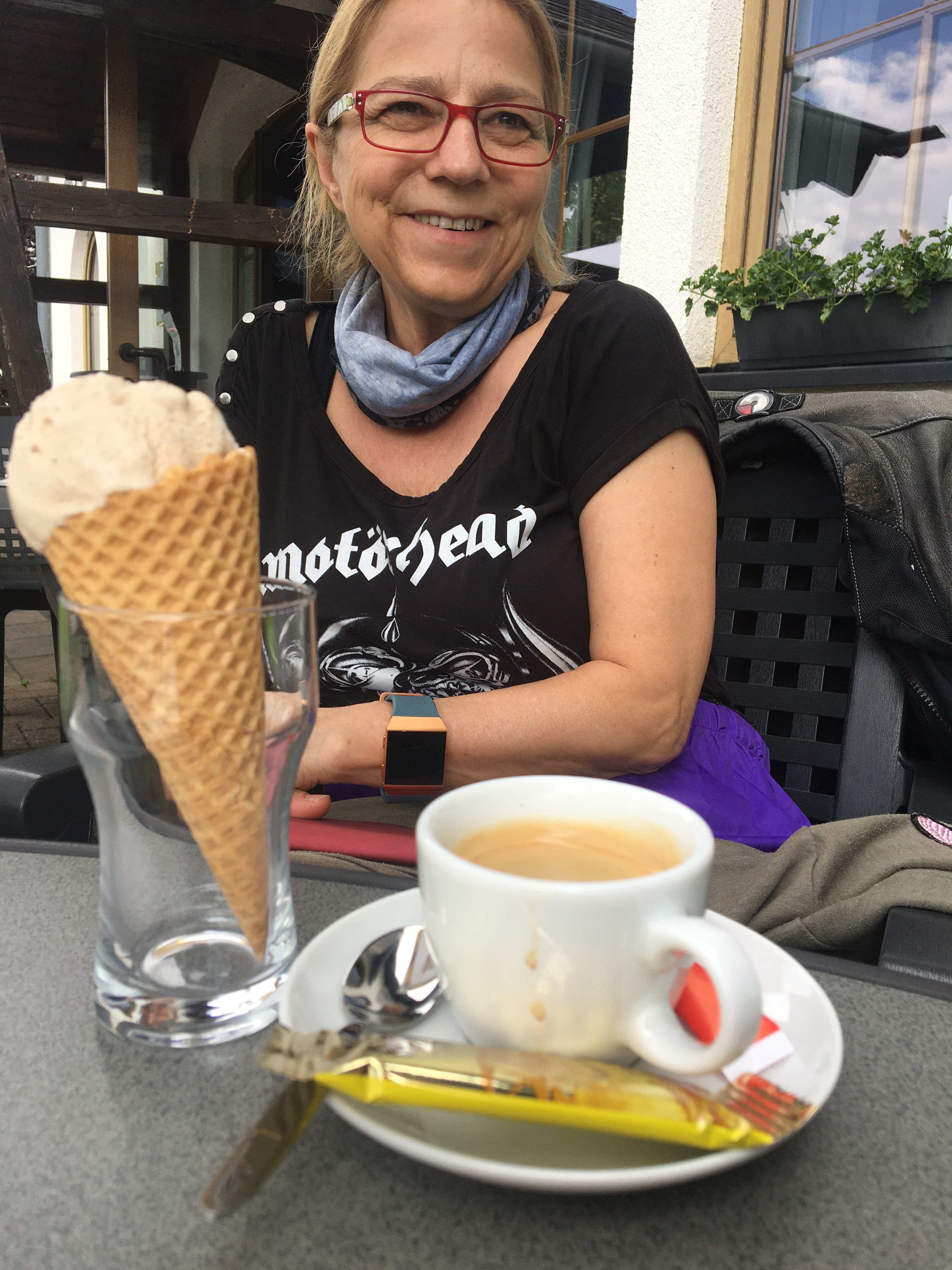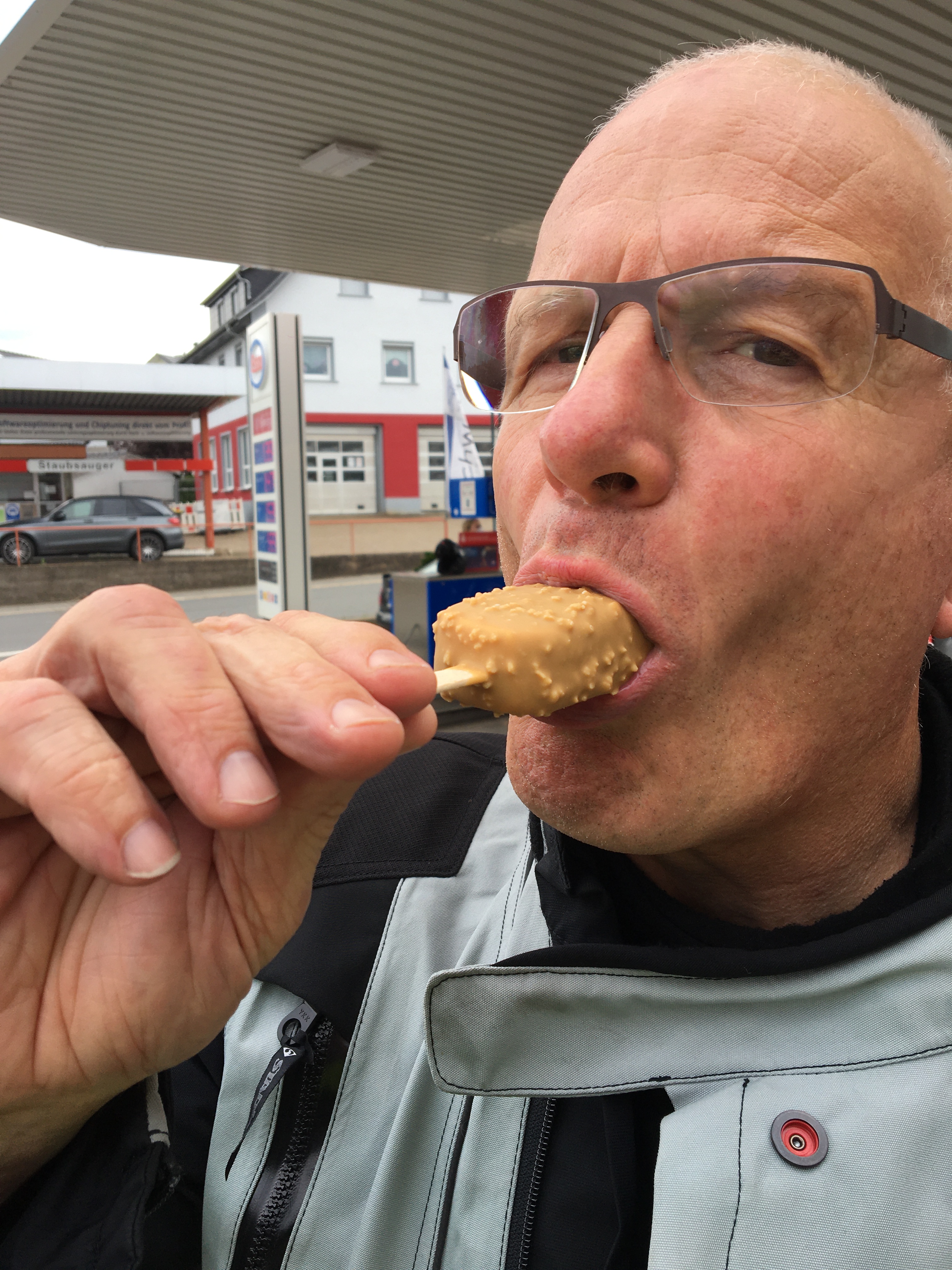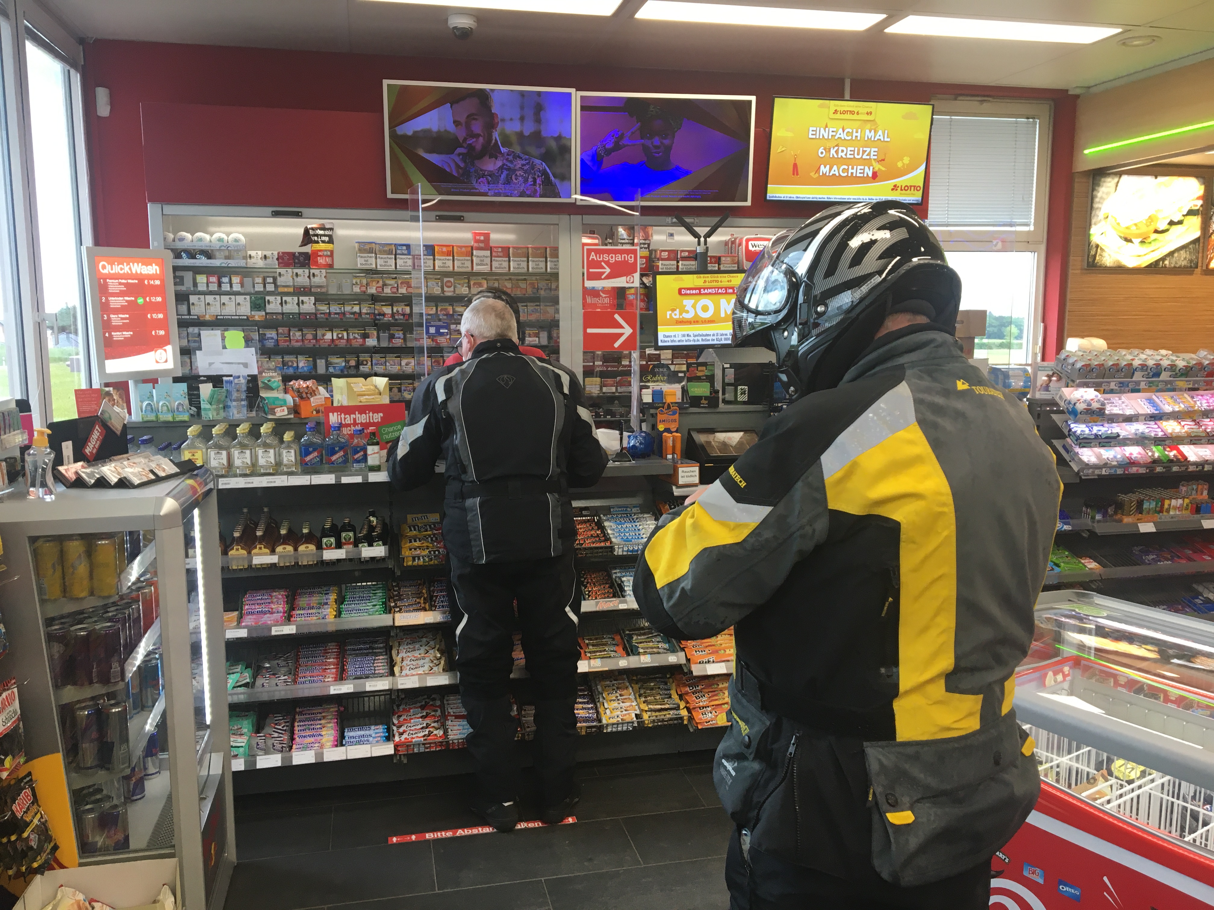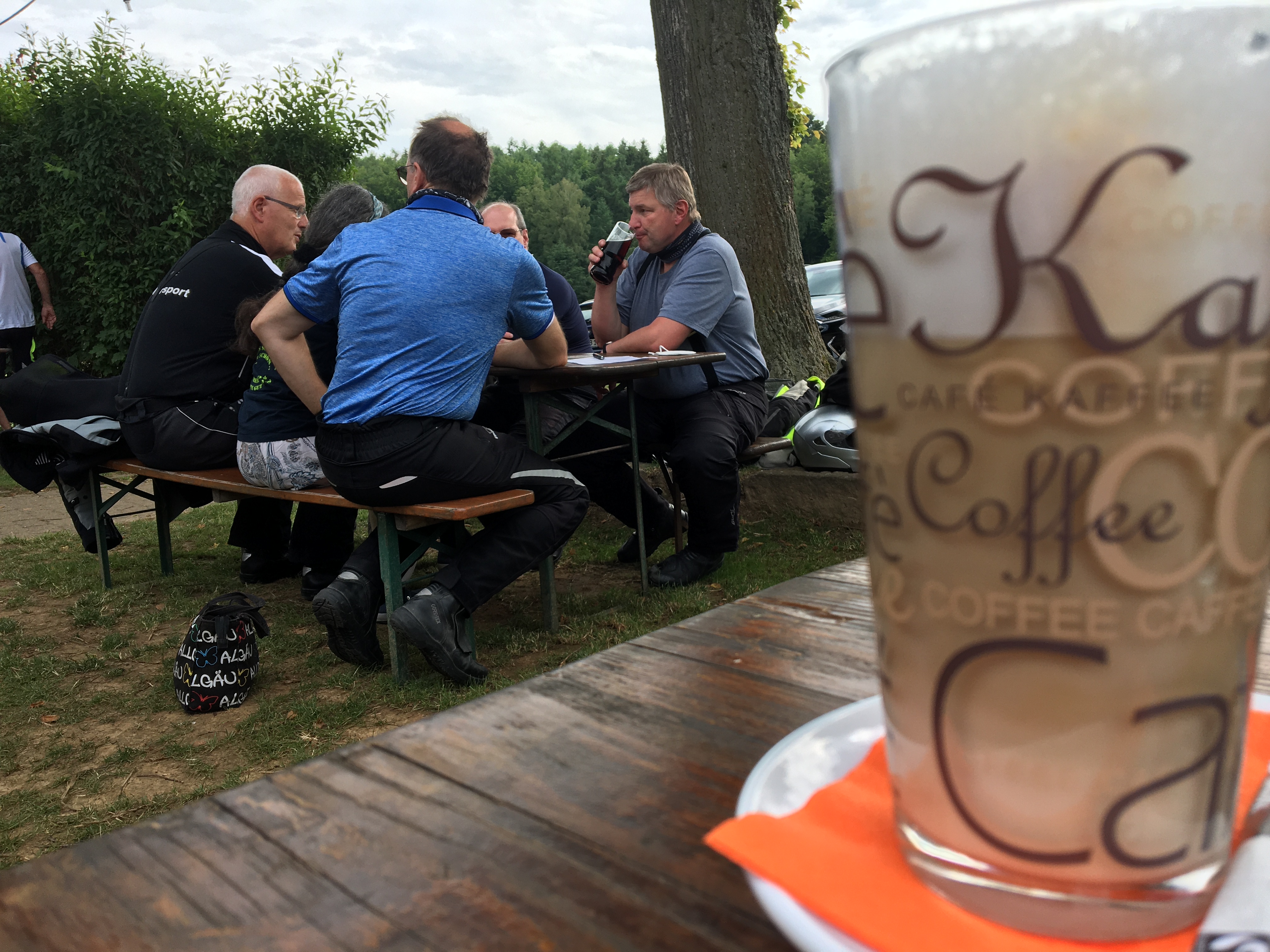 So langsam treten wir den Rückweg an, müssen unterwegs allerdings noch einen Tankstopp einlegen. Bis nach Hause reicht es für die Guzzi nicht mehr und so füllen wir in Mudau die Benzinvorräte noch einmal auf. Der eine oder andere nutzt die Zeit für eine kalte Erfrischung …