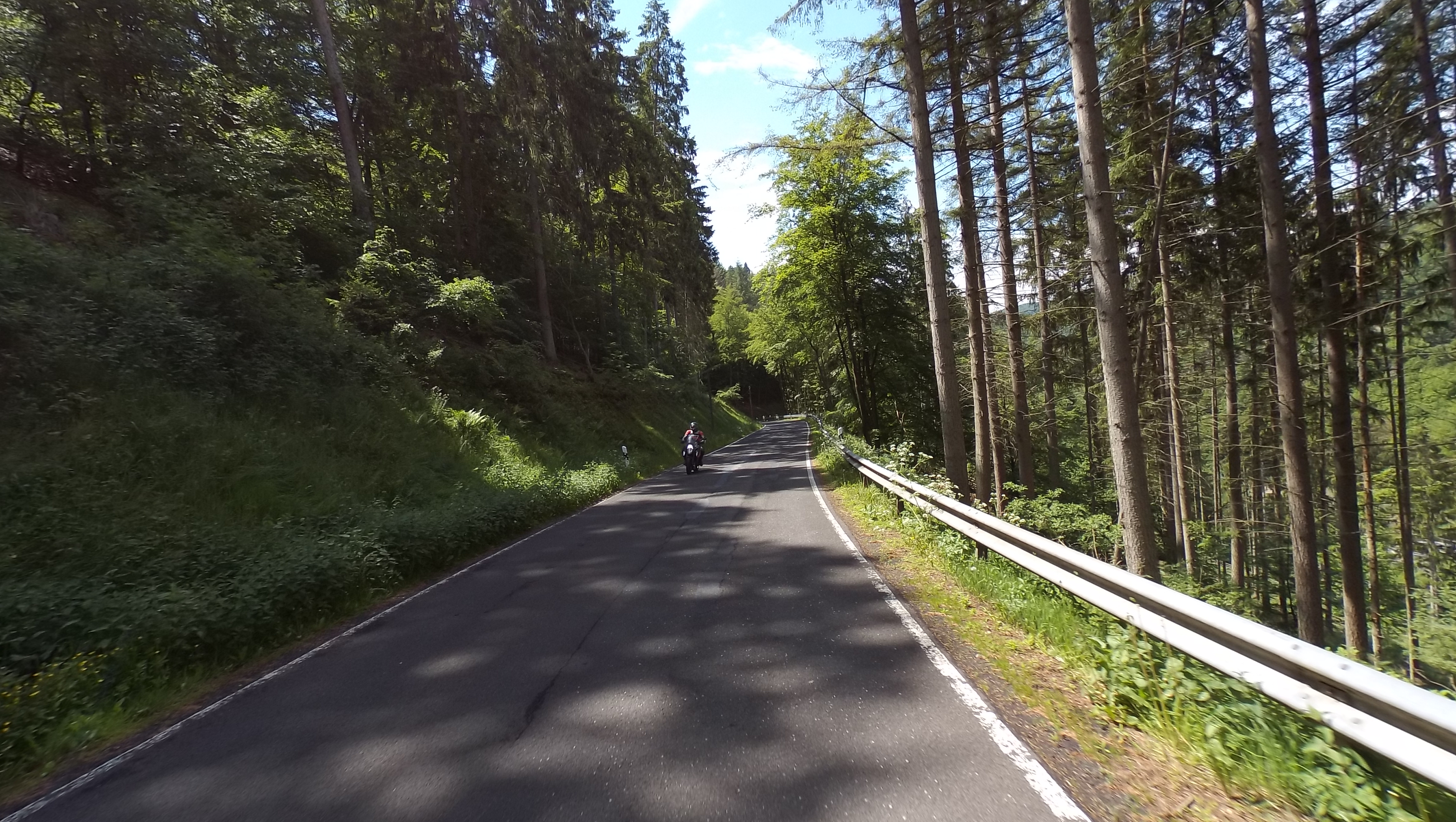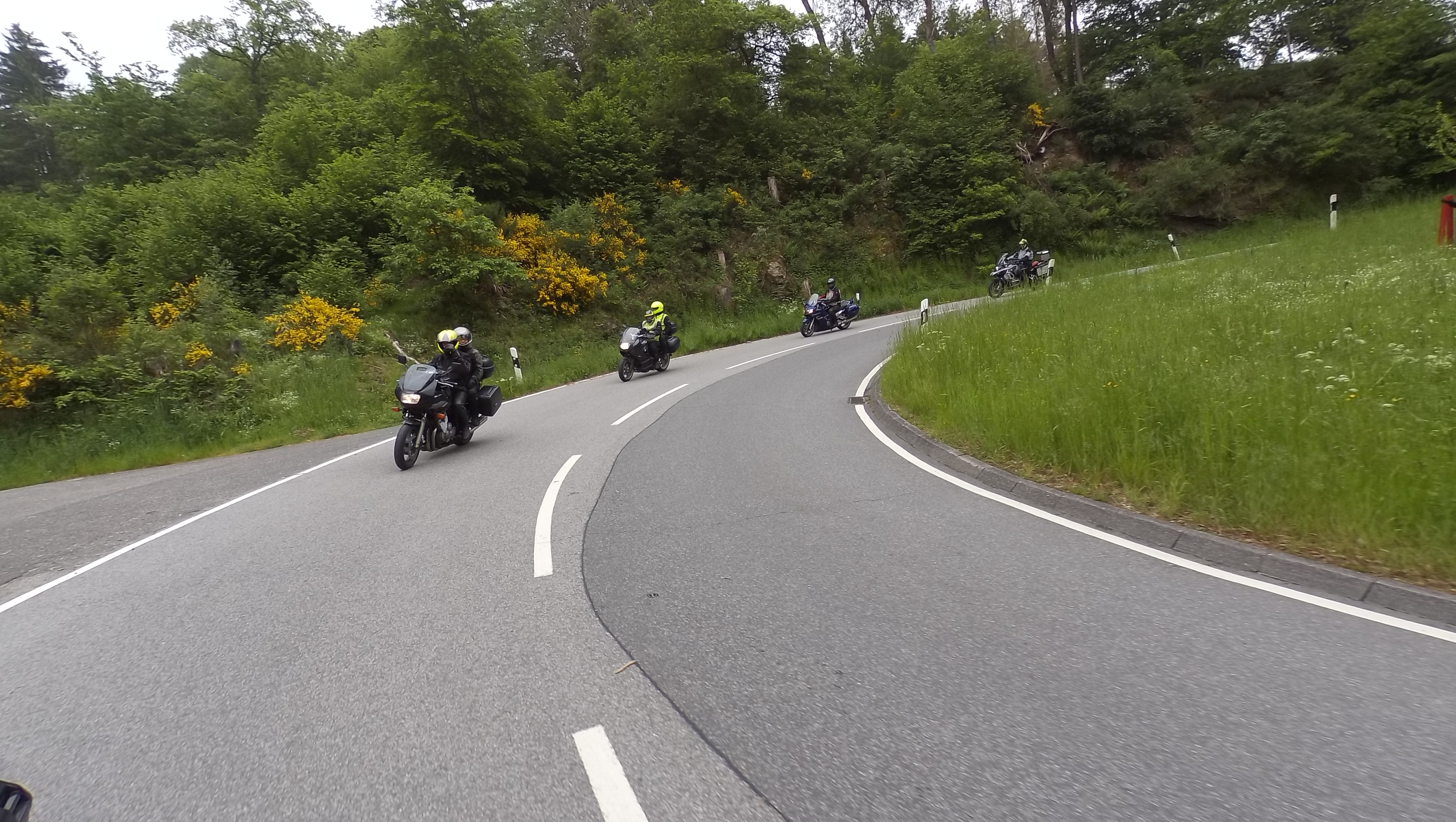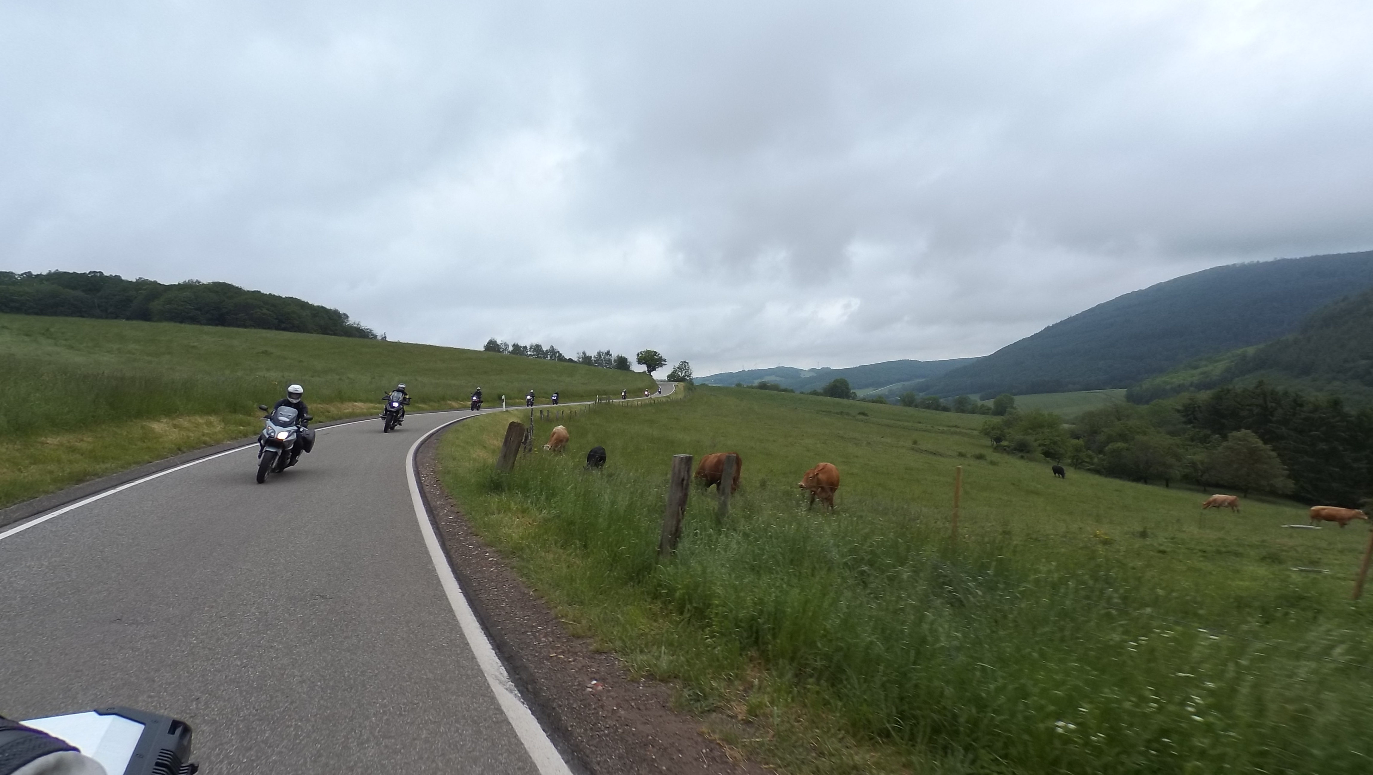 Nach einem kurzen Fotostopp setzen wir unsere Fahrt fort. Die nächsten 10 Kilometer gen Süden nach Kortelshütte sind wie immer genial; bald darauf ist Hirschhorn am Neckar erreicht. Wir folgen dem Fluß für ein kurzes Stück auf der Bundesstraße und nähern uns so langsam dem „Katzenbuckel“.