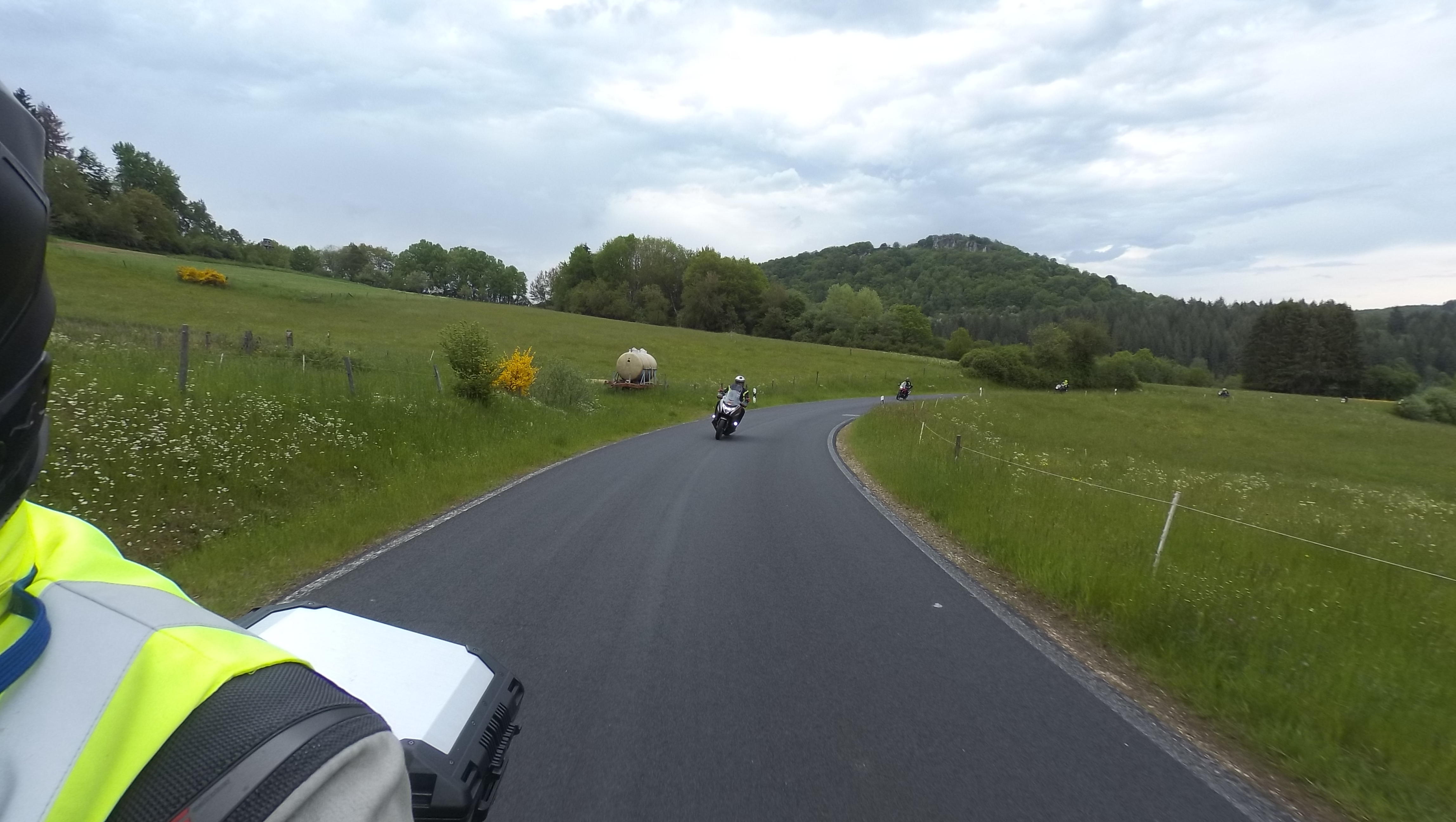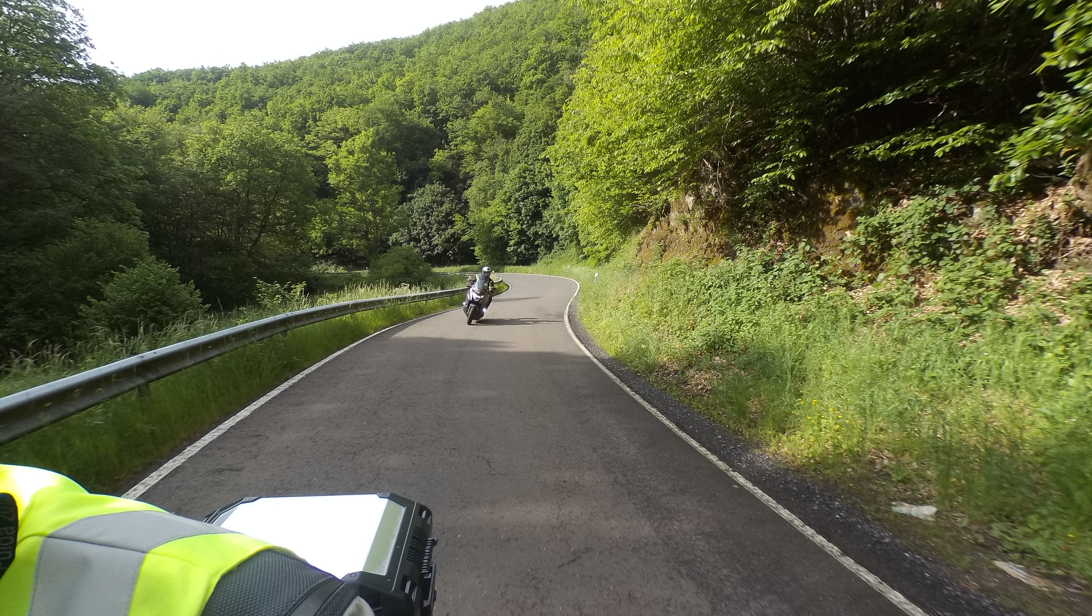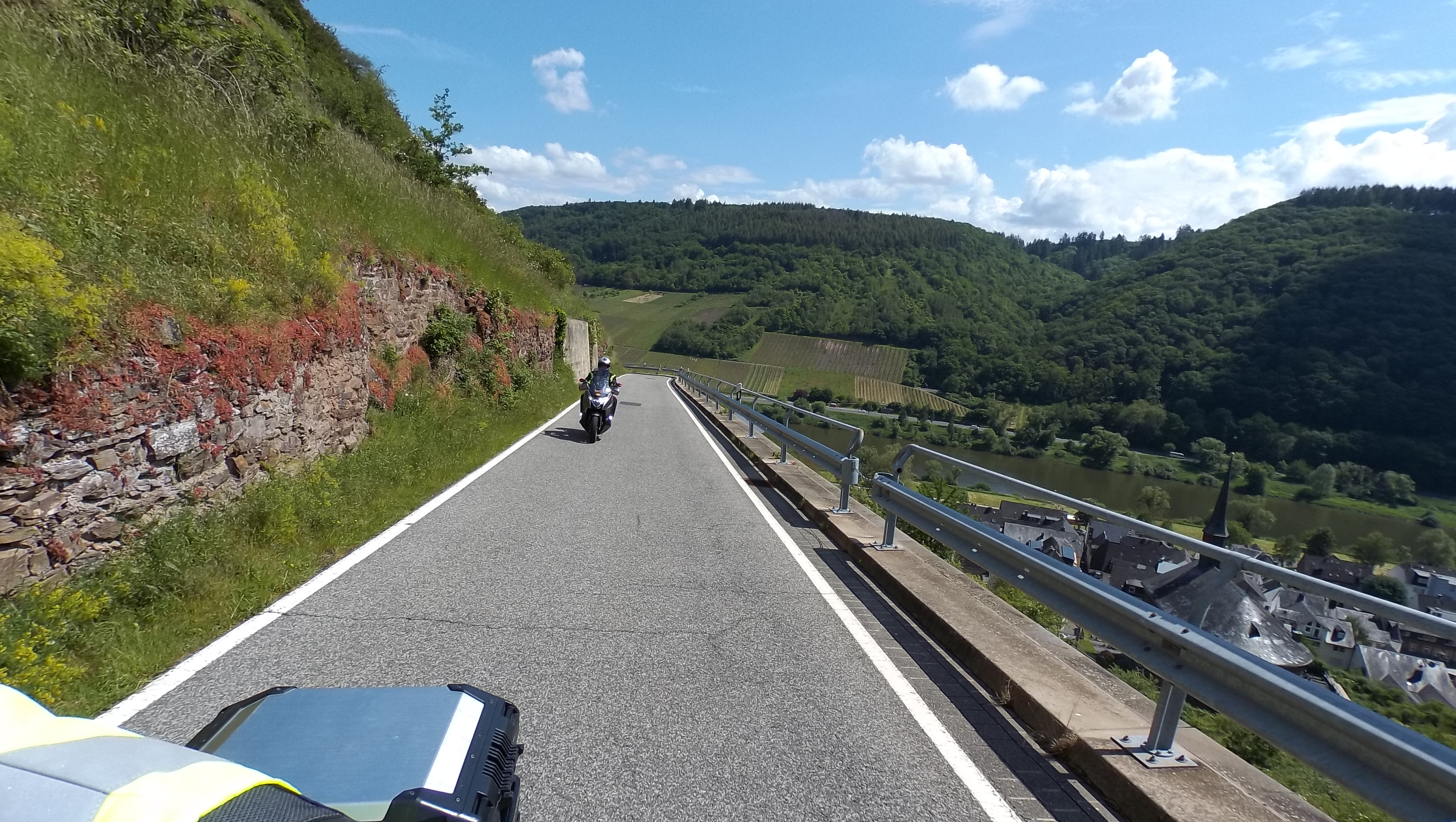 Nach einem kurzen Fotostopp setzen wir unsere Fahrt fort. Die nächsten 10 Kilometer gen Süden nach Kortelshütte sind wie immer genial; bald darauf ist Hirschhorn am Neckar erreicht. Wir folgen dem Fluß für ein kurzes Stück auf der Bundesstraße und nähern uns so langsam dem „Katzenbuckel“.