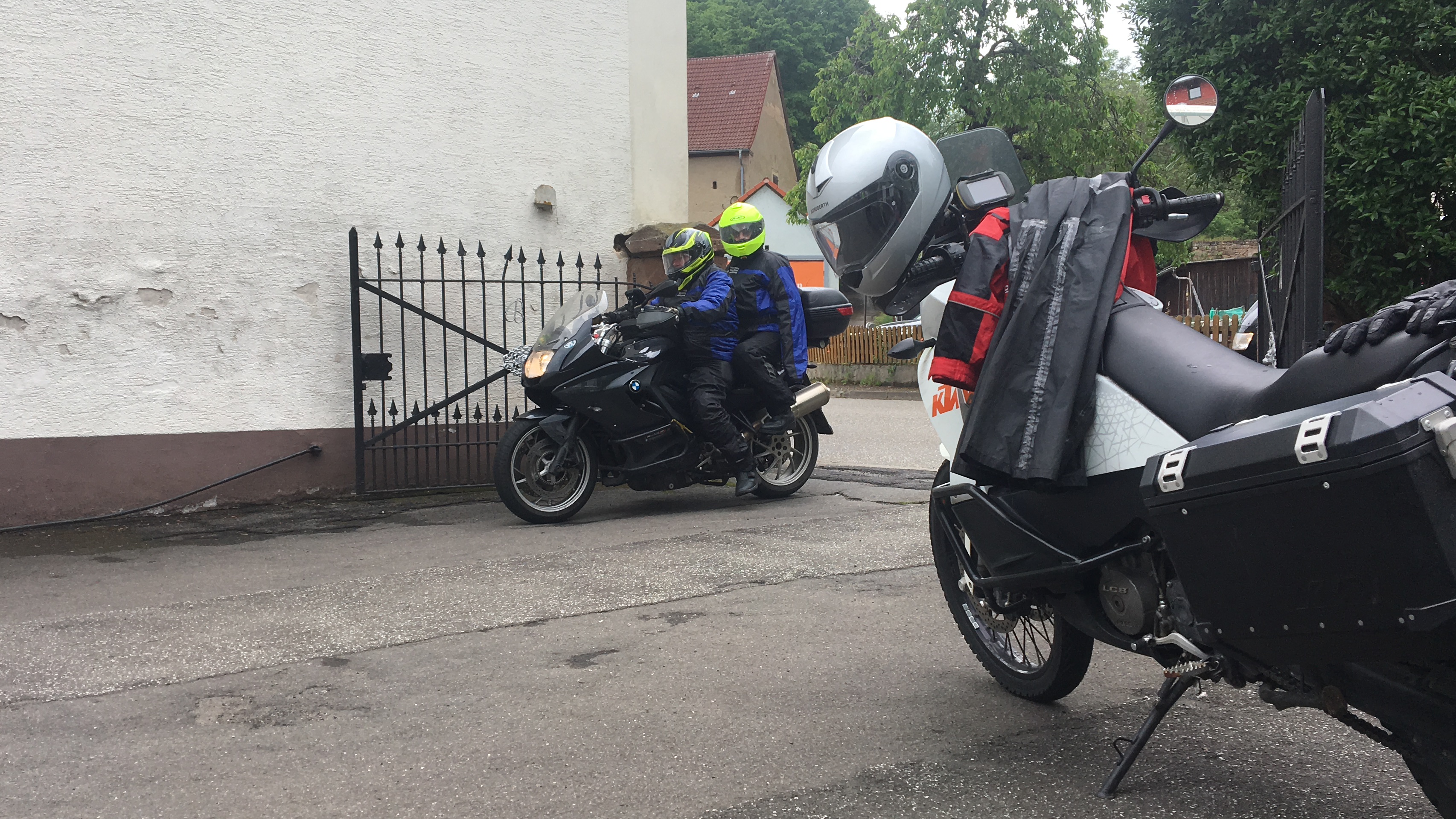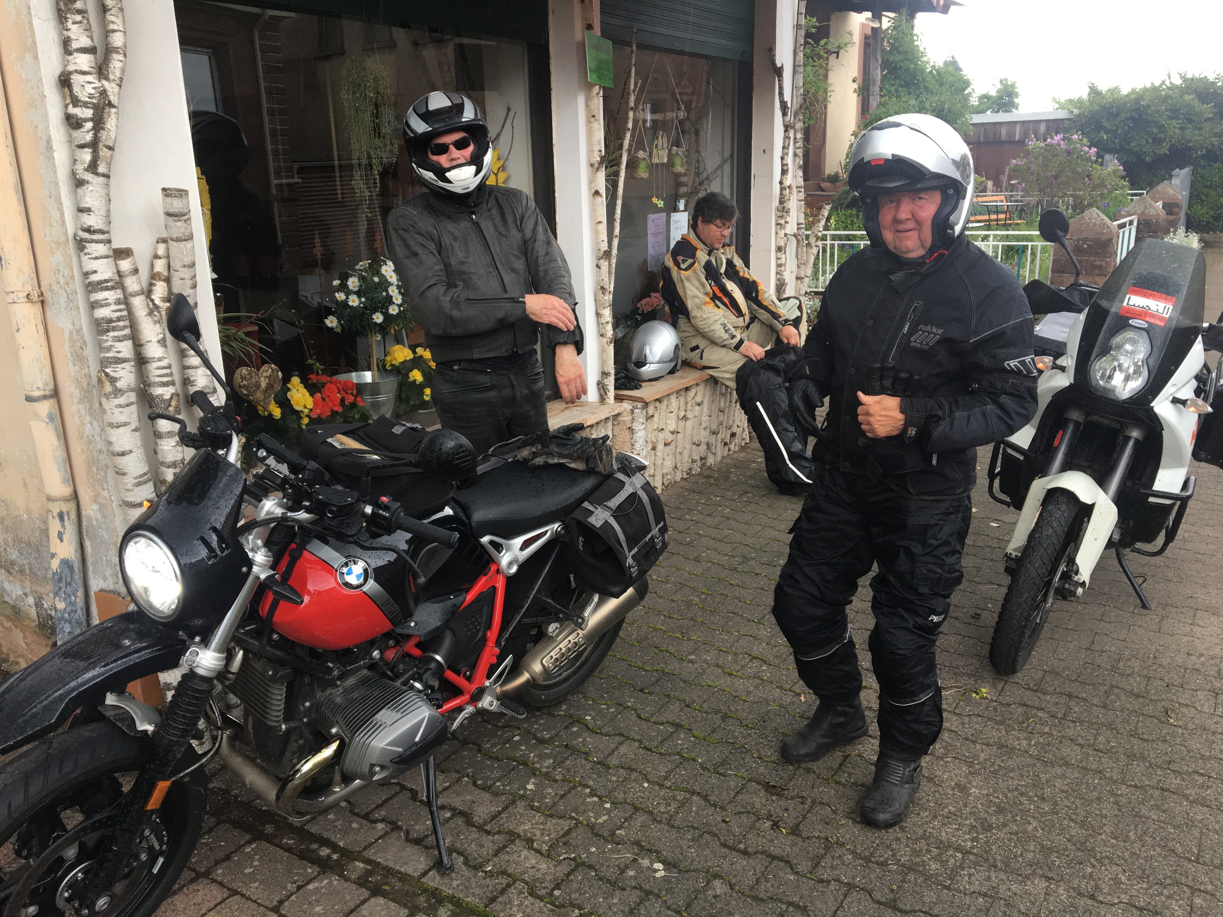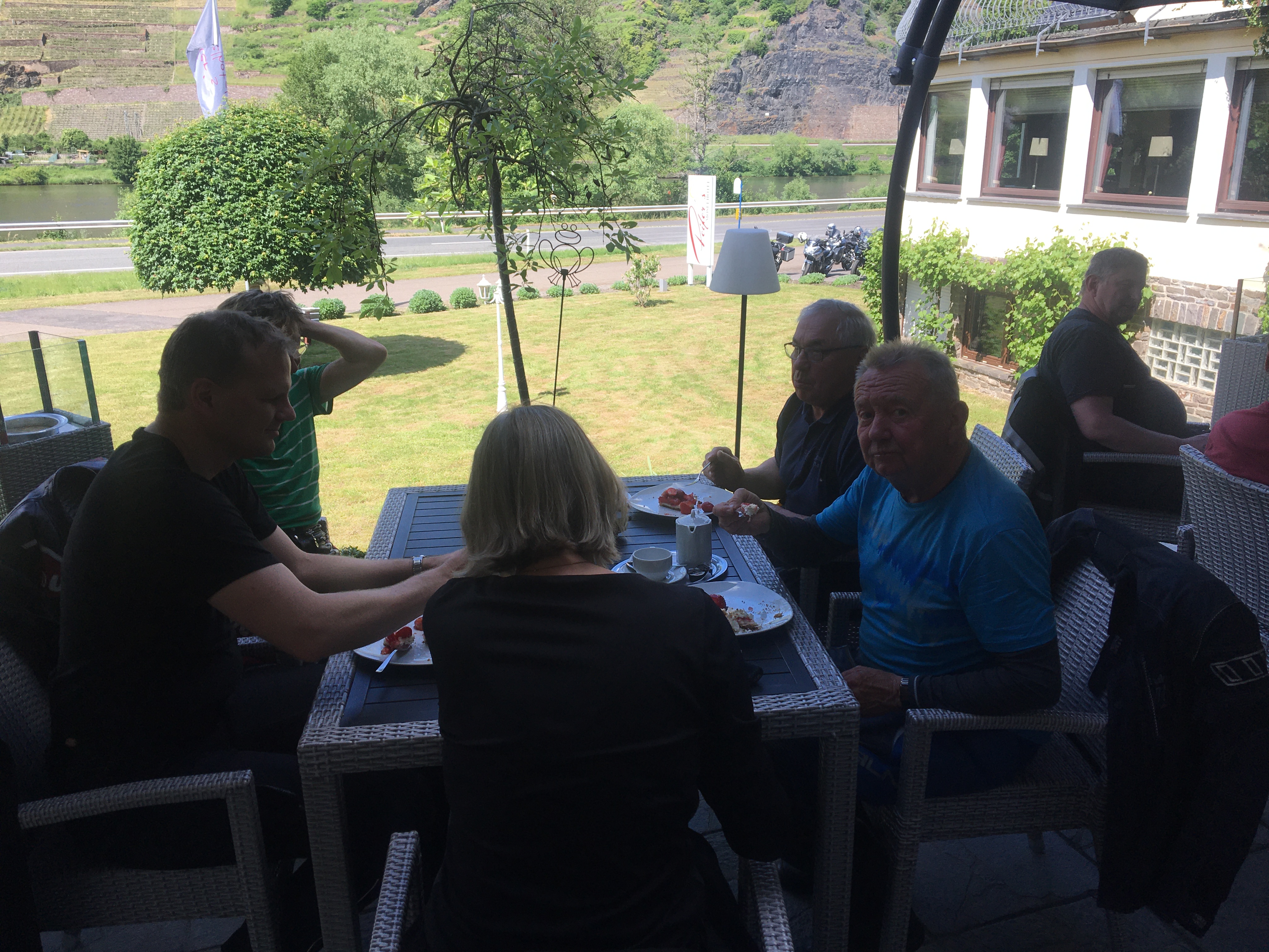 Irgendwie habe ich Hunger. Rührei mit Schinken wäre jetzt genau das richtige, für’s zweite Frühstück. „Mache ich“, sagt der Chef des Hauses und wenig später steht die Pfanne brutzelnd vor mir auf dem Tisch. Unterdessen warten wir auf Regina, Thomas und Andreas, für die die Fahrt nach Weißkirchen ein Umweg gewesen wäre. Als die Gruppe komplett ist, starten wir zur nächsten Etappe.