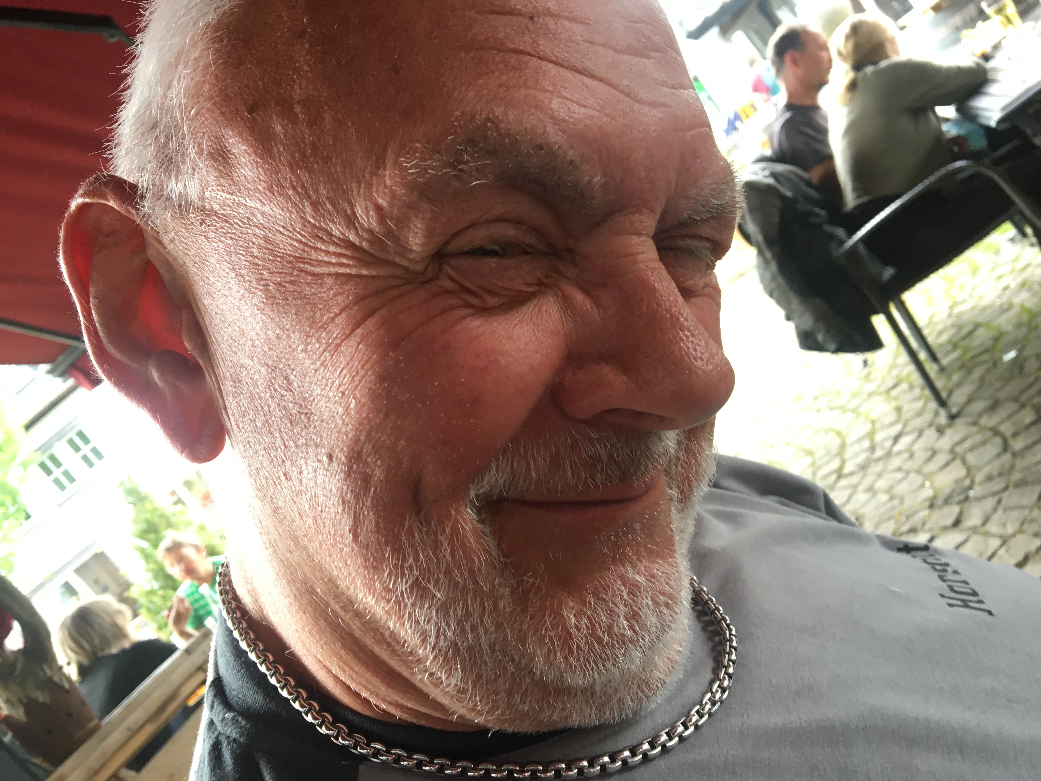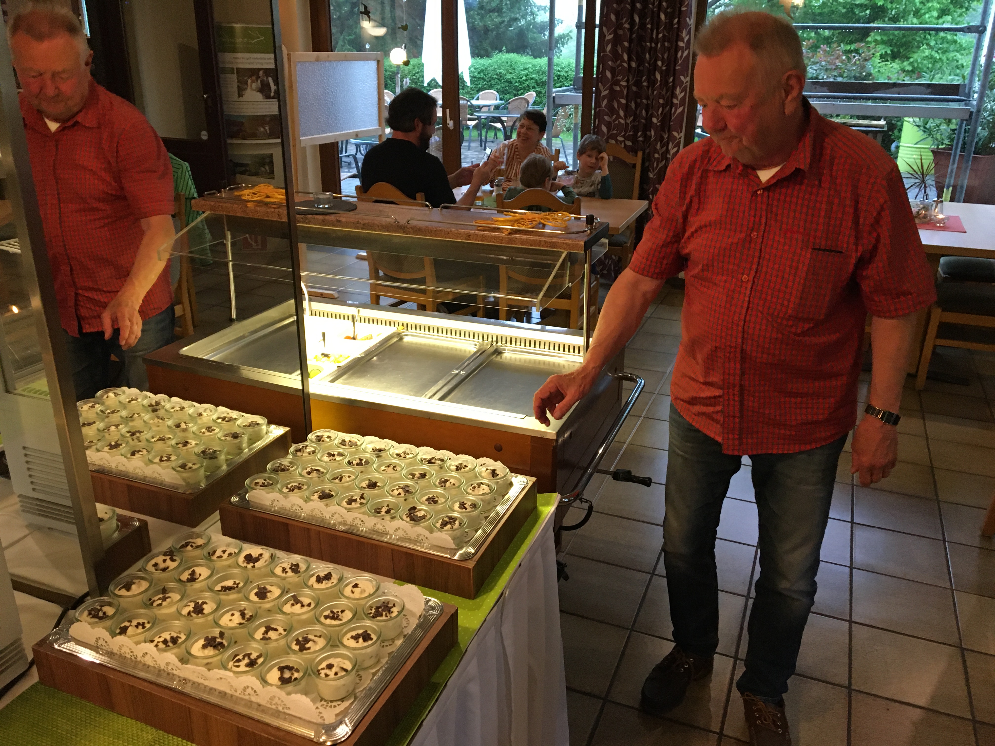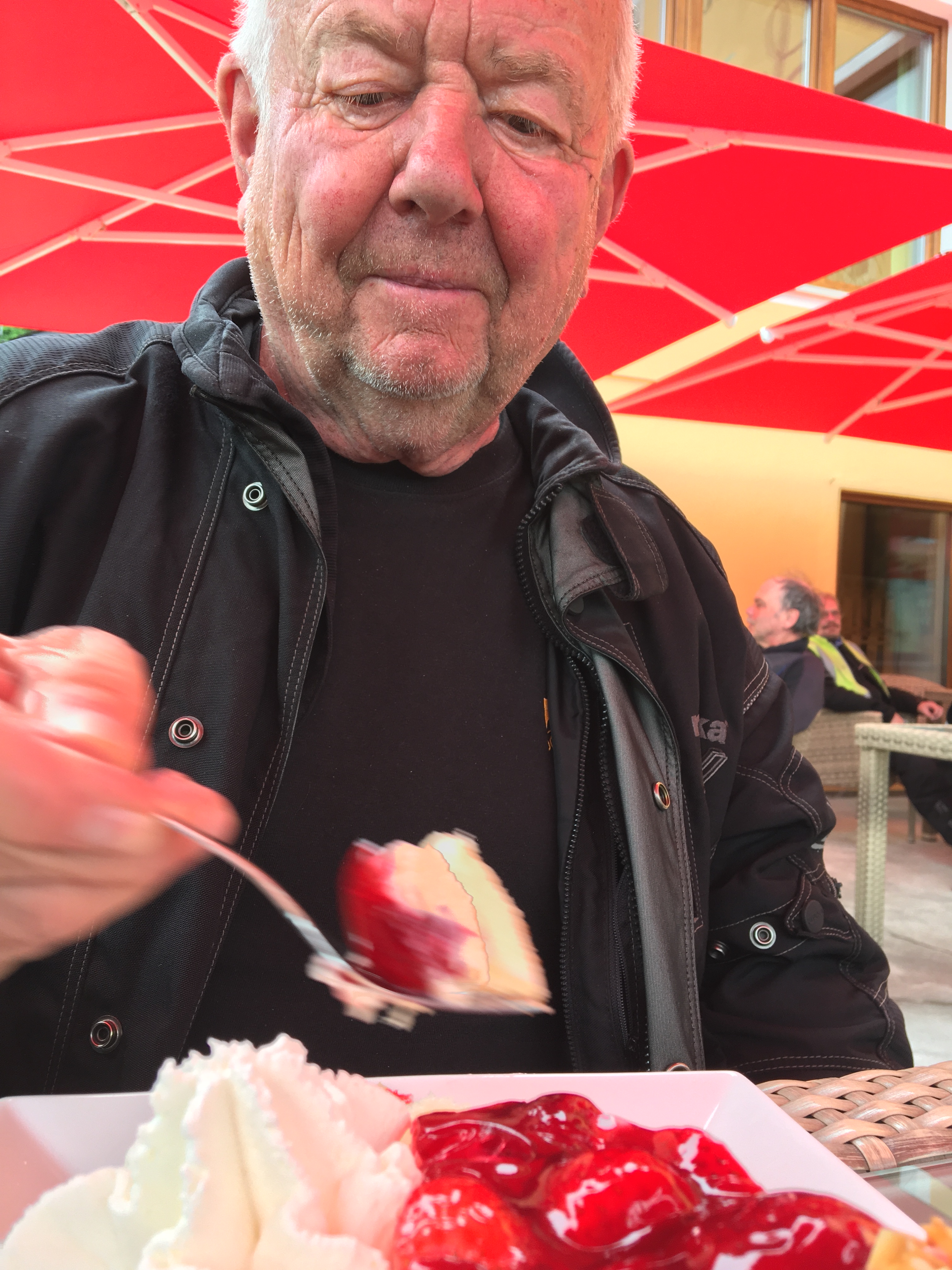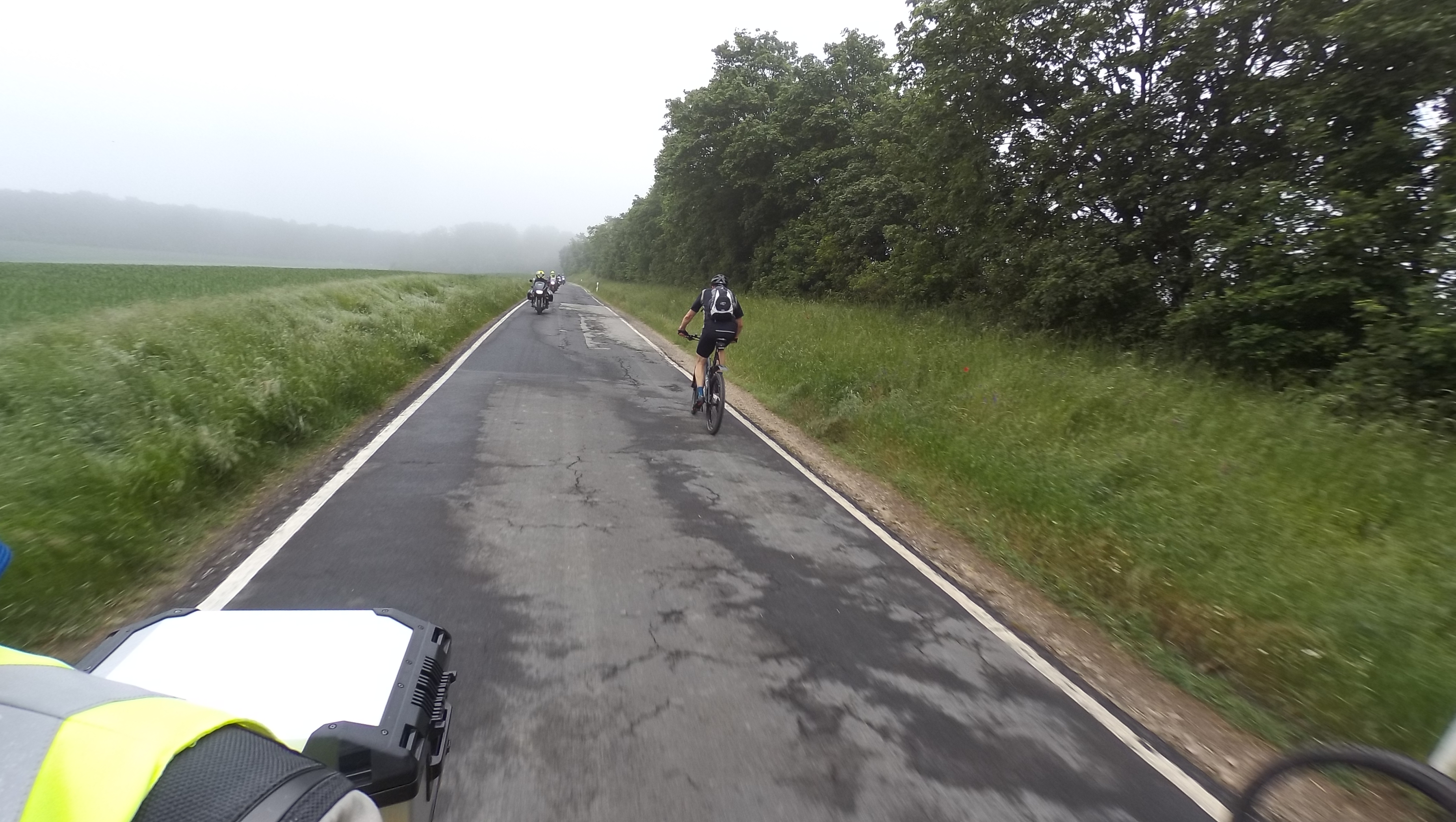 Irgendwie habe ich Hunger. Rührei mit Schinken wäre jetzt genau das richtige, für’s zweite Frühstück. „Mache ich“, sagt der Chef des Hauses und wenig später steht die Pfanne brutzelnd vor mir auf dem Tisch. Unterdessen warten wir auf Regina, Thomas und Andreas, für die die Fahrt nach Weißkirchen ein Umweg gewesen wäre. Als die Gruppe komplett ist, starten wir zur nächsten Etappe.