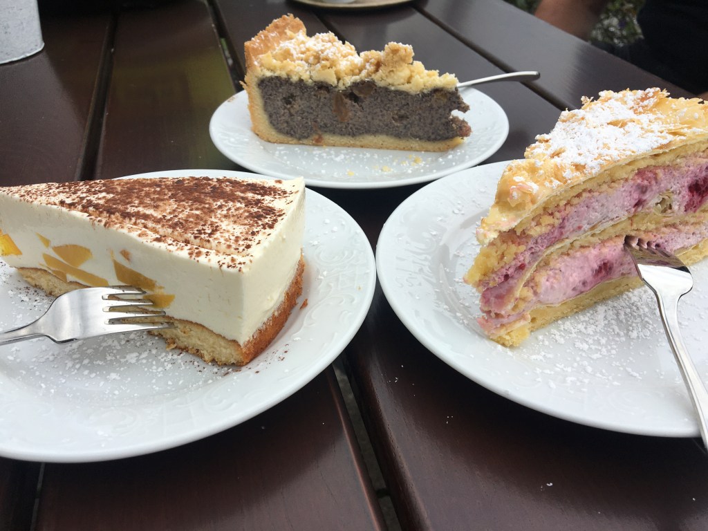 Schon allein der selbstgebackenen Kuchen wegen lohnt ein Stopp im Gasthof Liesetal. Wir sitzen auf der Terrasse und können uns zwischen Aprikosen-Schmand-, Mohn- oder Himbeerkuchen kaum entscheiden. Alles sehr lecker in dieser ländlichen Idylle. Hinter dem Haus stehen ein paar Kühe auf der Weide und muhen gelegentlich laut und wohl auch ein wenig neidisch. Einfach herrlich.