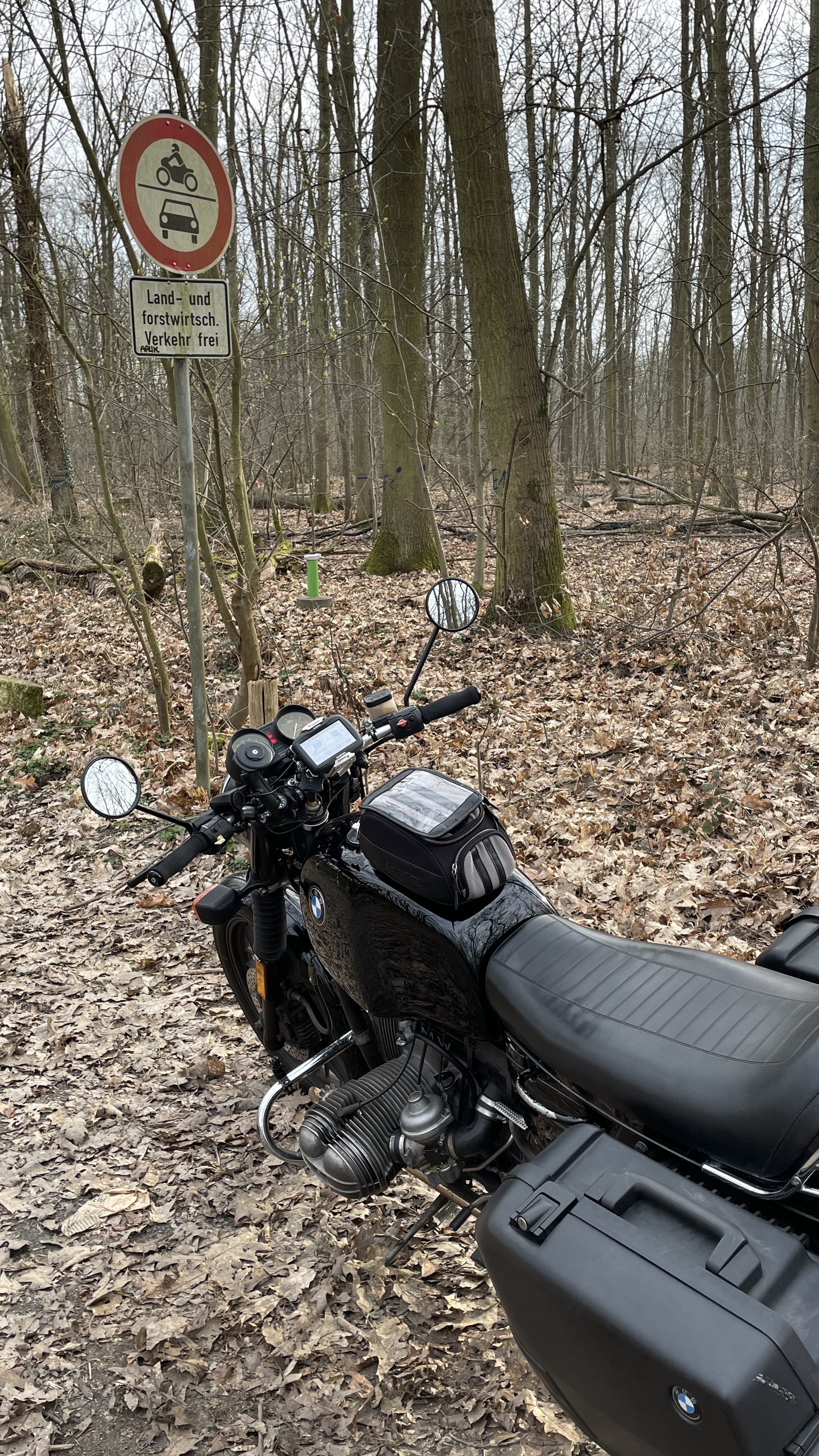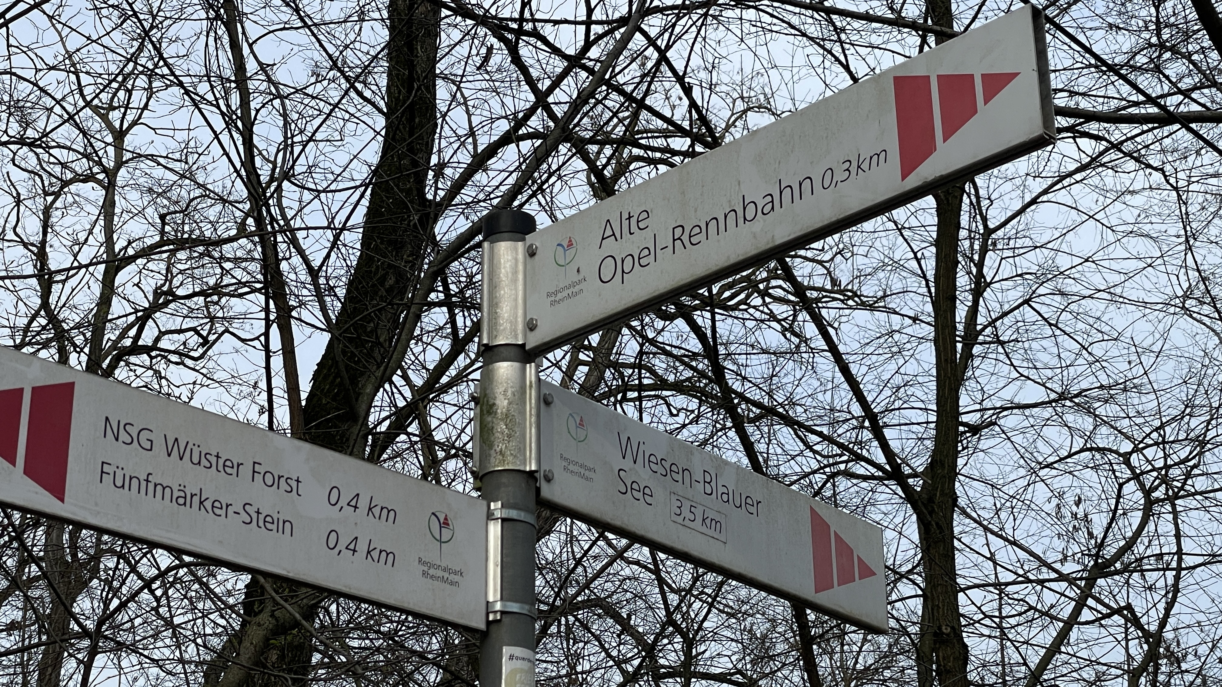 Kleine „Spritztour“ am späten Samstagnachmittag. Nach einer guten halben Stunde Fahrt bin ich am Ziel. Fast – bis hierher und nicht weiter, signalisiert ein Sperrschild. Dahinter liegt ein Wasserschutzgebiet, das mit ein Grund für den Niedergang des „Motodroms“ vor den Toren der Stadt Rüsselsheim ist. Heißt: die letzten 300 Meter bis zur alten Rennstrecke müssen zu Fuß bewältigt werden …