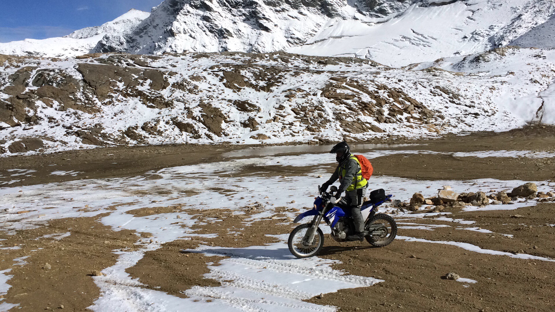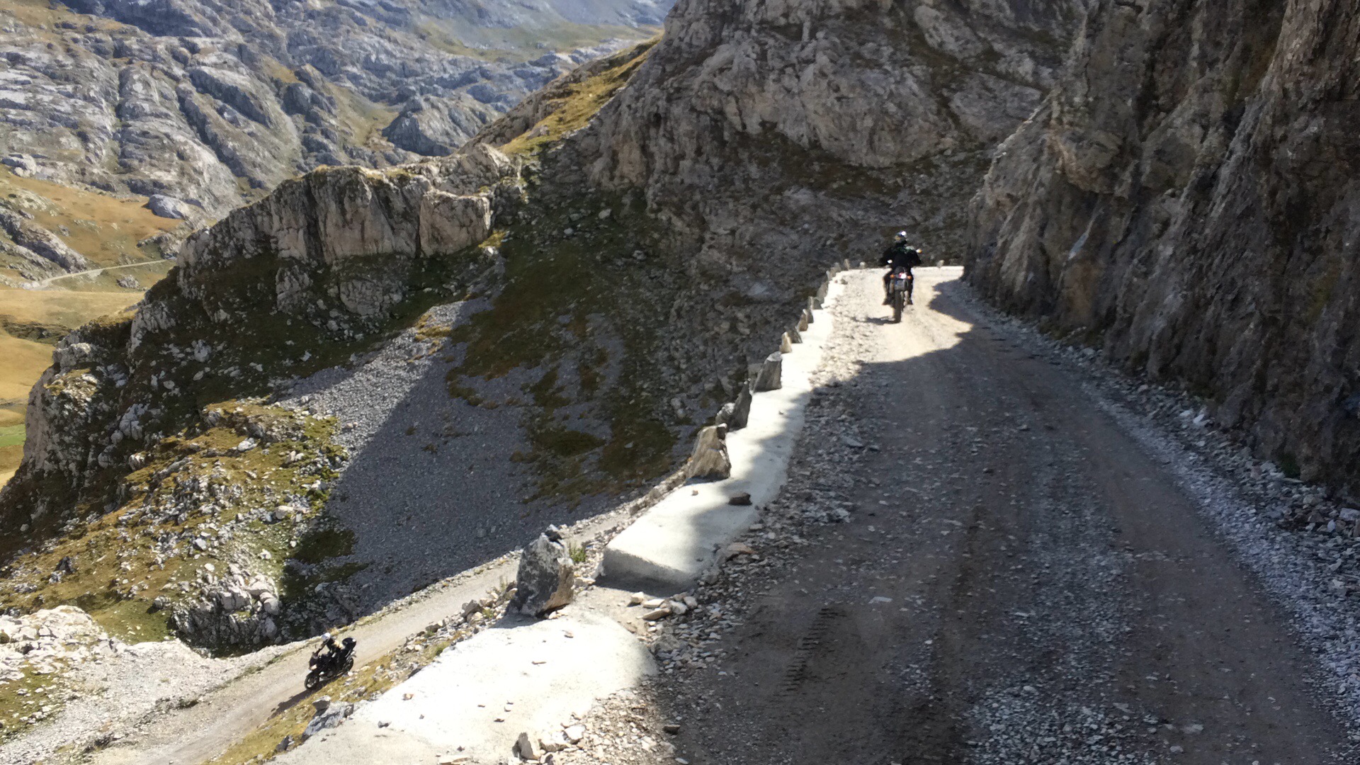Schon bald verliert sich der feste Unterbau und wir bewegen uns nur noch auf Geröll. Traktion ist Glücksache, häufig stehen die Maschinen quer und lassen sich nur mit vereinten Kräften vorwärts bewegen. Ein üble Schinderei, die viel Kraft und Kondition fordert. Über eine Stunde brauchen wir für die letzten drei Kehren und zwei Kilometer Wegstrecke. Und so sind wir auch erst kurz vor 20 Uhr im Hotel – gerade richtig zum Abendessen.
