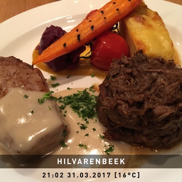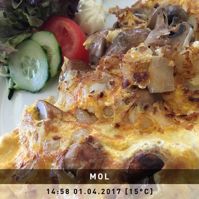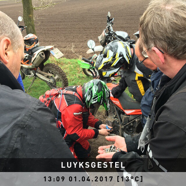 Glücklicherweise hatten wir ein ganzes Sortiment unterschiedlicher Schrauben und Unterlegscheiben dabei. Also wurde so lange probiert und geschraubt, bis das Ritzel wieder fest saß. Zehn Minuten Fahrt noch, dann kehrten wir zur Mittsgsrast ein. Unvermutet hatten wir die Grenze zu Belgien überquert. Im „Klothoeve“ kehren wir ein. Omelett mit Pilzen und Käse war der Rennen …