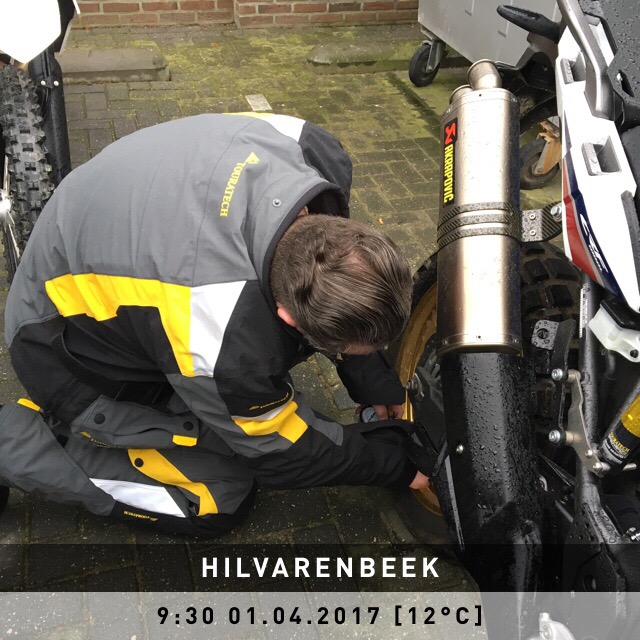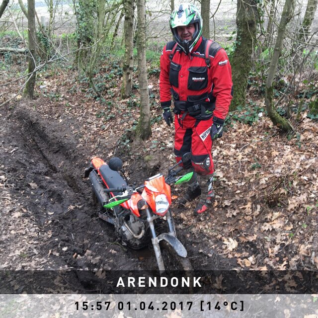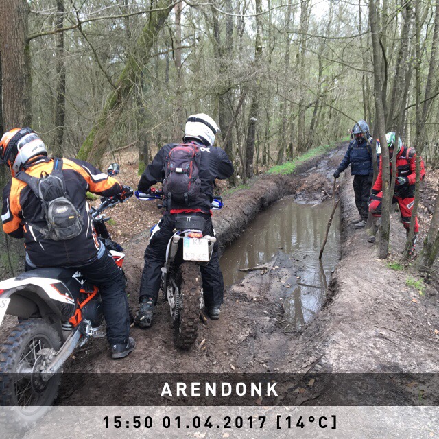 Bis zum späten Nachmittag haben wir unseren Spaß auf einer Vielzahl unbefestigter Weg. Dann heißt es Tanken und so langsam den Heimweg antreten. Wie gut, dass es die letzten 30 Kilometer so richtig zu regnen anfing – da waren Motorrad und Stiefel wenigstens vom gröbsten Dreck befreit.