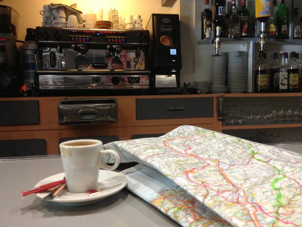 Kaffeepause unterwegs. Schnell ein Blick in die Karte, ob sich noch ein reizvoller Abstecher finden lässt, dann geht es auch schon weiter.