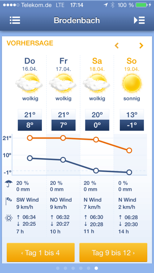 Schon mal die Wettervorhersage für die nächsten Tage angeschaut? Wetter.com verspricht für Freitag, Samstag und Sonntag rund um Brodenbach trockene Straßen und Sonne satt. Perfekt, denn da wollen wir an der Mosel drei Tage lang Motorrad fahren.