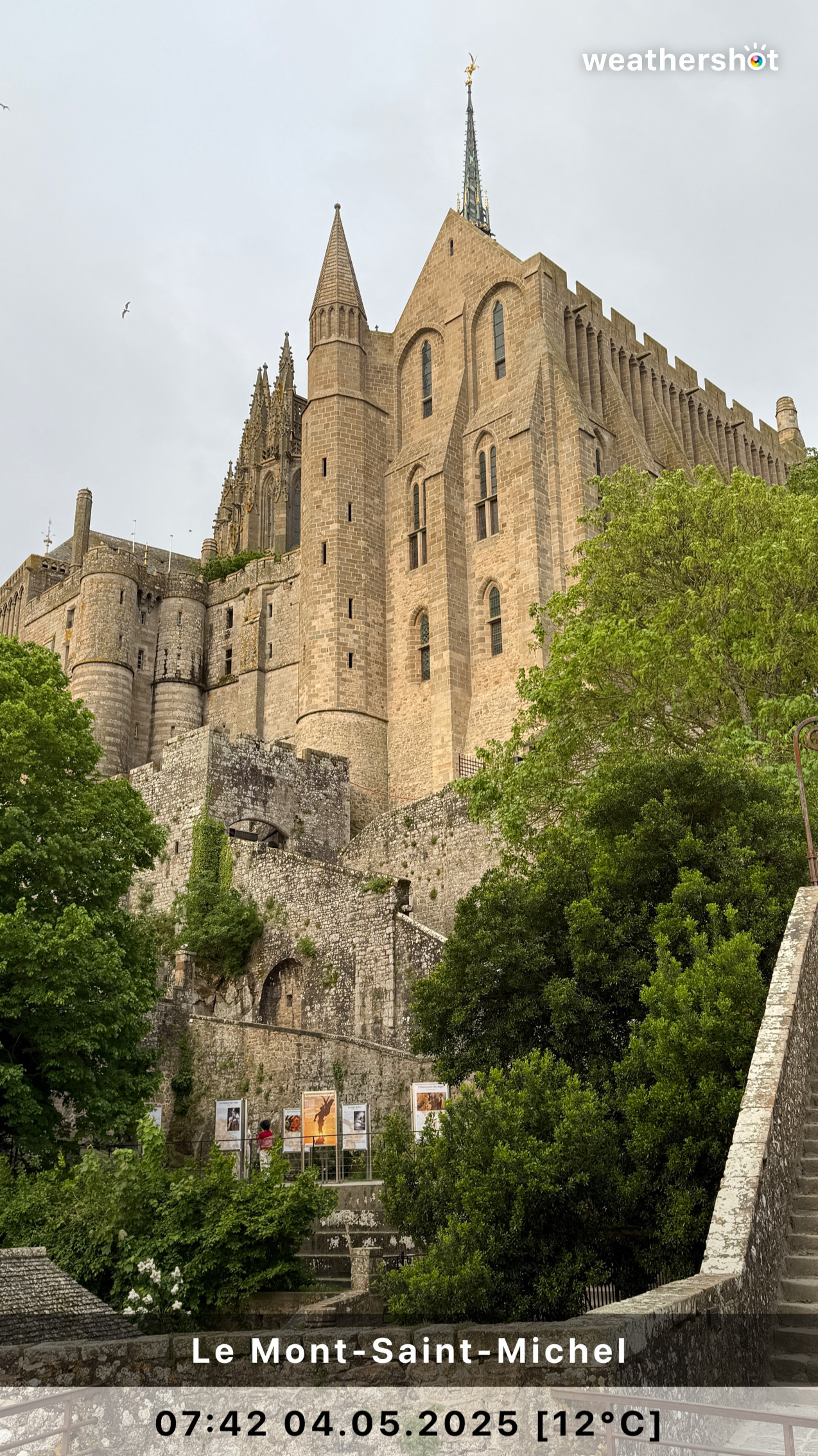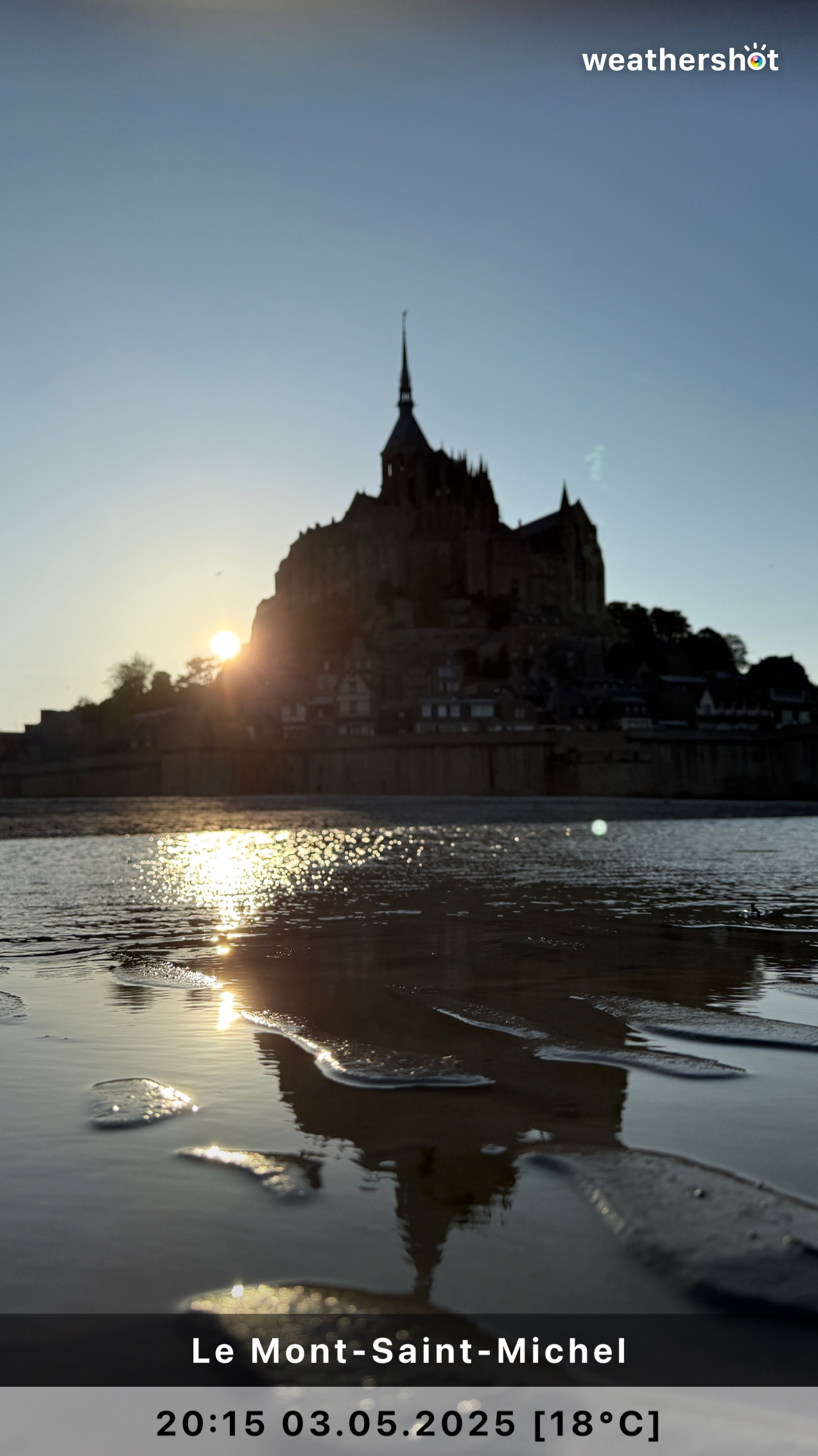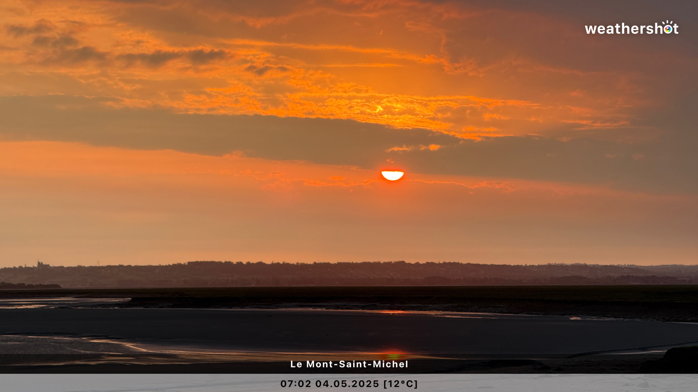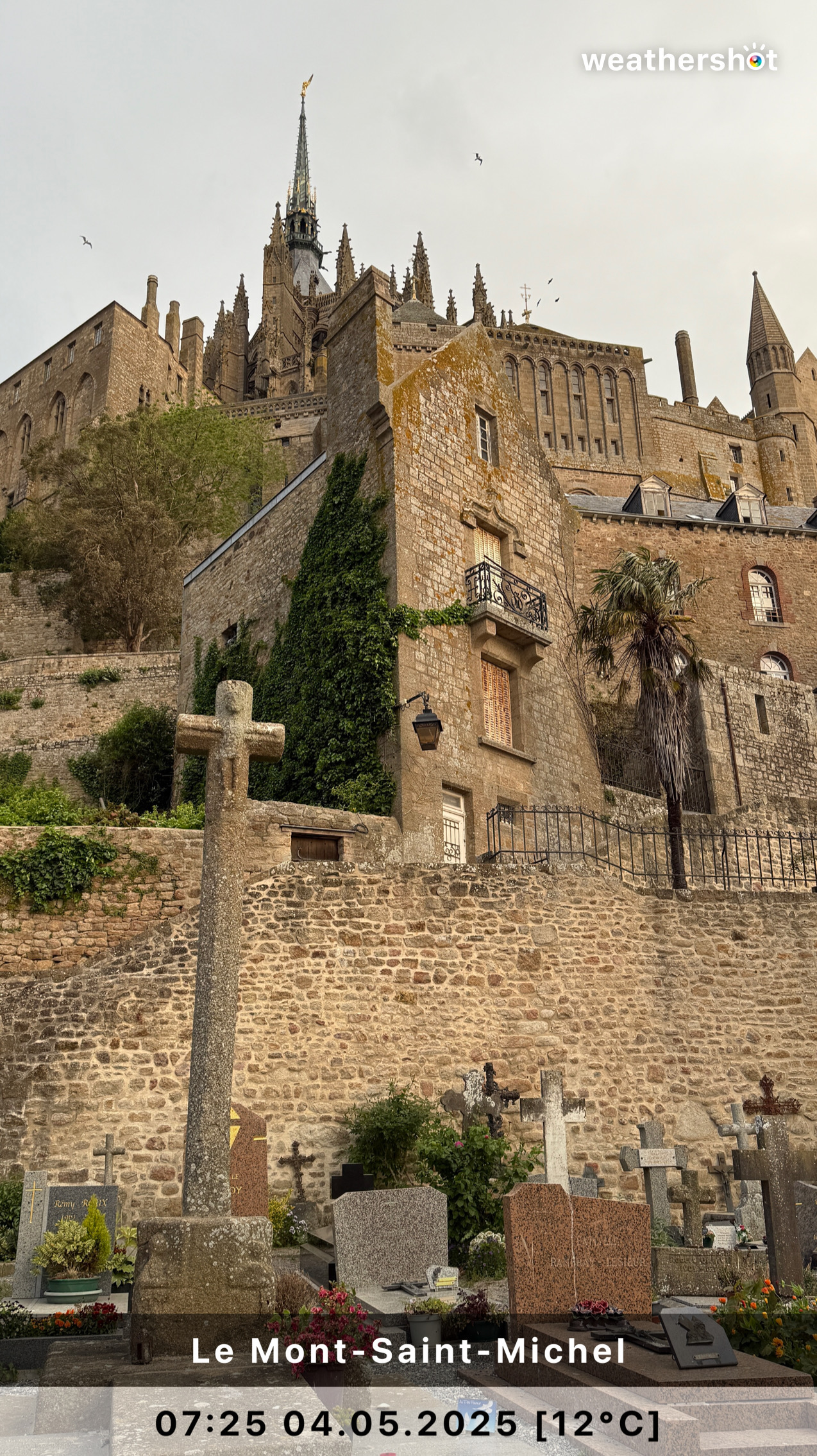 NORMANDIE – So. 4.5.2025: Der Sonnenaufgang ist anders als erhofft, aber nicht minder eindrucksvoll. Ich laufe noch mal rüber, zum Klosterberg, um in den frühen Morgenstunden ein paar Fotos ohne „störende“ Menschen machen zu können …