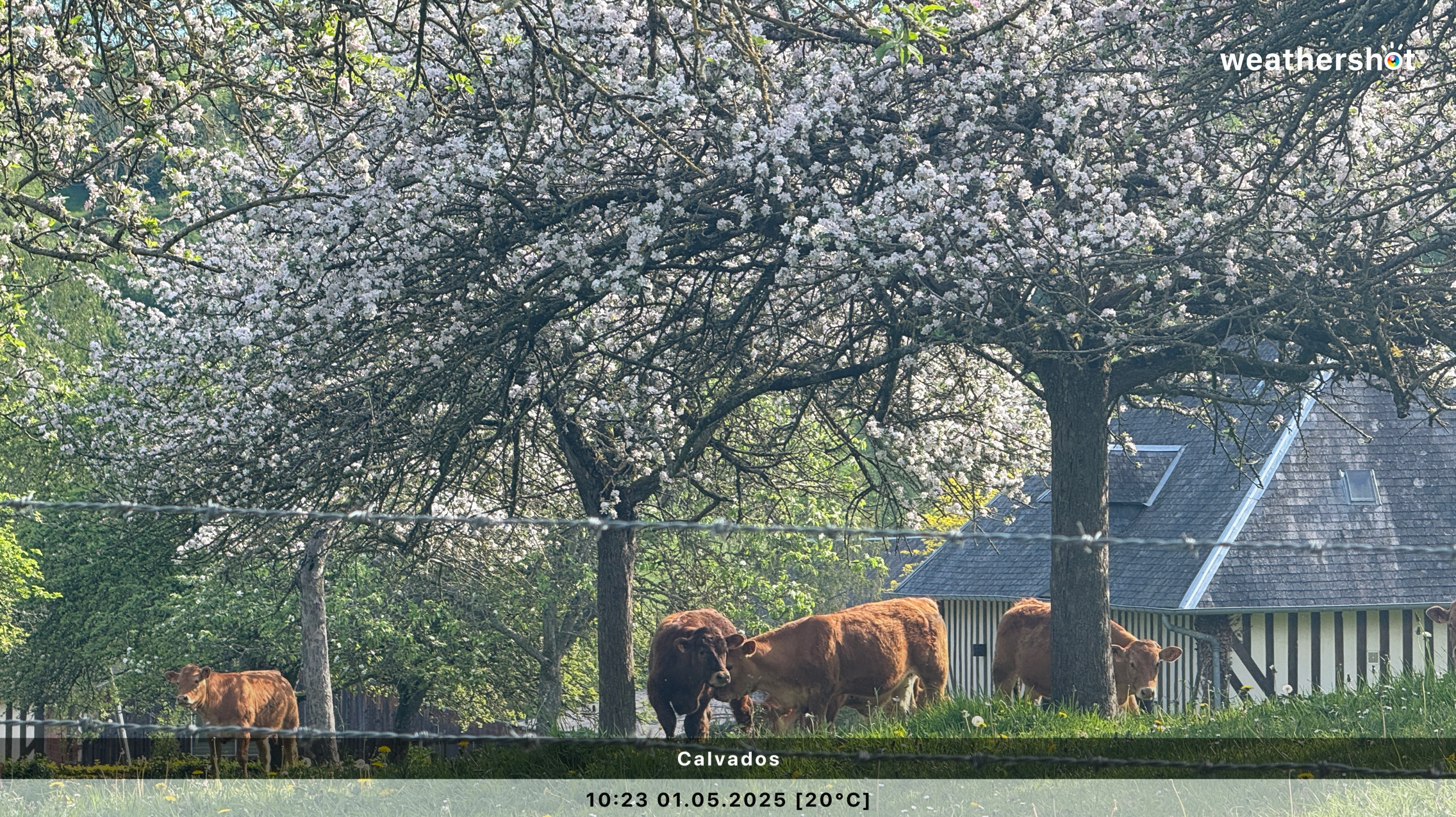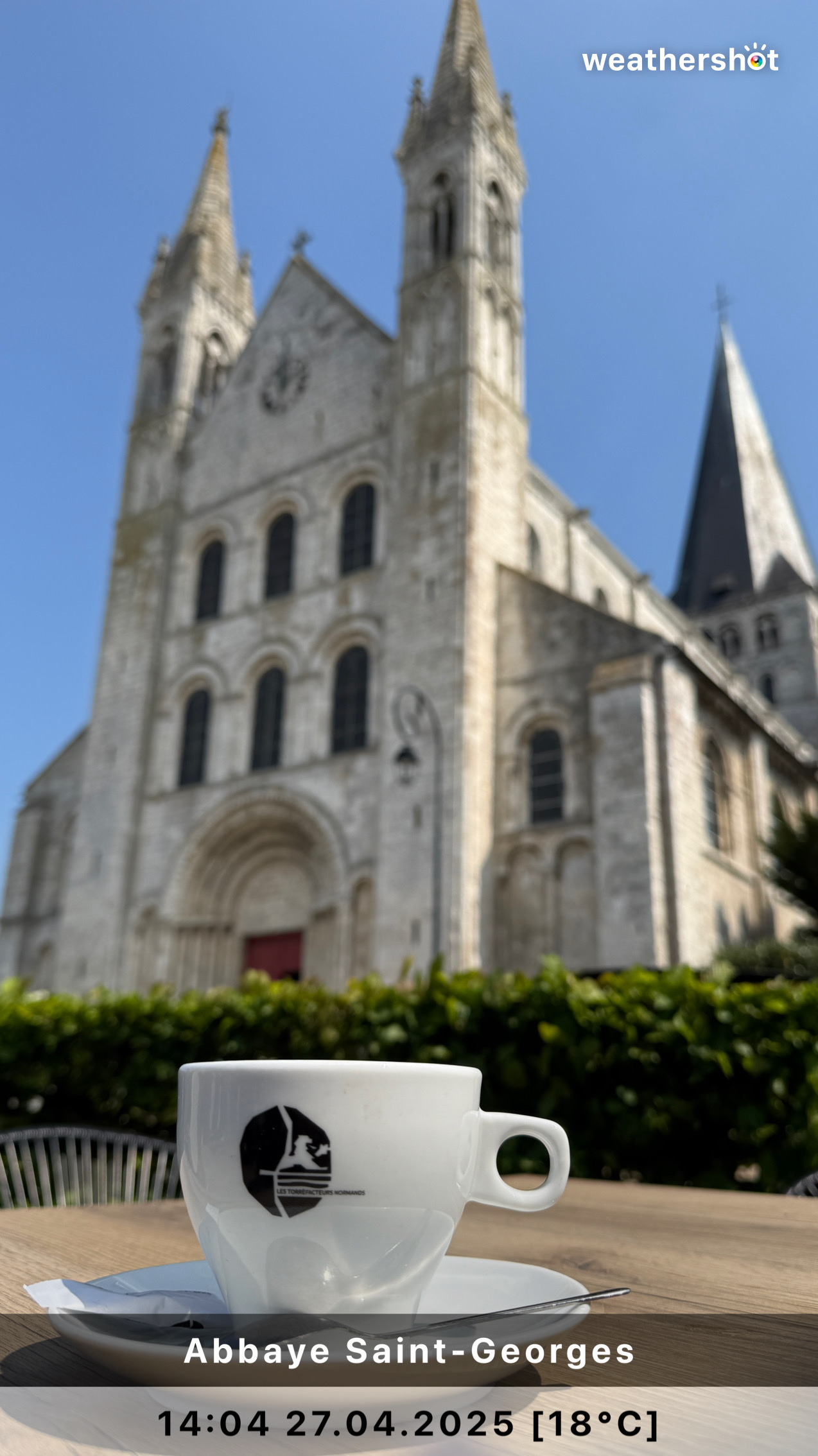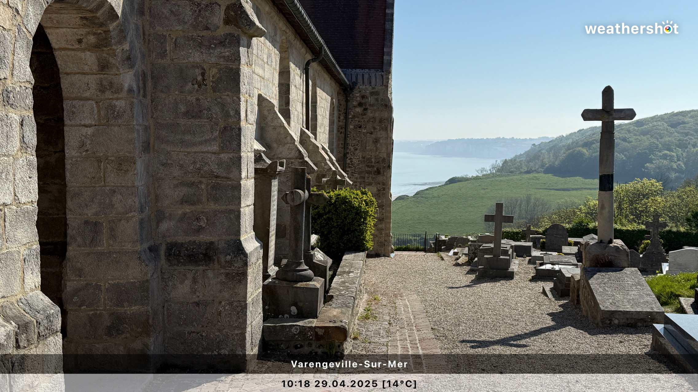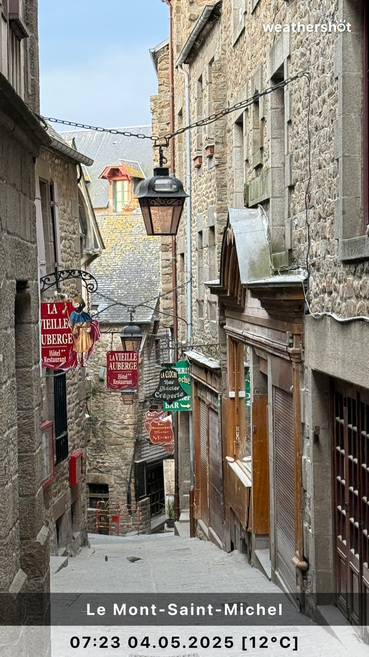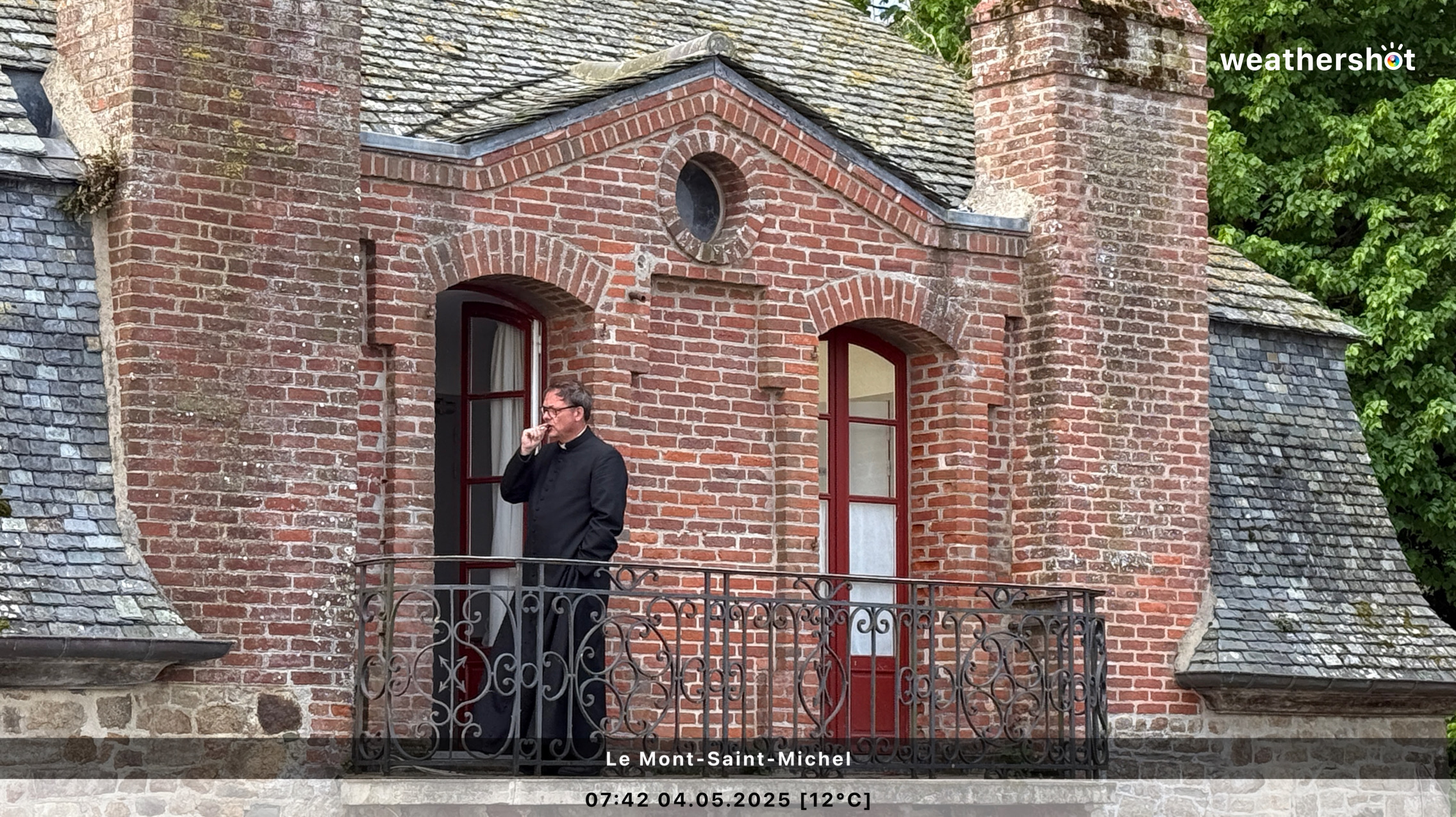 NORMANDIE – So. 4.5.2025: Der Sonnenaufgang ist anders als erhofft, aber nicht minder eindrucksvoll. Ich laufe noch mal rüber, zum Klosterberg, um in den frühen Morgenstunden ein paar Fotos ohne „störende“ Menschen machen zu können …