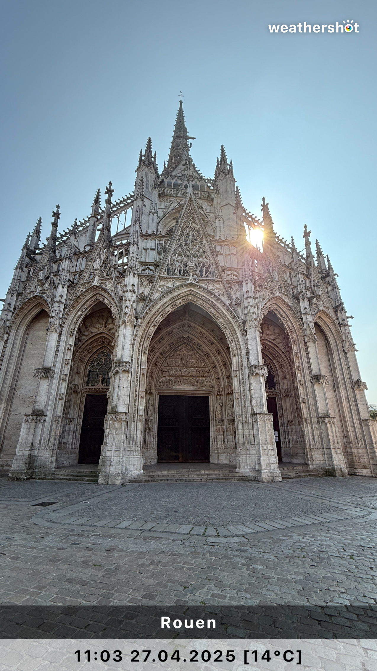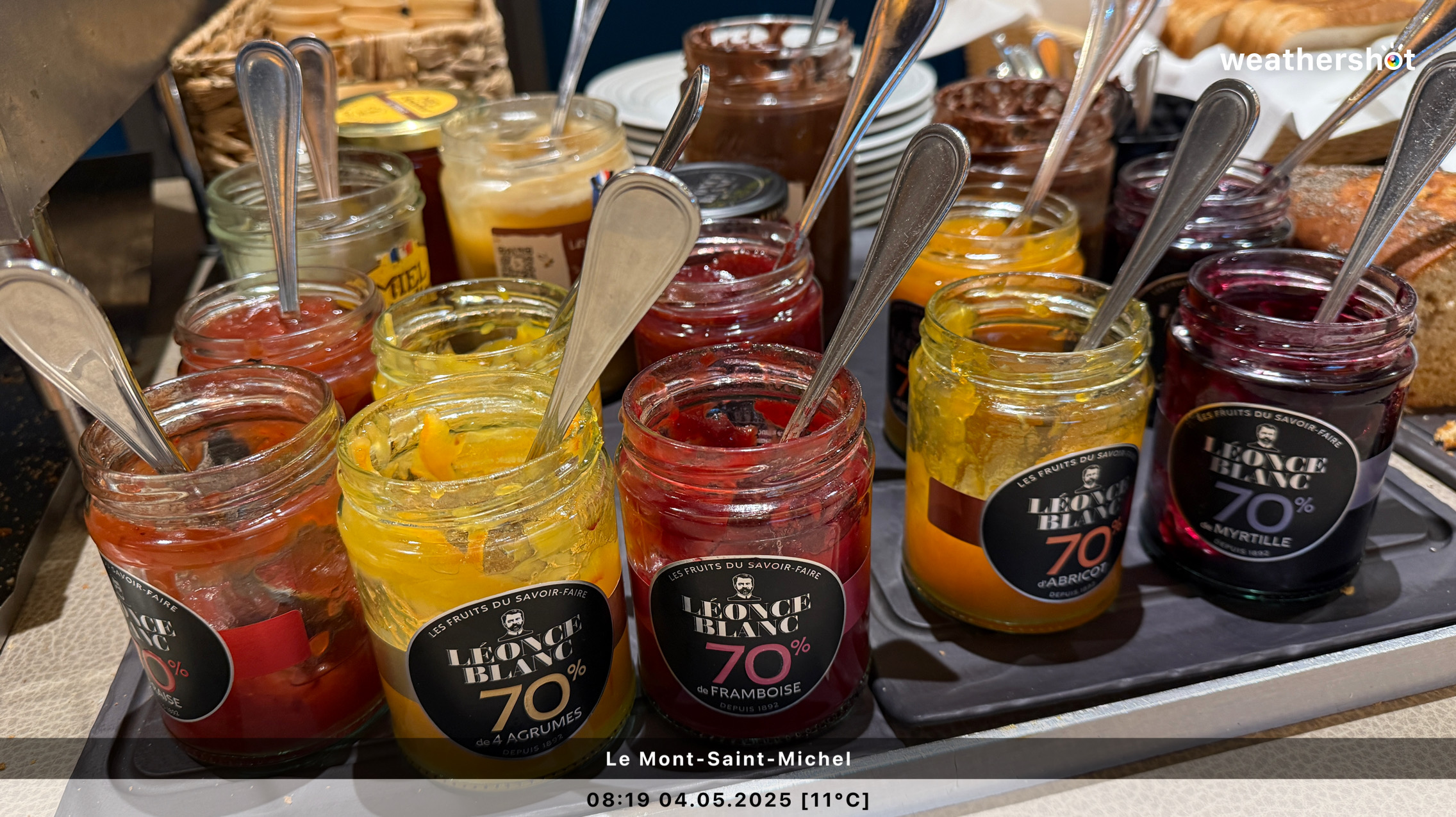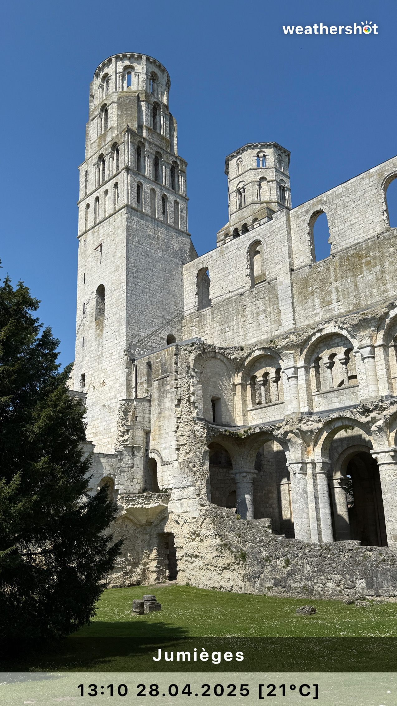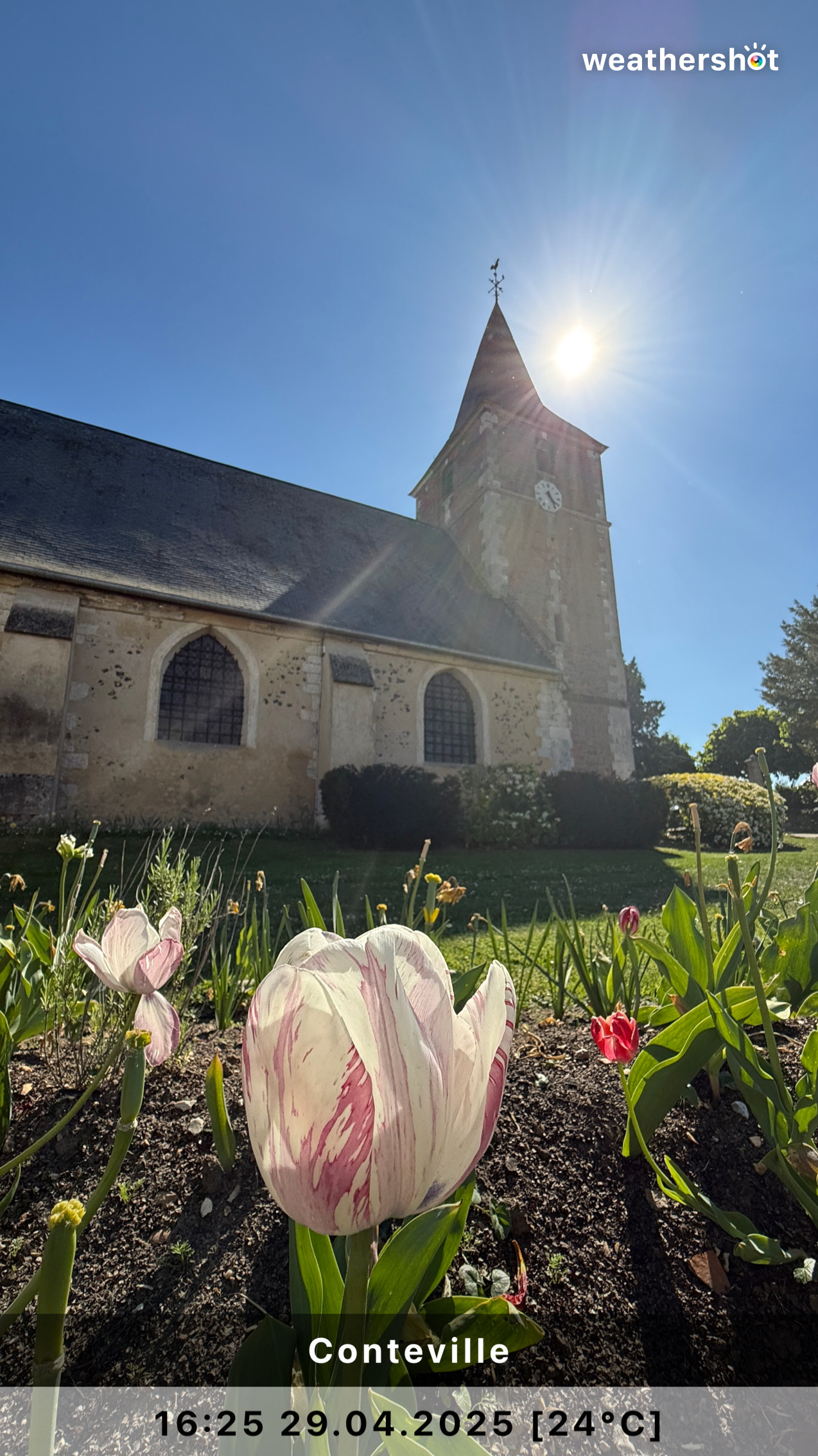 NORMANDIE – So. 4.5.2025: Der Sonnenaufgang ist anders als erhofft, aber nicht minder eindrucksvoll. Ich laufe noch mal rüber, zum Klosterberg, um in den frühen Morgenstunden ein paar Fotos ohne „störende“ Menschen machen zu können …