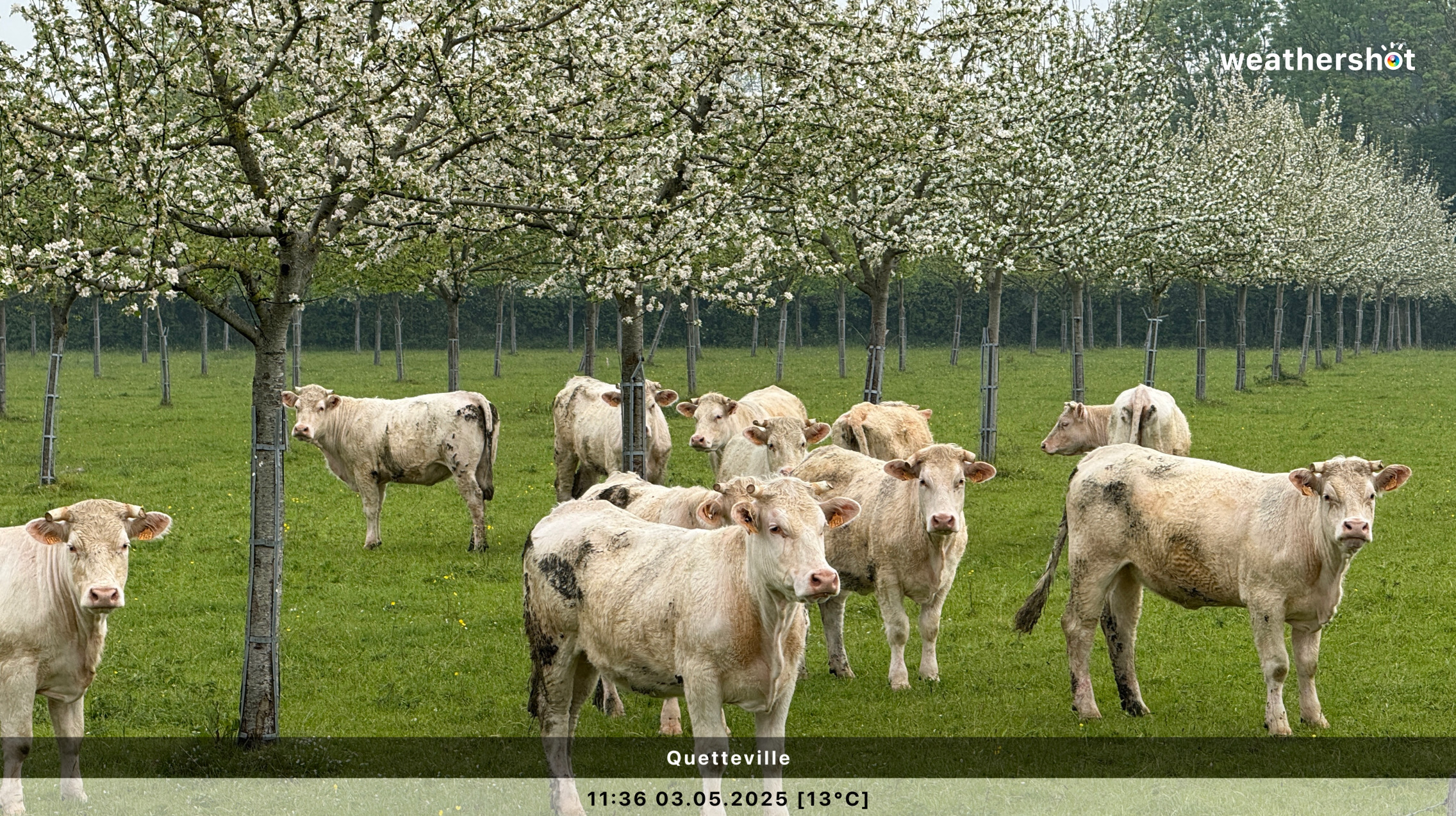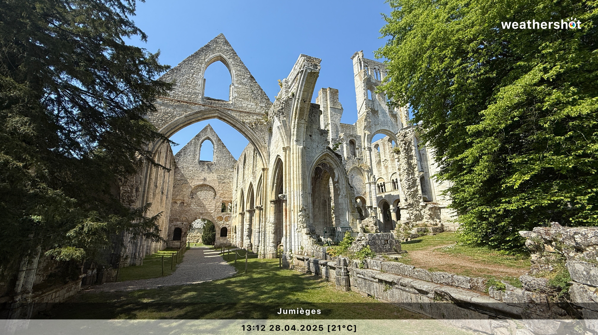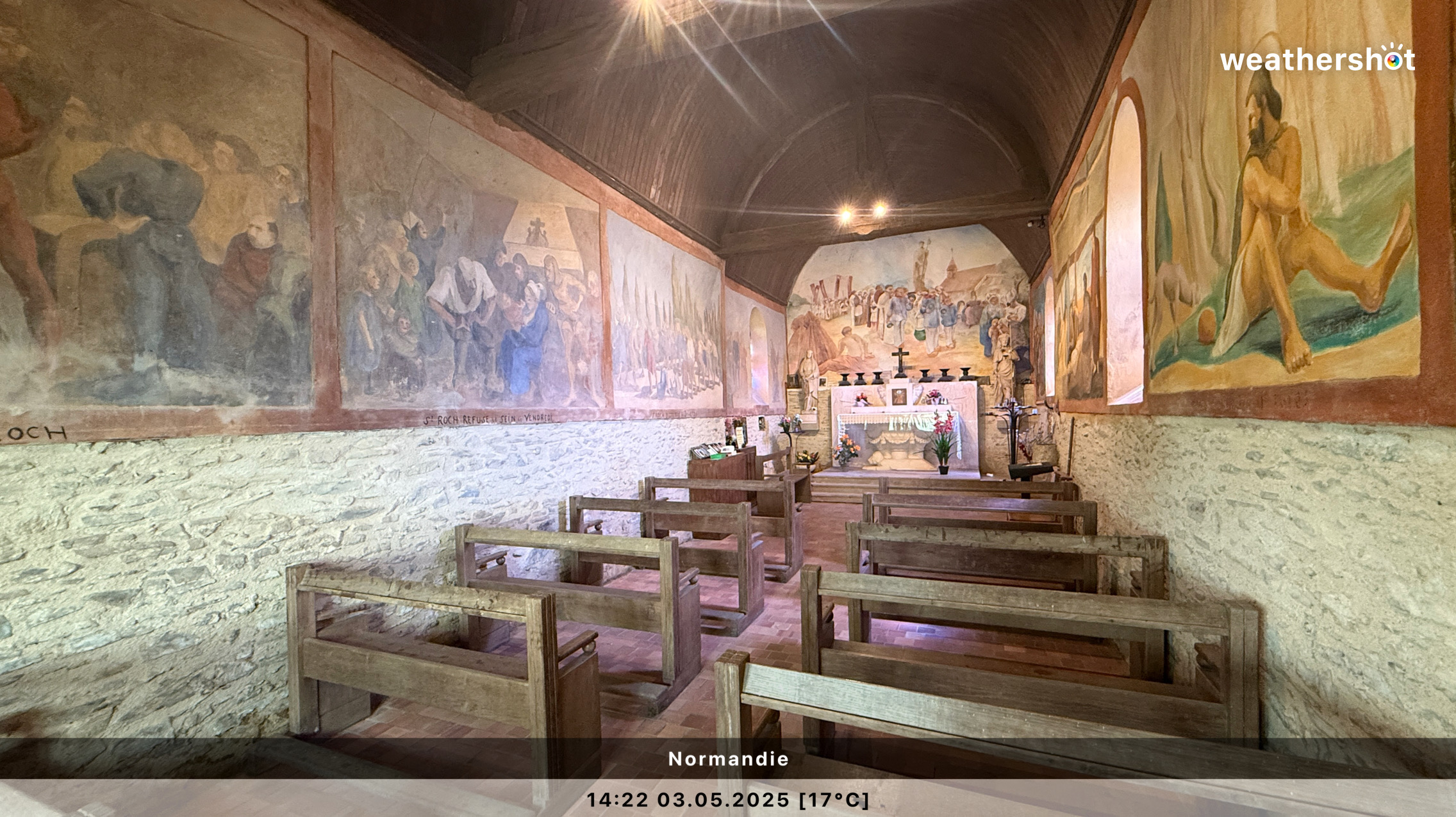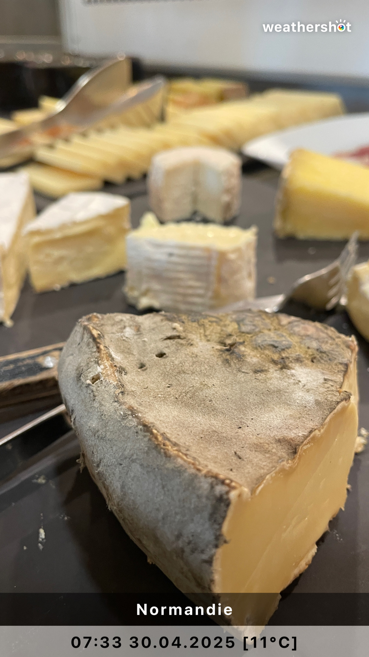 NORMANDIE – So. 4.5.2025: Der Sonnenaufgang ist anders als erhofft, aber nicht minder eindrucksvoll. Ich laufe noch mal rüber, zum Klosterberg, um in den frühen Morgenstunden ein paar Fotos ohne „störende“ Menschen machen zu können …