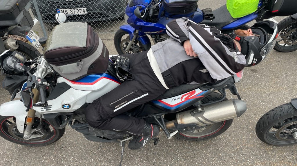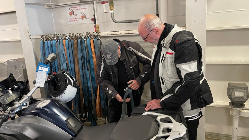 Super pünktlich erreichen wir den Hafen. Kurz nach uns treffen Claudia und Willi mit dem Begleitbus ein. Jetzt heißt es warten. Statt wie geplant und 12 Uhr beginnt die Verladung erst gegen 13 Uhr. Erika verwöhnt uns so lange mit Trockenobst und Nüssen aus den Vorräten im Topcase; auch eine Mütze Schlaf wird gerne nachgeholt …