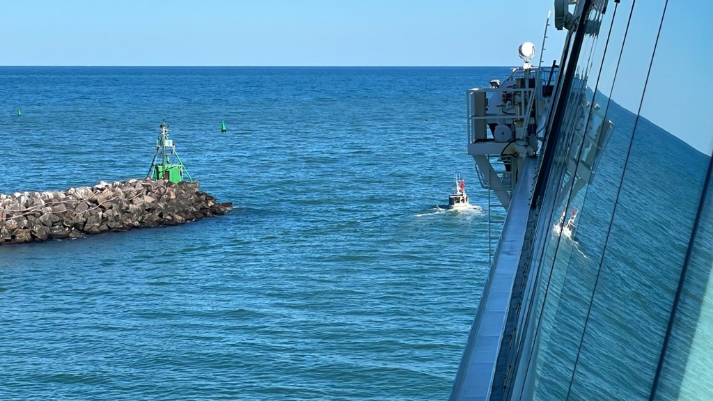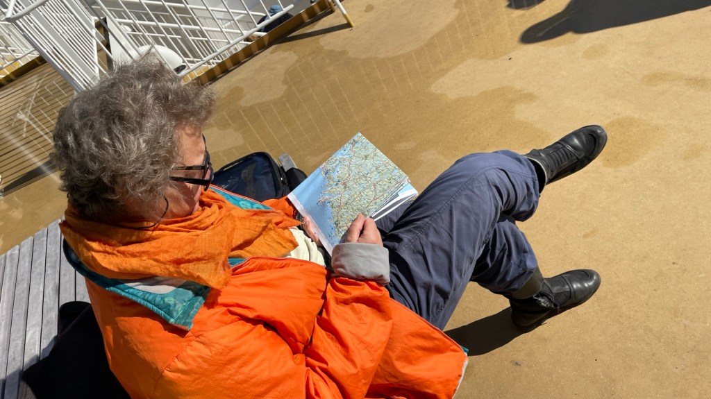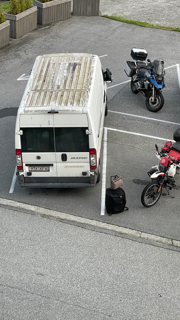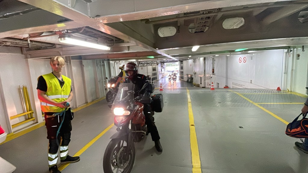 DIENSTAG, 20.8.2024 – 200 Kilometer in gut vier Stunden? Das sollte zu schaffen sein. „Bitte seien Sie unbedingt vor zwölf Uhr am Counter, wir wollen pünktlich mit dem Boarding beginnen“, hatte uns die Fährgesellschaft mitgeteilt. Um für alle Eventualitäten gewappnet zu sein, wollen wir um acht starten, auch wenn das Navi eine Fahrzeit von weniger als drei Stunden berechnet.
