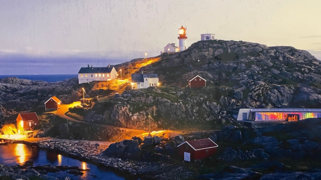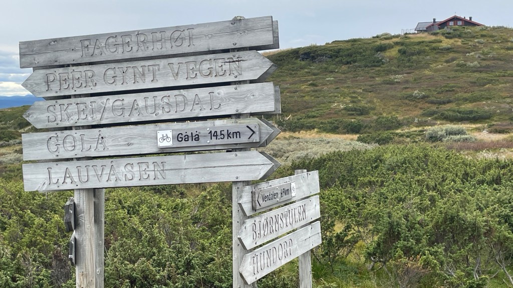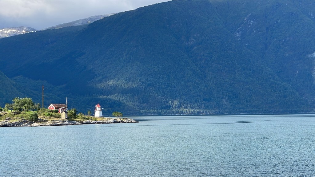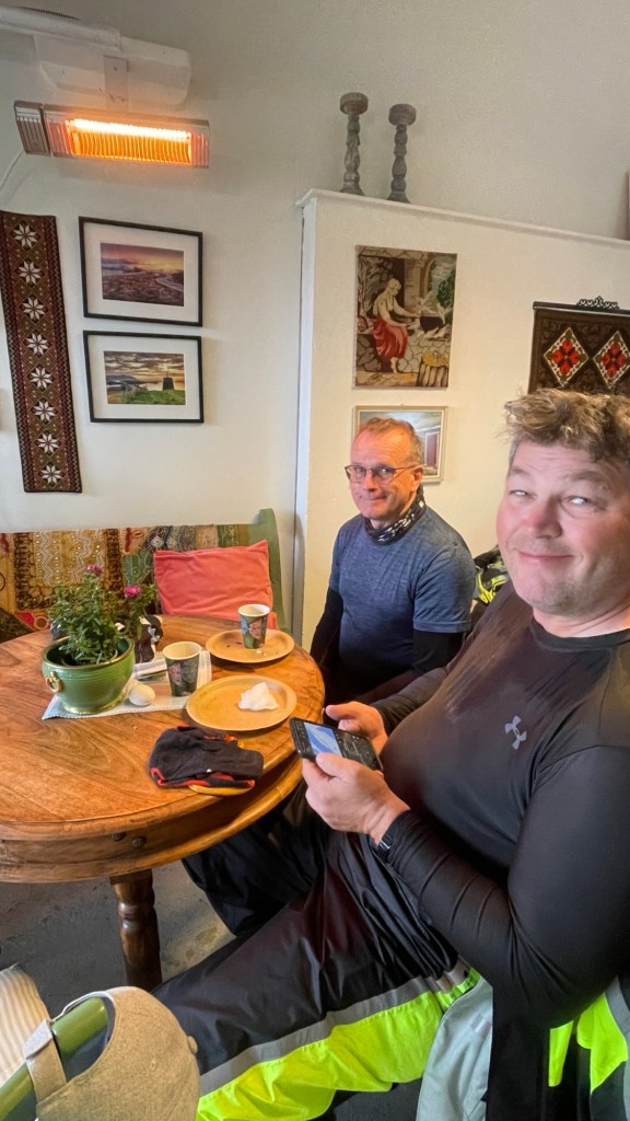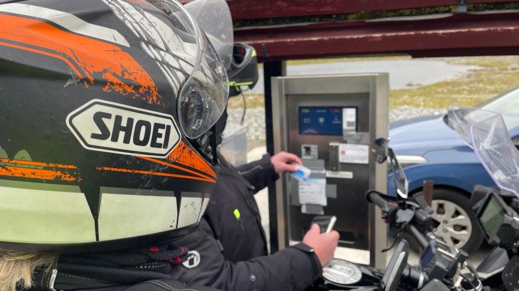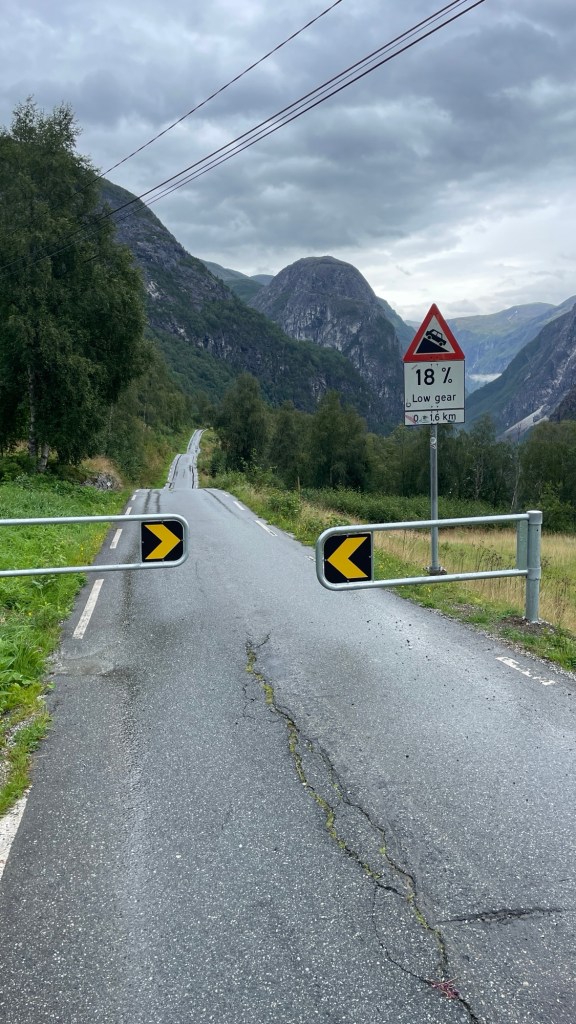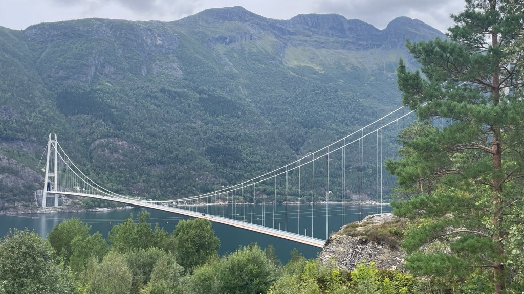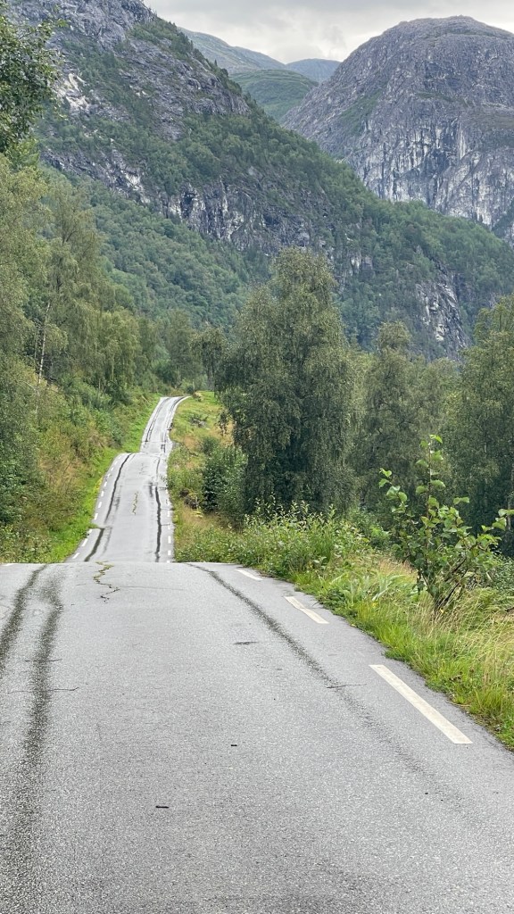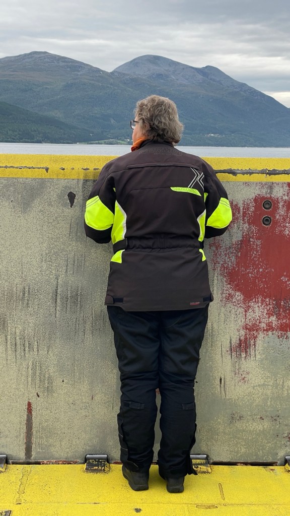 Da wir gut in der Zeit liegen, können wir an einer Raststätte noch eine Kaffeepause einlegen und Proviant für die Fähre kaufen: unter anderem Knäckebot mit Brunost, dem norgewischen Karamell-Käse. Diese „Perversität“ muss zum Schluss einfach sein …