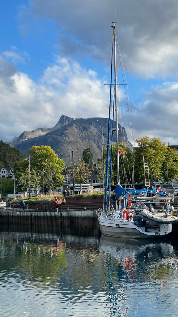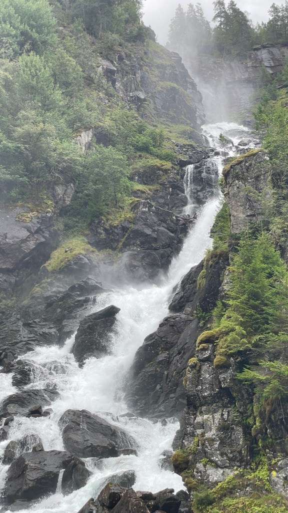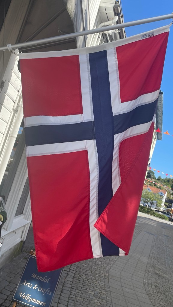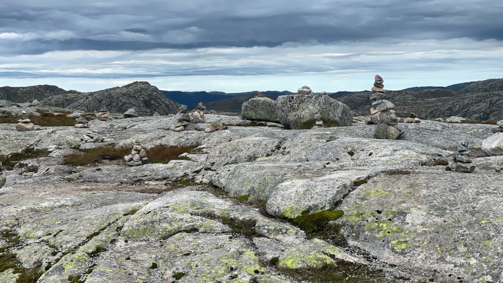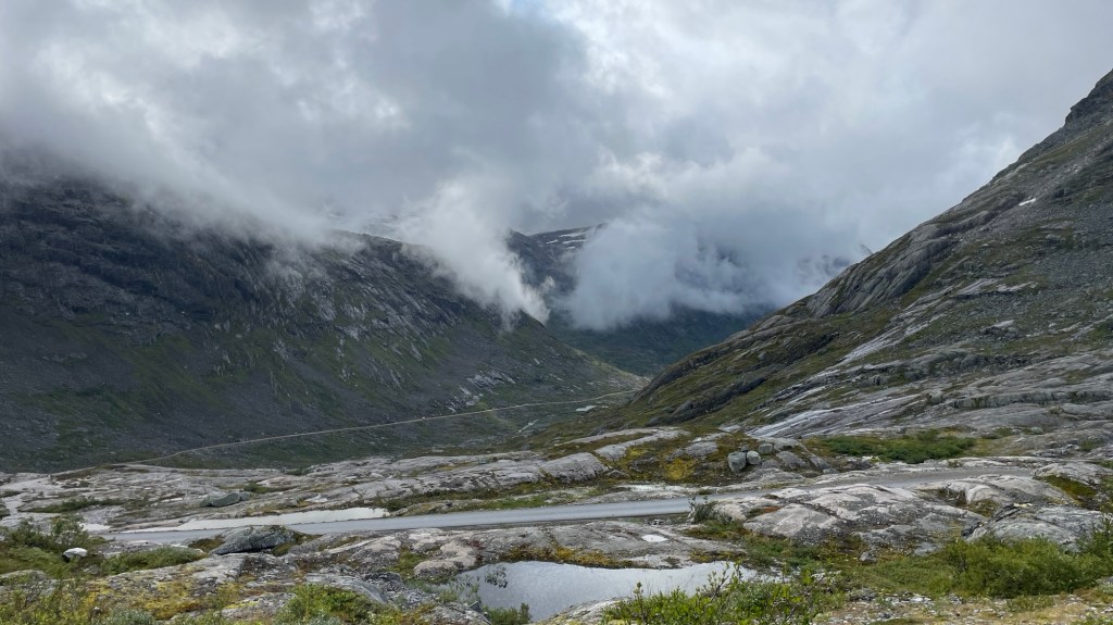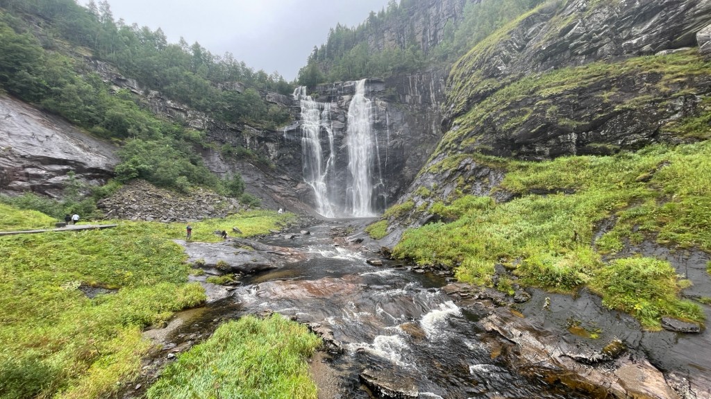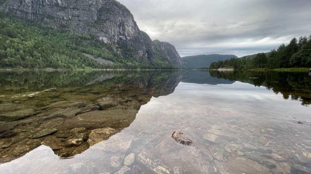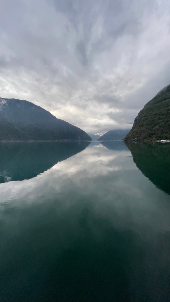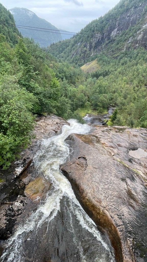 Da wir gut in der Zeit liegen, können wir an einer Raststätte noch eine Kaffeepause einlegen und Proviant für die Fähre kaufen: unter anderem Knäckebot mit Brunost, dem norgewischen Karamell-Käse. Diese „Perversität“ muss zum Schluss einfach sein …