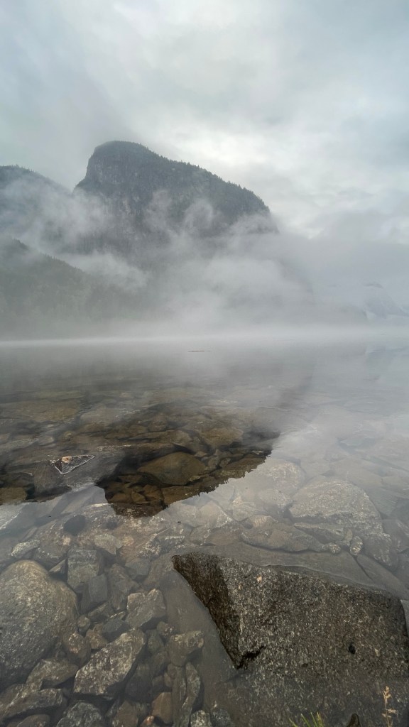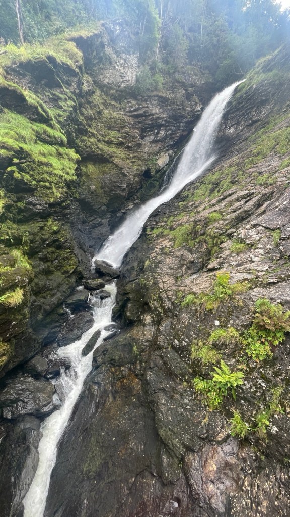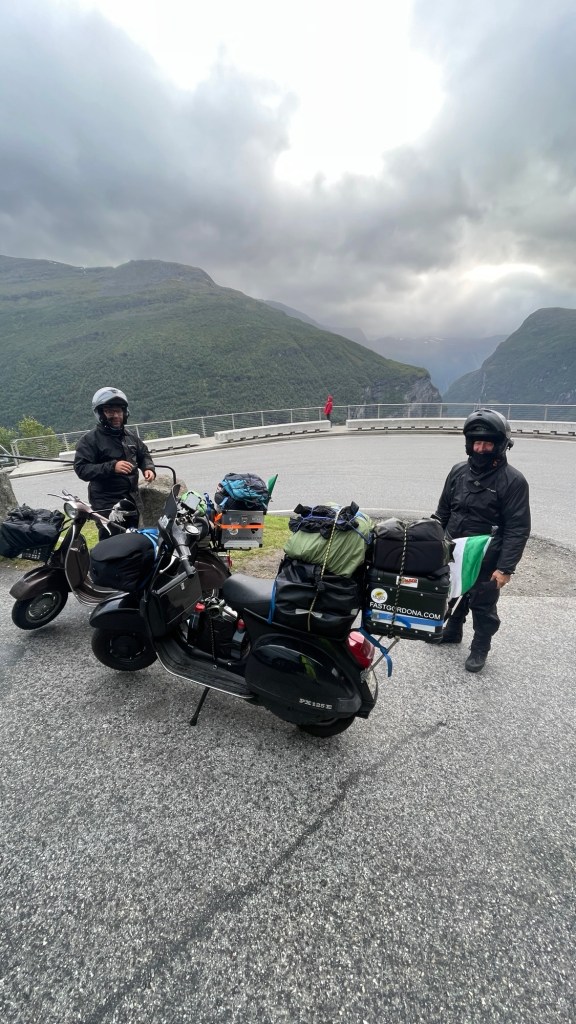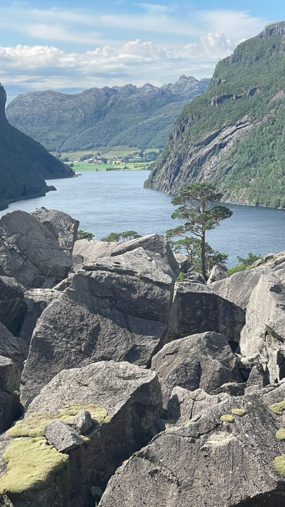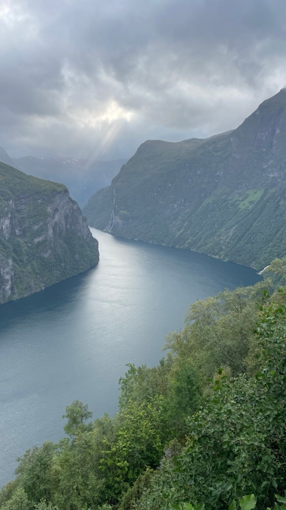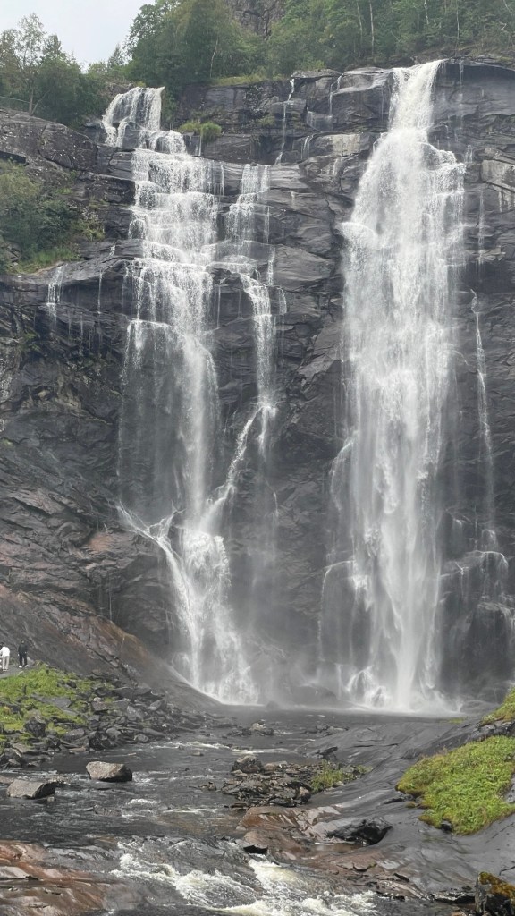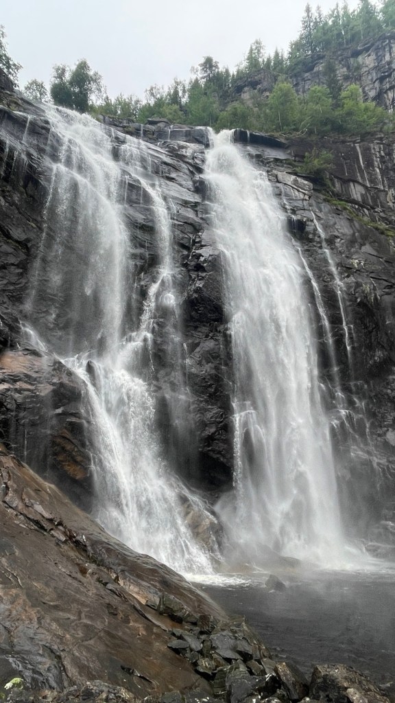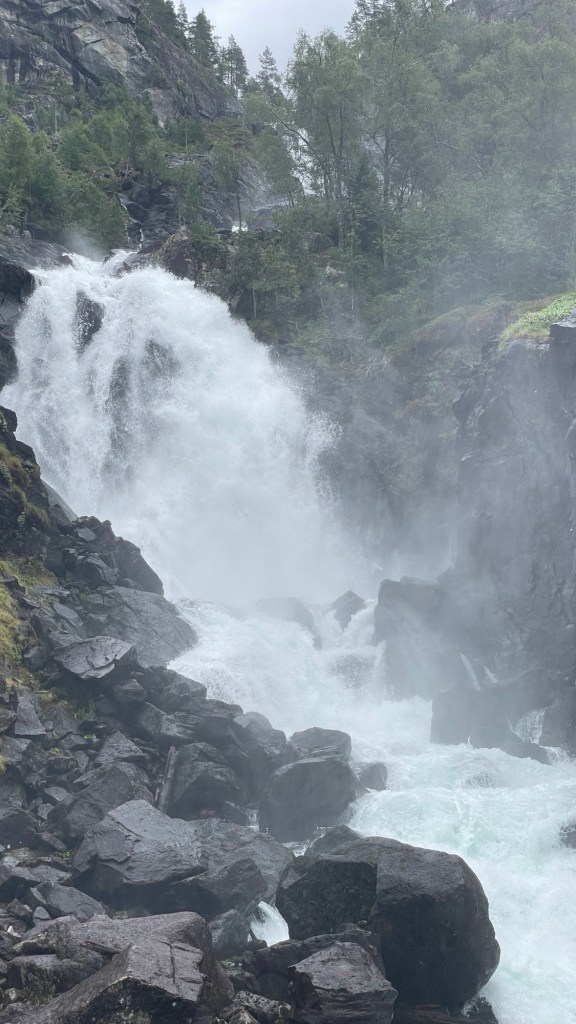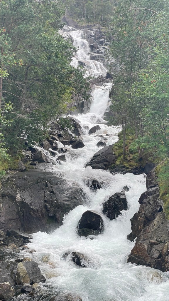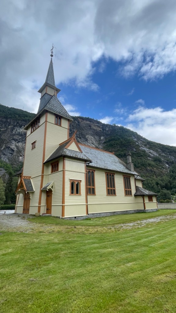 Da wir gut in der Zeit liegen, können wir an einer Raststätte noch eine Kaffeepause einlegen und Proviant für die Fähre kaufen: unter anderem Knäckebot mit Brunost, dem norgewischen Karamell-Käse. Diese „Perversität“ muss zum Schluss einfach sein …