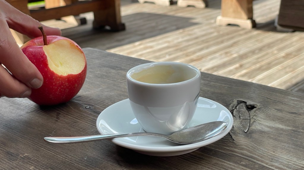 Das Frühstück muss „beschleunigt“ zu sich genommen werden, das Restaurant öffnet erst gegen 7:30 Uhr. Den ersten Kaffee gibt es deshalb auf dem Balkon, aus dem Nespresso-Automat, der auf dem Zimmer steht.