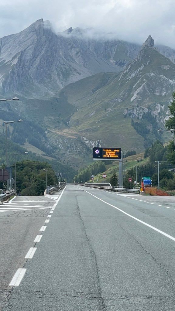 SAMSTAG, 14.9.2024 – Gepackt hatte ich schon am Freitagabend, so dass ich am Samstagmorgen, früh um sechs, den Motor des Ducatos anwerfen kann. Es geht direkt auf die Autobahn, zum Großen Sankt Bernhard, den ich im Tunnel überqueren werde. Es wird so langsam dämmerig, als ich mich auf die weite Reise Richtung Norden mache …