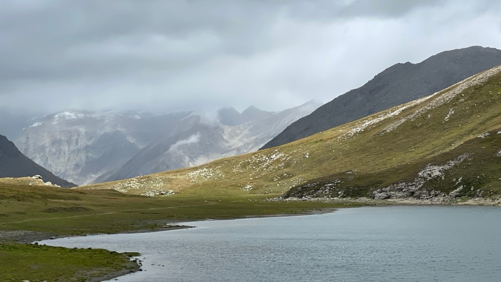 Die Gipfel der Walliser Alpen, die ich überqueren muss, sind weiß an Schnee. In der vergangenen Tagen hatte es einen heftigen Wettersturz gegeben, der insbesondere in Österreich für katastrophale Zustände gesorgt hat. Im Grenzgebiet zwischen Italien und der Schweiz halten sich die Auswirkungen in Grenzen: die Straßen sind frei, auch oben am Pass, an dem es minus sechs Grad kalt ist. Im Tal dagegen bestes Wetter 😉