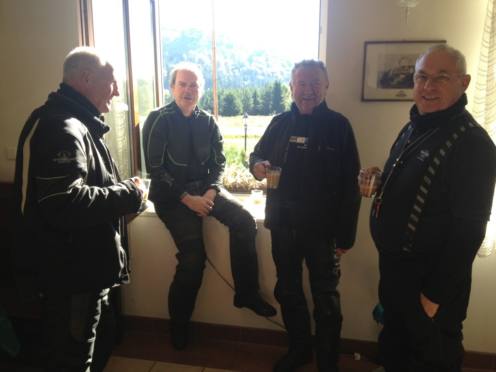 Während wir kurz darauf, wieder an der Grenze stehend, in Landkarte und Garmin nach einer Alternative suchen, treffen nacheinander auch Stefan und Dieter mit ihren Gruppen ein. Es hilft alles nichts, wir müssen zurück. Nicht weit entfernt liegt Mala Cemna. Auf der Zufahrt steht ebenfalls ein „Sackgassen-Schild“. Doch gemäß der Devise „erst mal schauen“, lassen wir uns davon nicht beirren und versuchen hier unser Glück.