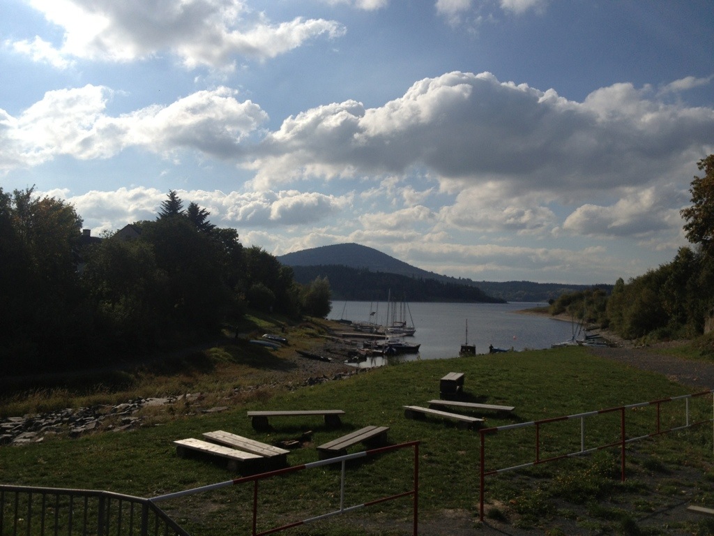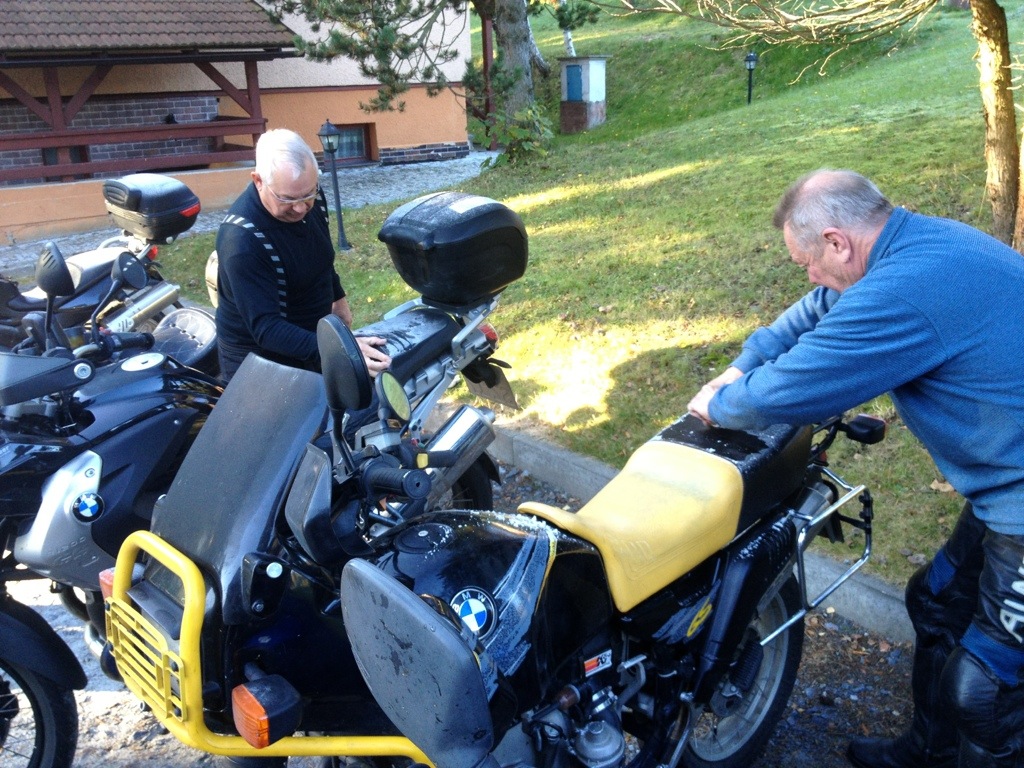 Das Altvatergebirge „durchpflügen“ wir am späten Nachmittag in allen Richtungen, um dann schlußendlich doch auf die Straße 44 zu treffen. Die führt in vielen Kehren noch einmal hoch auf über 1000 Meter. Doch leider war vor uns der Straßenbau aktiv und hat vermutlich Schlaglöcher ausgebessert, von denen es offensichtlich viele gab: die gesamte Südrampe ist mit Split und frischem Bitumen überzogen, so dass wir nur ganz langsam vorwärts kommen – schade.
