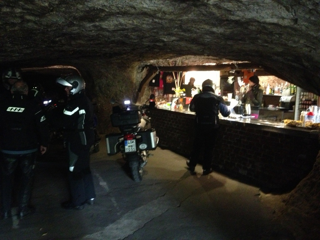 Tatsächlich gibt es einen kurzen Verbindungsweg zwischen beiden Ländern. Der darf zwar von motorisierten Fahrzeugen eigentlich nicht benutzt werden, aber wenn wir unsere Motorräder schieben würden …