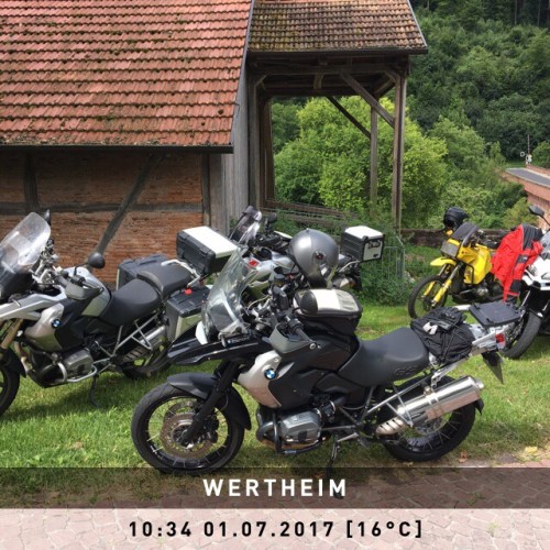 Weiter gehts nach Hammelburg. Ein schneller Blick aufs Regenradar lässt hoffen, es könnte trocken bleiben. Bleibt es natürlich auch und so genießen wir die gut 90 Kilometer ins Fränkische. Oftmals haben wir die Straßen ganz für und alleine und genießen die herrlichen Ausblicke.
