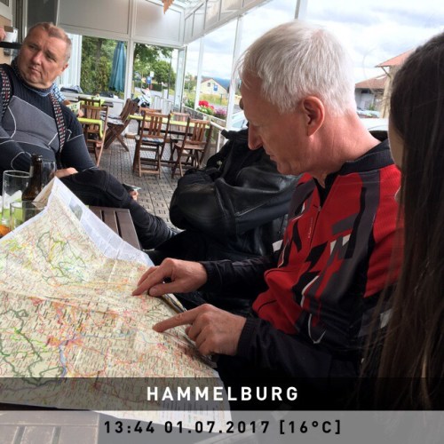 Das Lokal zur Mittagsrast ist schnell gefunden. Wir sitzen auf der Terrasse und genießen Pizza oder Pasta. Nach der Speisekarte wird die Landkarte studiert, brauen sich im Westen doch schon wieder dunkle Wolken zusammen.