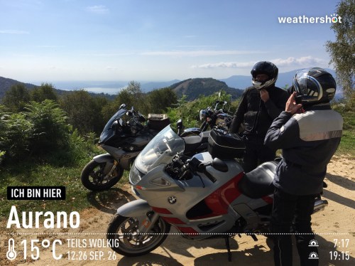 Mit fast 20 km/h schippern wir anschließend über den Lago und schlagen uns bei Cittiglio wieder in die Berge, um über viele Kilometer der SP8 zu folgen. Wieder zahlt es sich aus, heute die kleine rote G/S unter dem Hintern zu haben, die sich entspannt ums Eck werfen lässt.