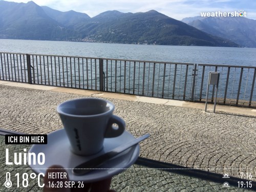 Kurven- und kehrenreich geht es dann viele Kilometer später wieder runter an den See, wo wir uns in Luino ein Kaffeepäusen direkt am Ufer der Lago Maggiore gönnen.