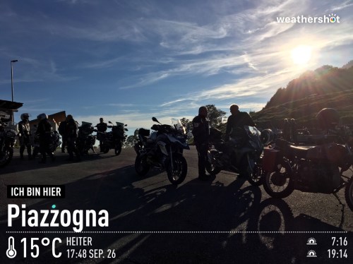 Die „Alpe di Negia“ ist das letzte Etappenziel des heutigen Tages. Noch einmal schrauben wir uns auf kurvenreicher Strecke auf gut 1.200 Meter hinauf und treffen am „Pass“ auf Dieter mit seiner Gruppe.