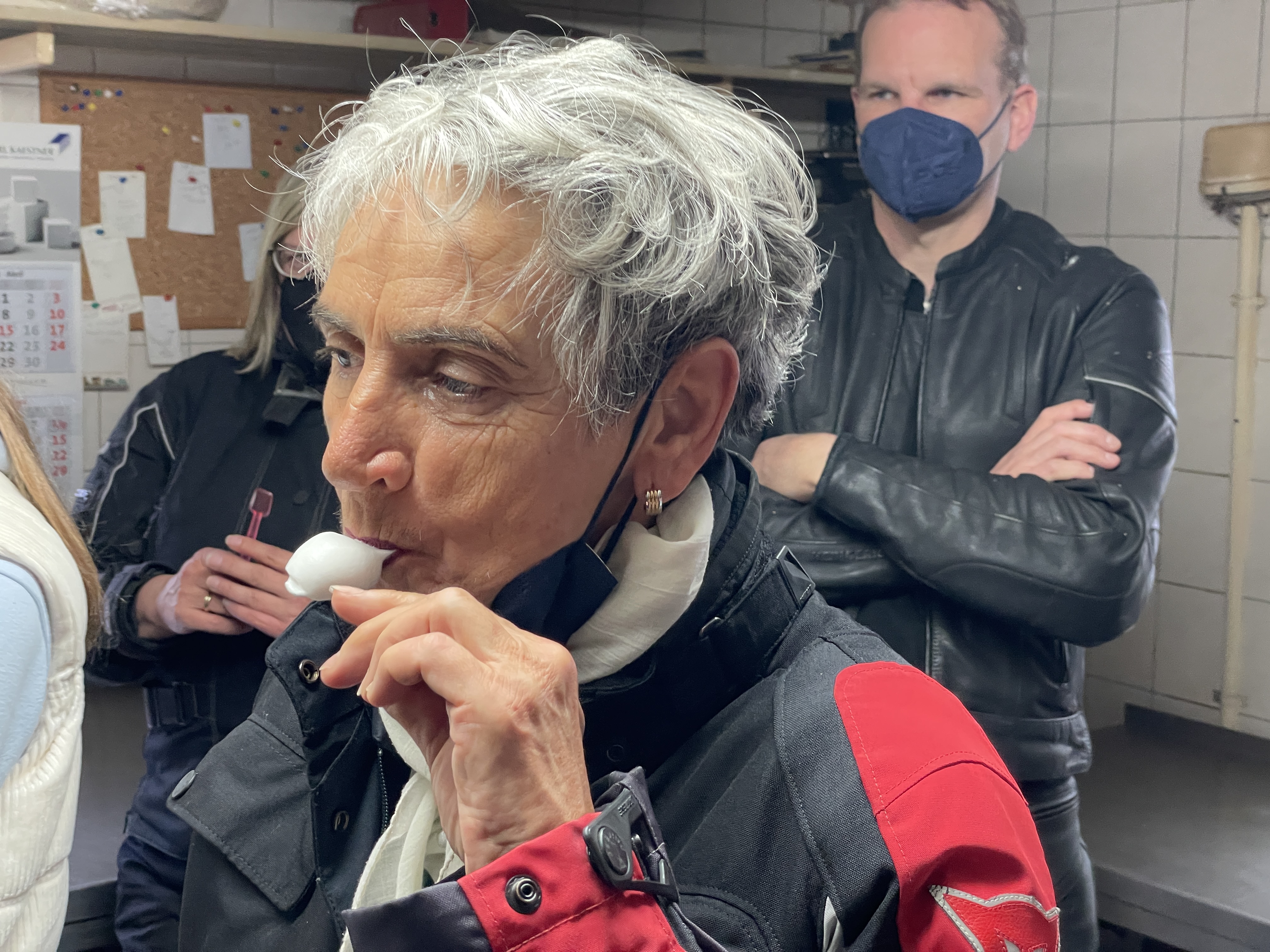 Noch eine gute halbe Stunde sind wir im Anschluß unterwegs, dann haben wir die „Schokokuss-Manufaktur“ erreicht.