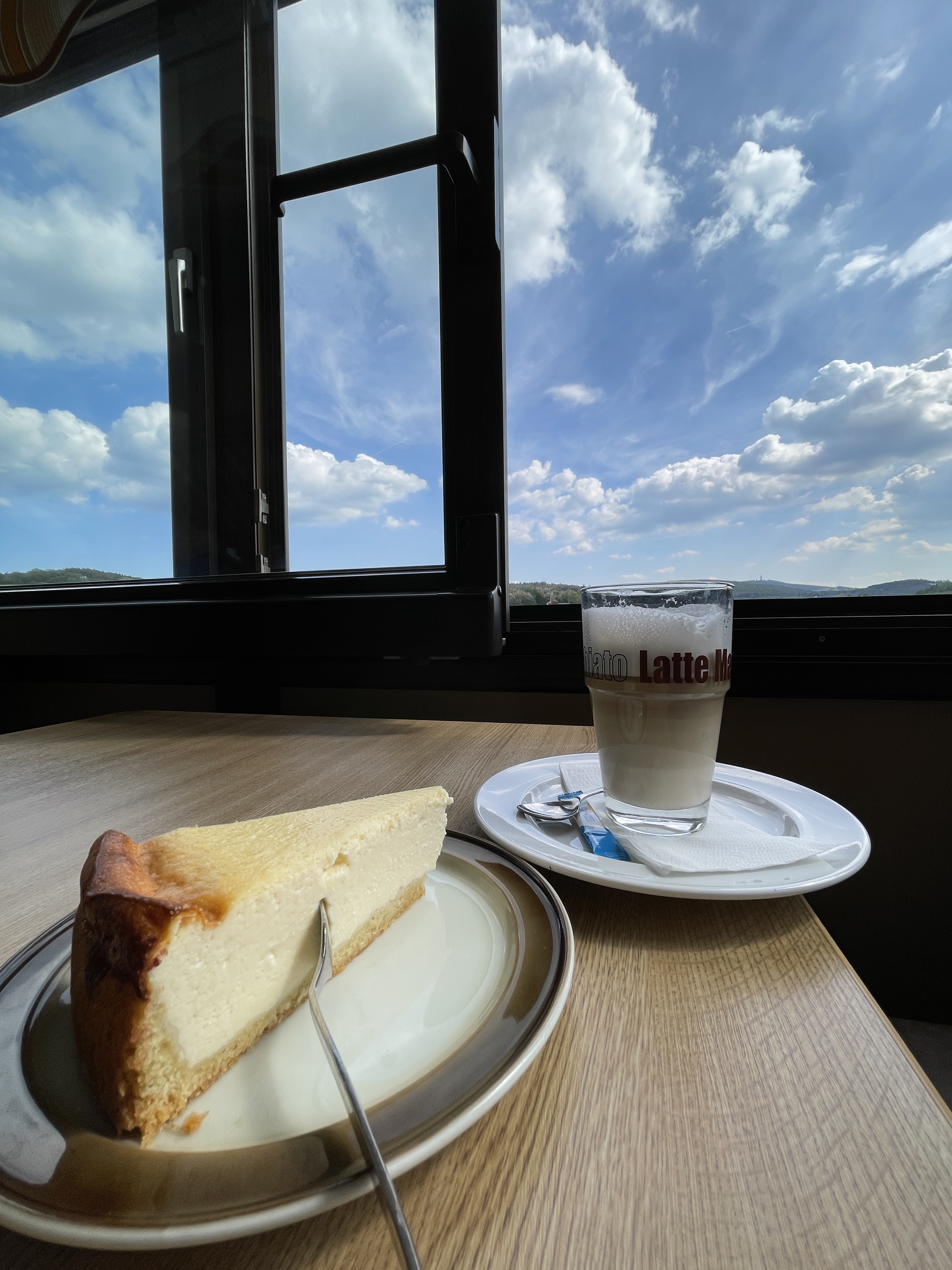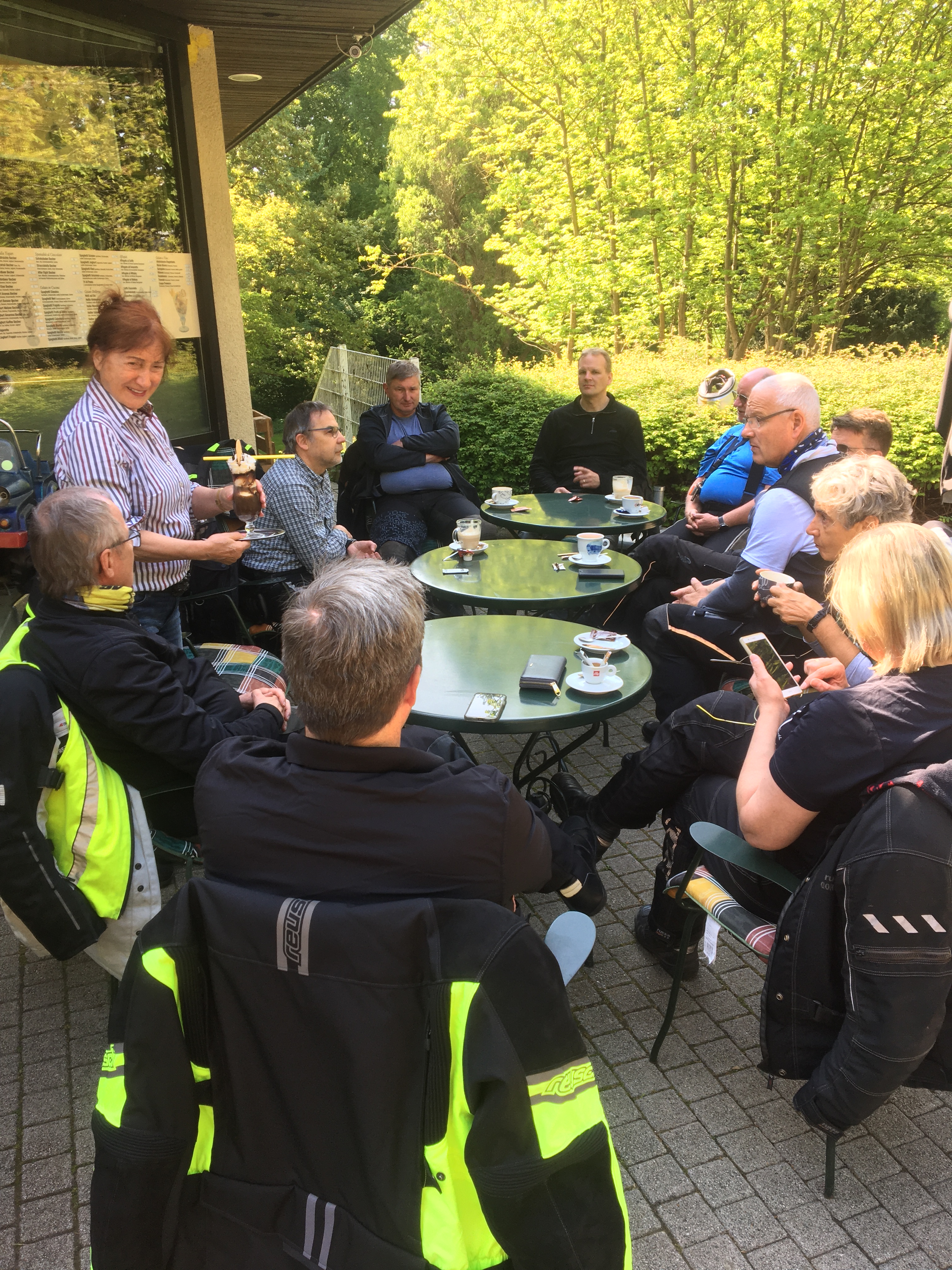 Der Feldberg ist tatsächlich zu sehen, viel schöner aber ist der Anblick eines leckeren Stück Käsekuchen, den wir uns zum Abschluss gönnen. Wir sitzen gemütlich zusammen, philosophieren ein wenig übers Motorradfahren und freuen uns aus die nächste vhs-Tour, die uns im Juli übers Wochenende in die Rhön führen wird, zum dort auf den Spuren des Mondes wandeln zu können.