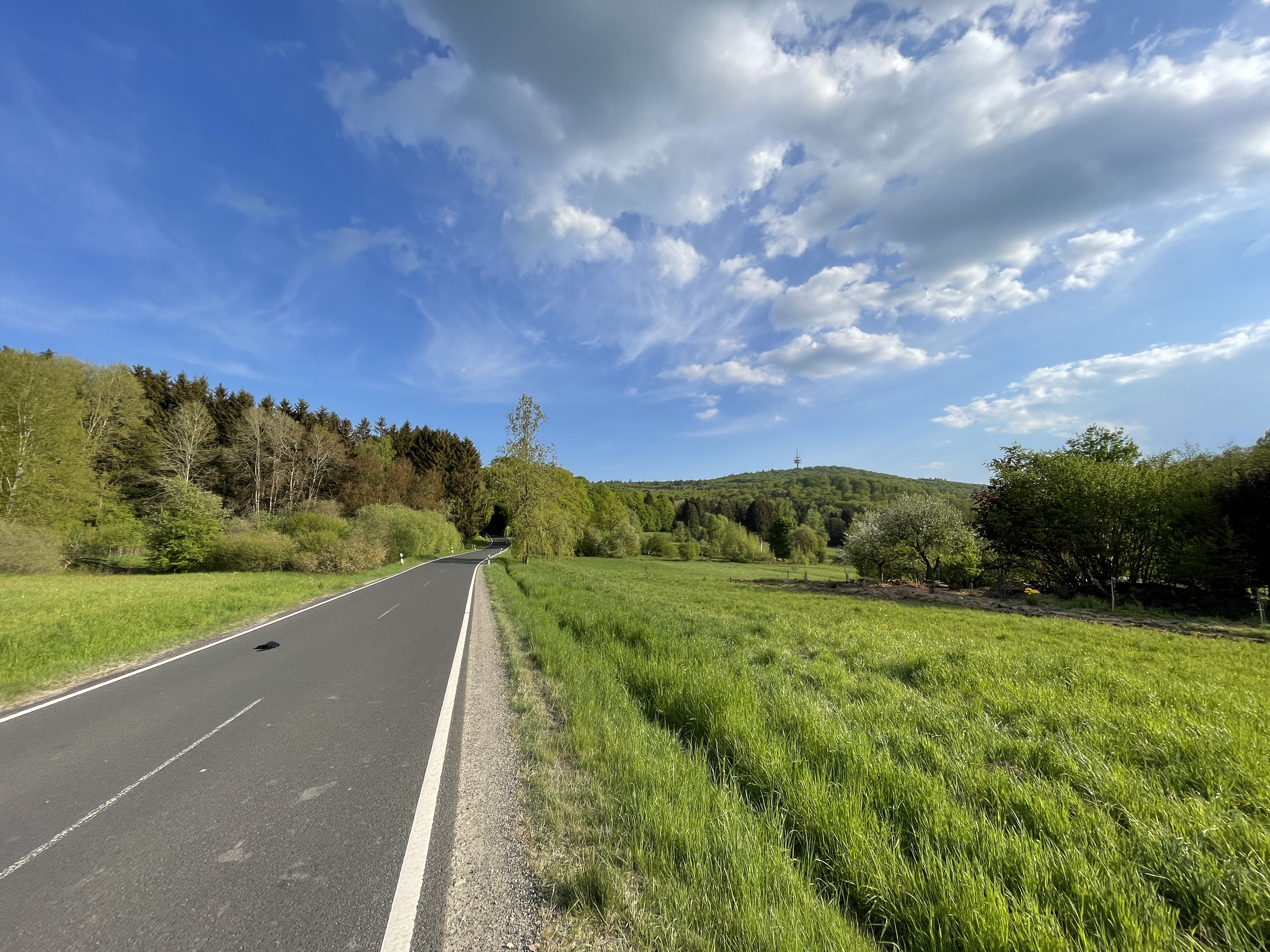 Unsere Route führt uns über die Ausläufer des Taunus ein Stück durch die Wetterau und dann in den Vogelsberg. Da wir schon um halb zwölf an der „Schokokuss-Manufaktur“ sein sollen, vorher aber noch eine kleine Kaffeepause einlegen möchten, fahren wir diesmal auf etwas breiteren Straßen, als den sonst üblichen. Der Fahrspaß kommt dadurch aber nicht zu kurz 😉
