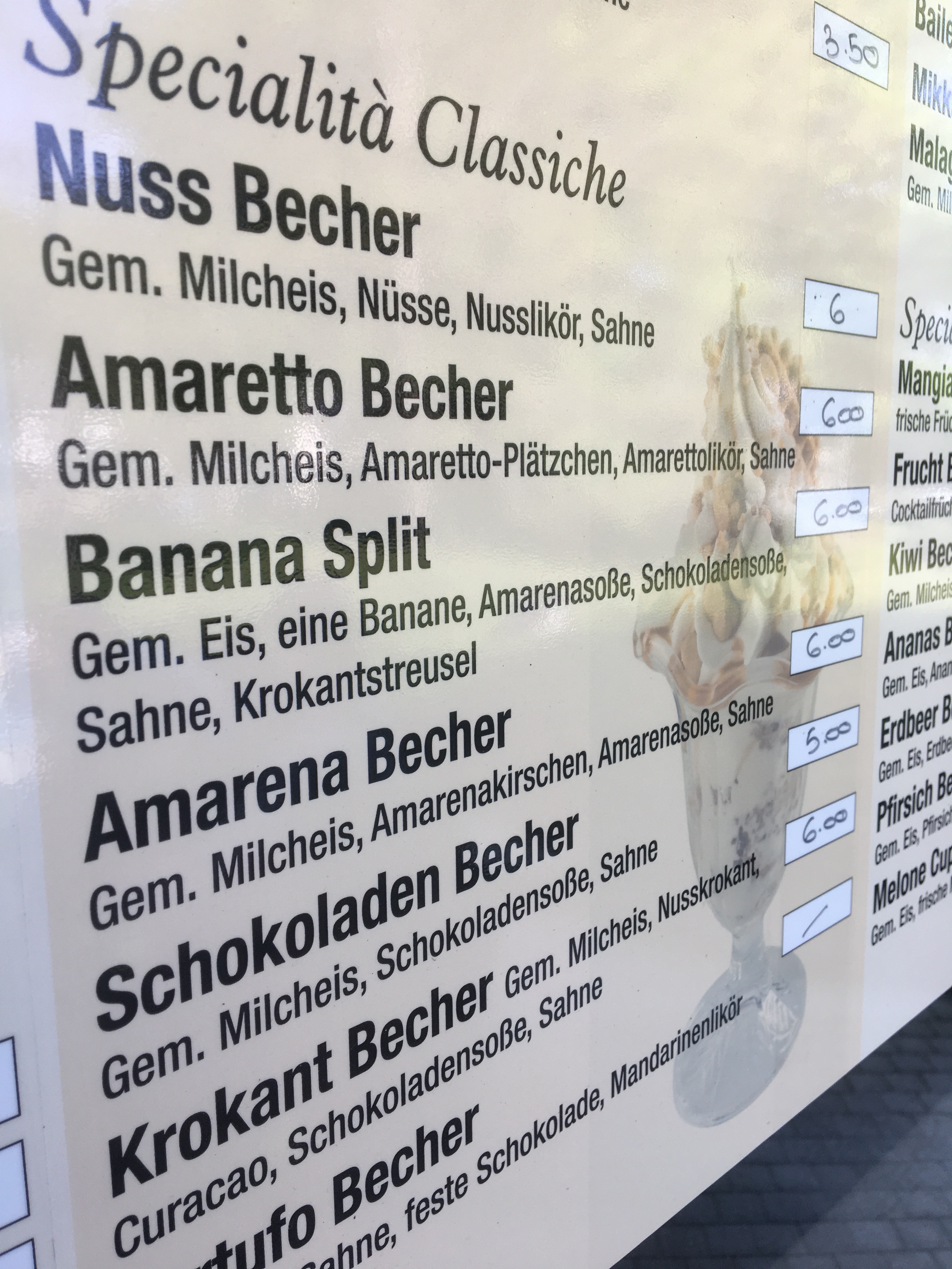 Den ersten Stopp legen wir gegen 10:30 Uhr im malerischen Kurort Bad Salzhausen, nahe Nidda, im Eiscafe Bet ein. Dort hat die Junior-Chefin einen Tisch im Freien für uns reserviert, so dass wir in großer Runde genießen können, was die Eiskarte bietet.