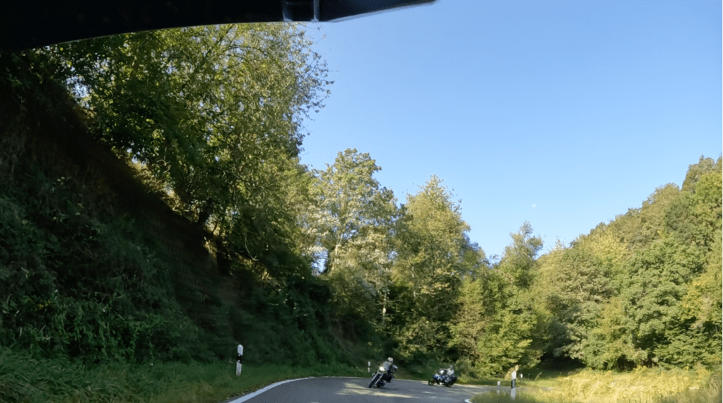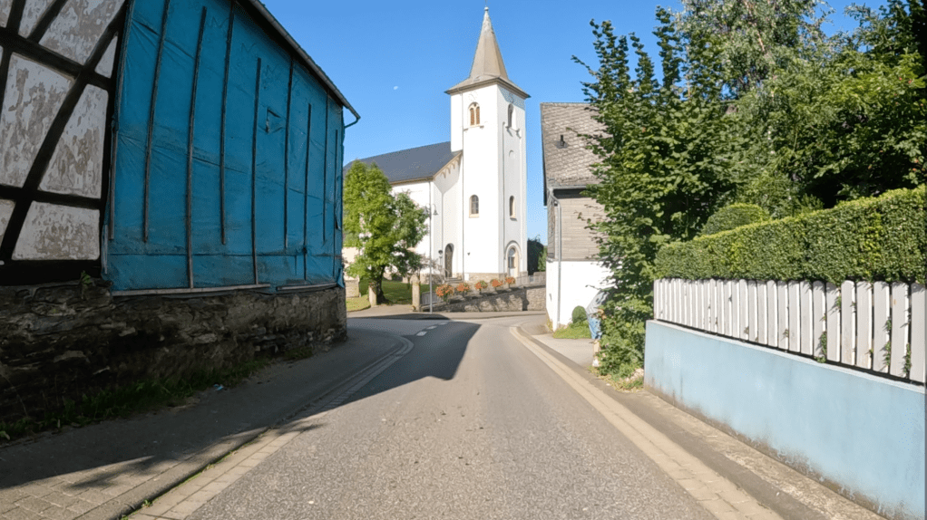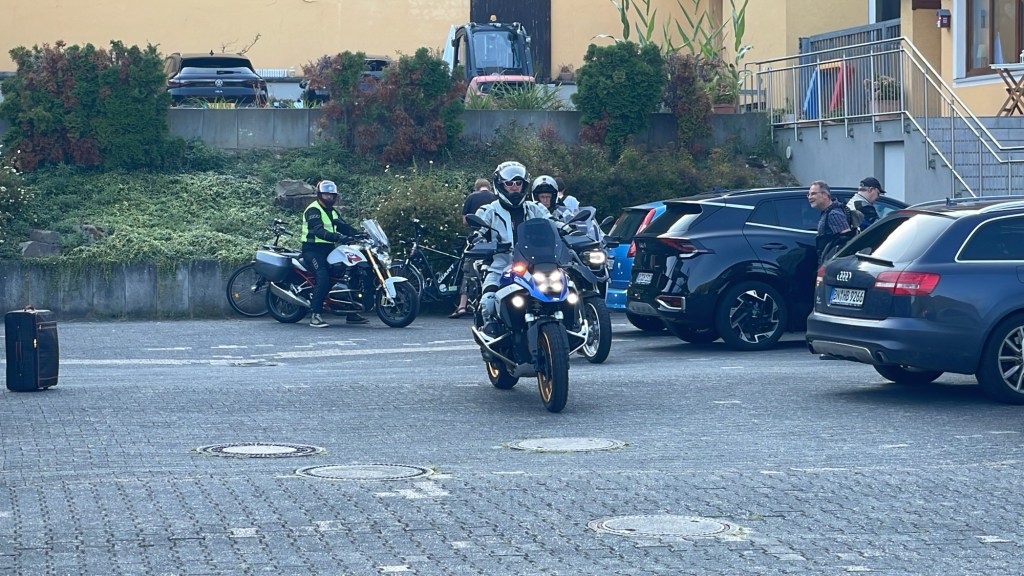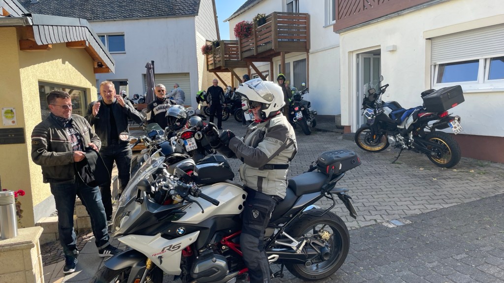 Kurvenreich geht es durch den Hunsrück; die Fahrt durch die Burgenstadt Kastelaun wird mit neun Motorräder „im Schlepp“ zur kleinen Herausforderung, dann ist das erste Etappenziel erreicht: Mörz, ein kleines Sackgassendorf.