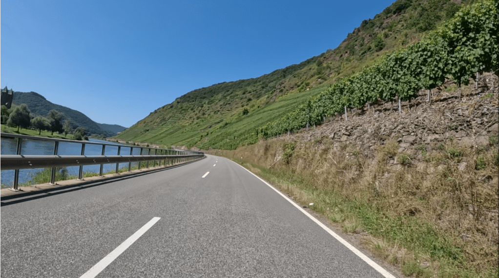 Zugegeben: ein wenig vermessen ist es schon, die kleine Straße am Valwiger Berg als „Stilfser Joch“ der Mosel zu bezeichnen. Statt 48 Kehren sind hier nur zwei in den Hang trassiert – die aber schon ein wenig tricky sind. Anders als im Ortler-Massiv ist der Asphalt aber kaum autobreit und herrlich kurvig, statt auf nackten Fels blickt man auf steile Weinberge und die Mosel im Tal. Und: eine Gemeinsamkeit gibt es mit den Alpen – in den Weinbergen über Valwig lebt der Apollofalter, eine Wärme liebende Schmetterlingsart, die normalerweise nur in alpinen Gebieten vorkommt.