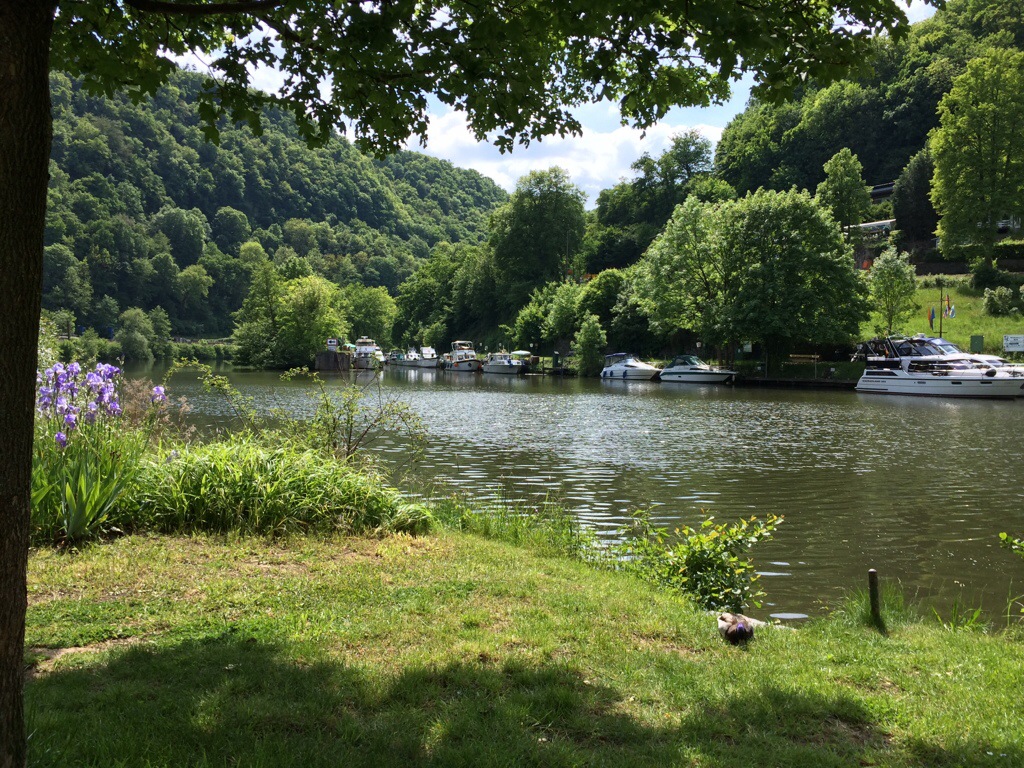Fotoidylle an der Lahn. Natürlich mit Ente im Vordergrund. Unterwegs gab es leider nur wenige Ausblicke auf den Fluss.
